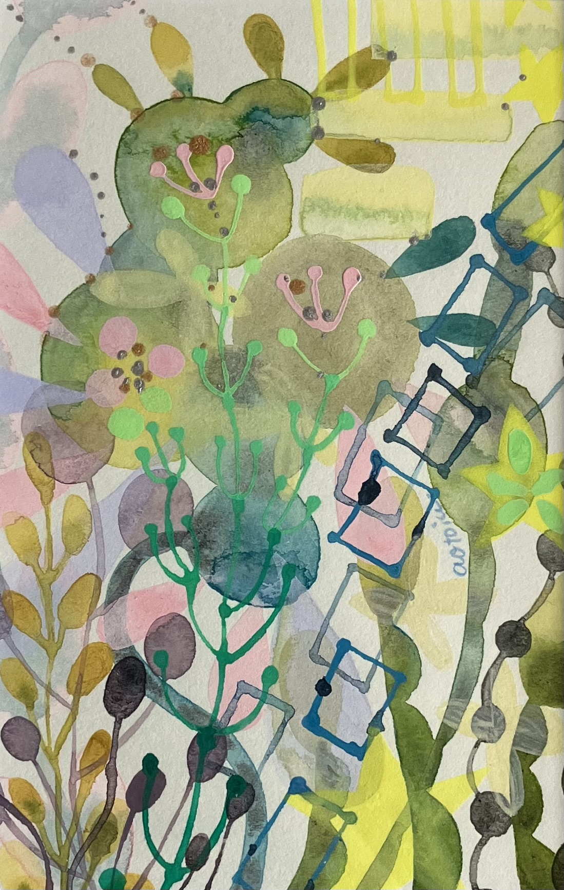小さいころから描くのが好きでした。引っ込み思案な子どもで、今でもたいそう不器用な人、です。何とかなんとか、周りの人たちに助けられて生かされています。振り返ってみると、つらいときも、きれいだなぁ、素敵だなぁ、心動かされるものを表現したい想いだけは、ずっと、かすかに消えそうになりながらも、わたしの膝のうえにあった気がします。たとえば、なにも特別なことは出来ないけれど、わたしにできることで、描くことで、わたしの絵に出会って下さった人の笑顔があることで、巡り巡って恩返しができるのではないか、と思っています。
