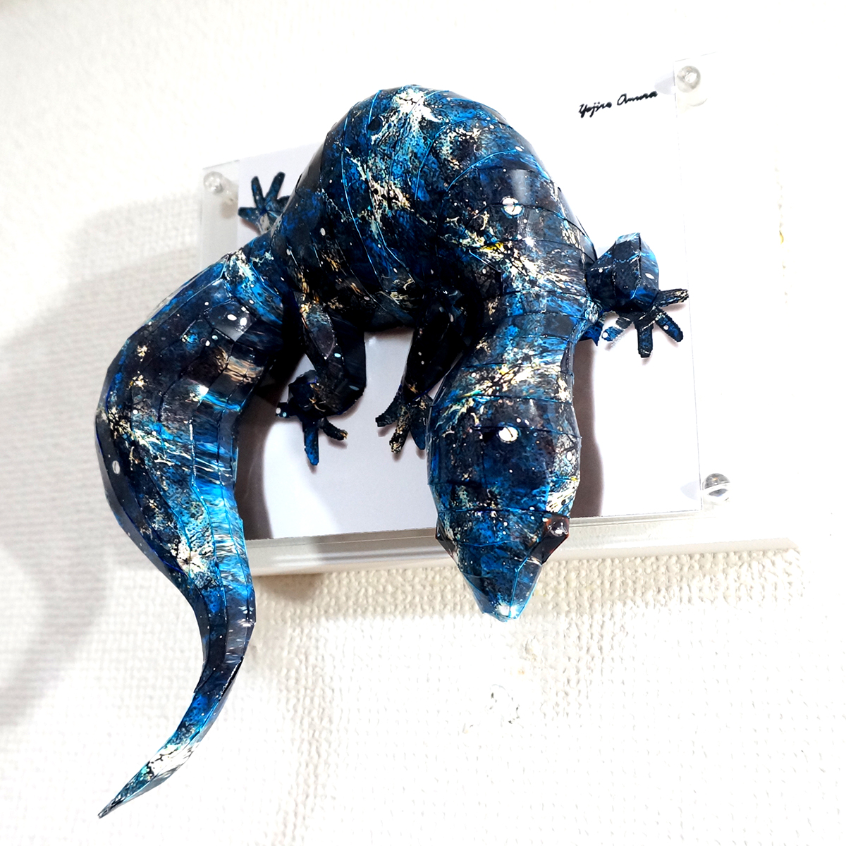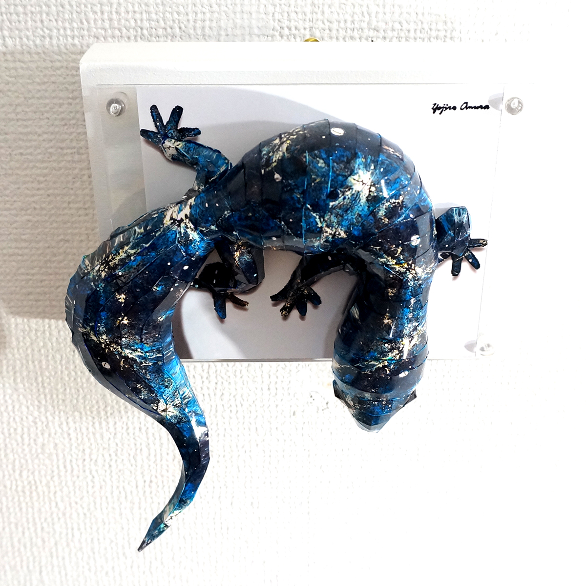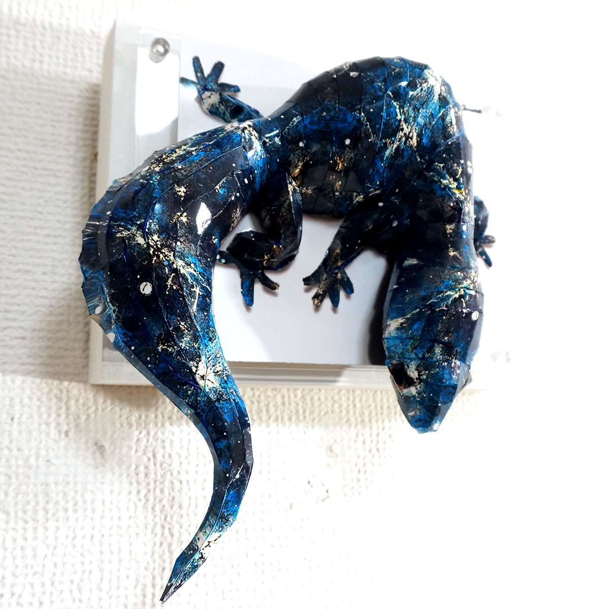 宇宙空間に広がる星空をイメージした模様をトカゲ本来の表情と重ね合わせたデザインです、表面上は光沢紙の艶のある質感となっております。