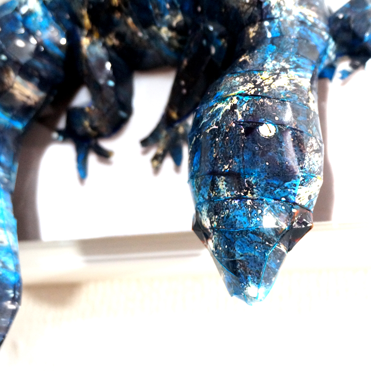 トカゲのコラージュ画像を元にペーパークラフト技術を用いて立体的に表現した作品です。