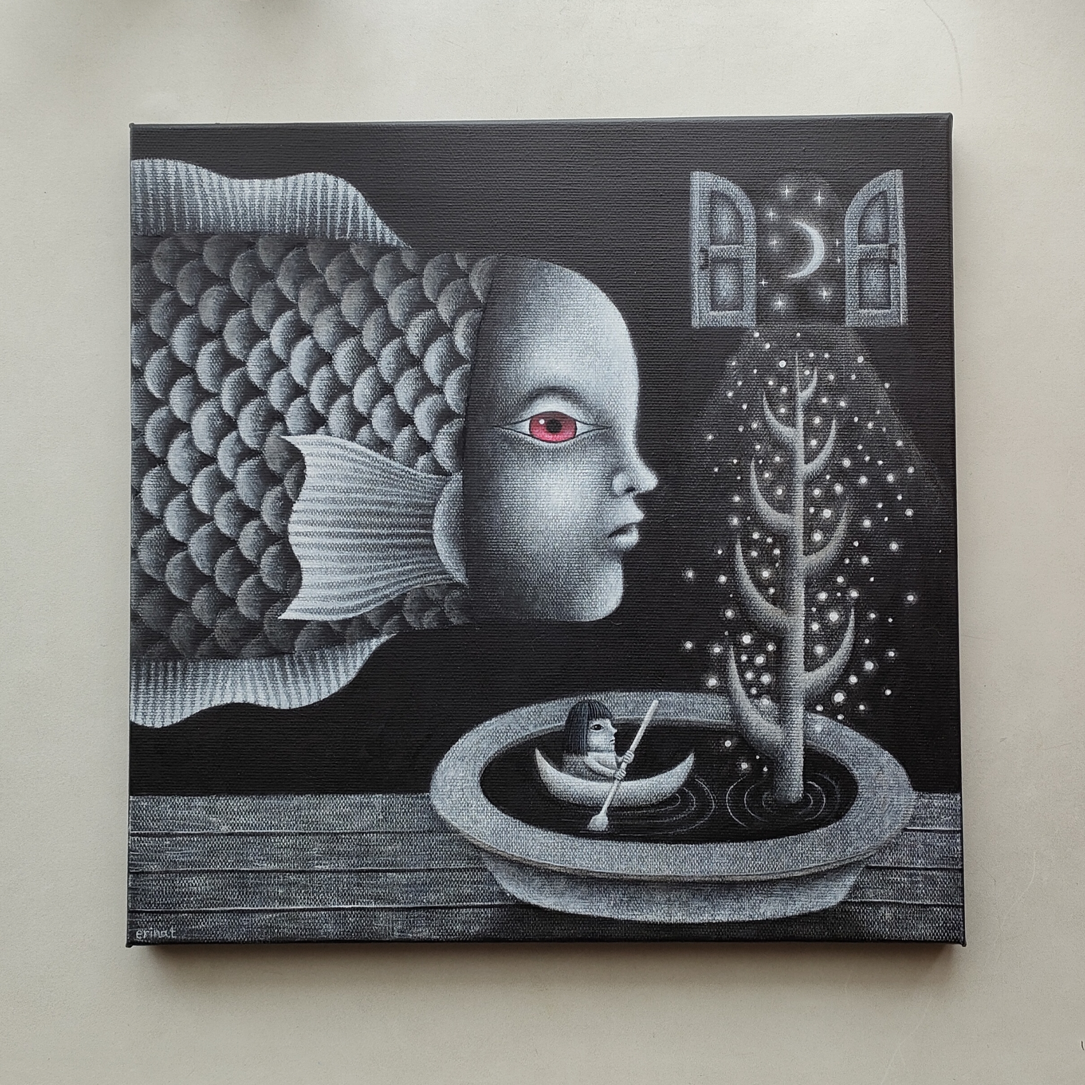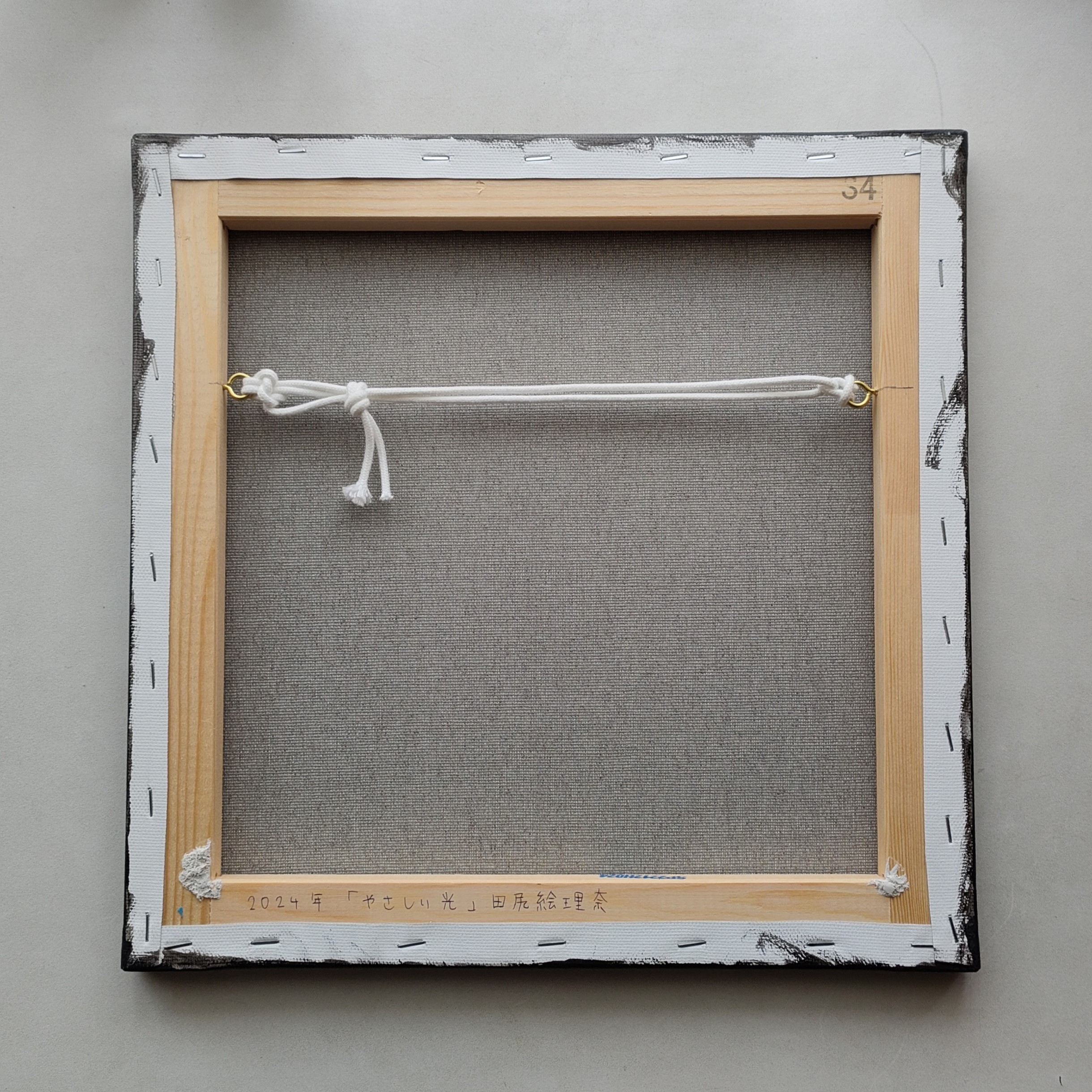キャンバスや木製パネルの作品は裏面に吊り紐をお付けしております。