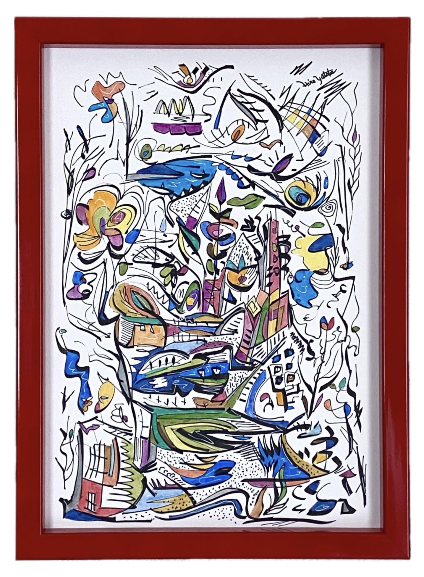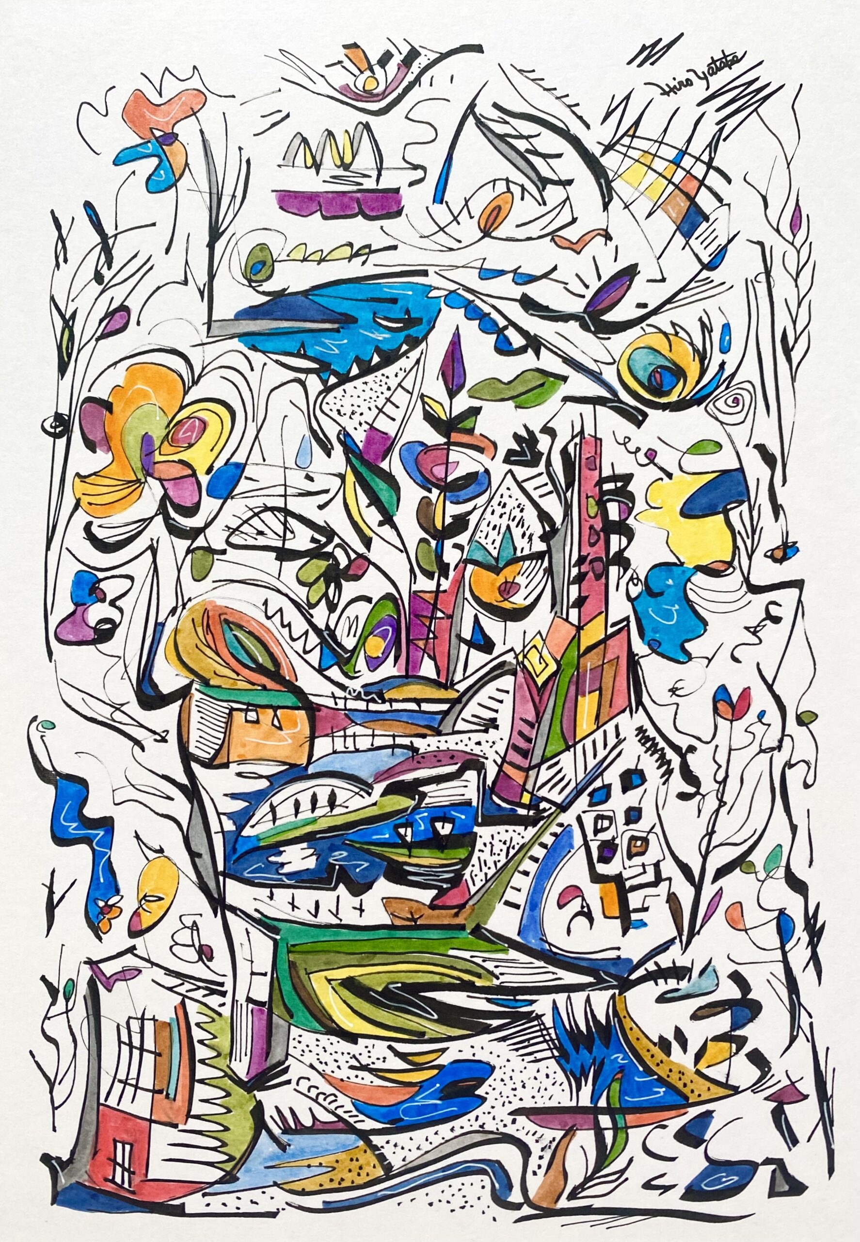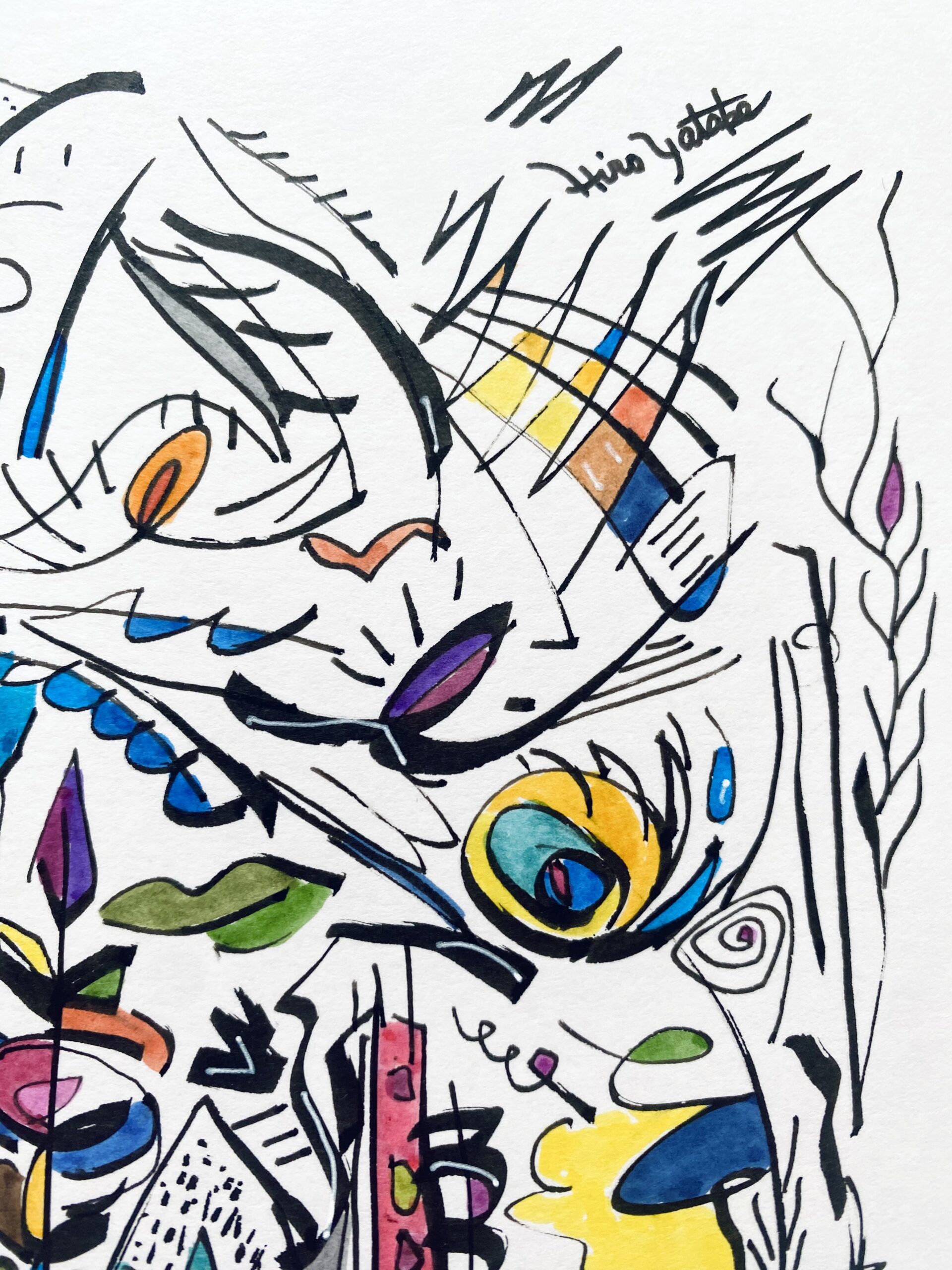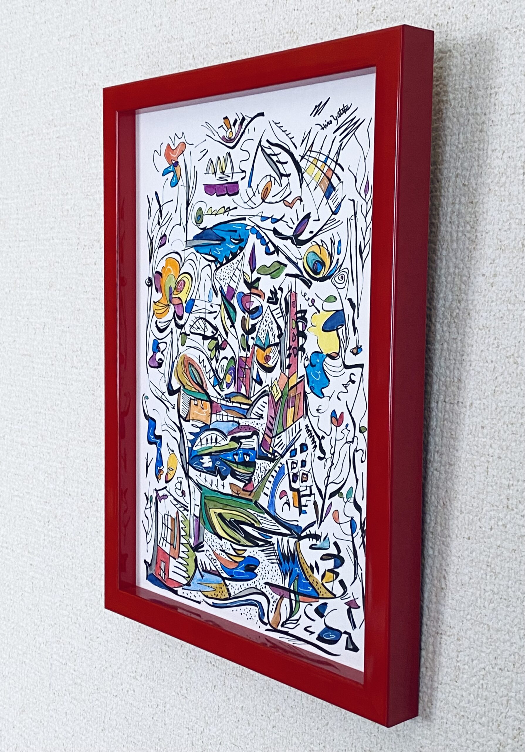 シリーズ作品を除き、タイトルは創作のはじめにあったものではなく、描き終えた時点で観る側となった私が名付けた「仮のタイトル」です。参考にするのも、答え合わせのように楽しむのも、あるいはまったく無視するのも自由です。抽象表現の色や形に意味を見出す手がかりは、あなたの記憶や経験のなかにしかありません。最終的な作品は観るかたの中で完成すべきものだと考えています。思い思いに想像の翼を羽ばたかせ、作品に新しい解釈を加えていただくことを望みます。