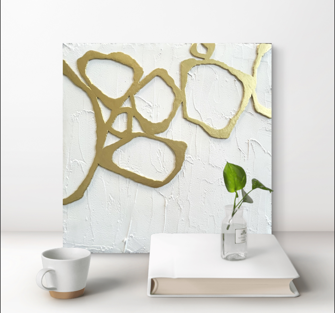 ポイント/アートの厚みとゴールドの落ち着いたカラーリングがポイントです。触っても楽しめるボコボコした表面も。すべてに重厚感を意識しております。