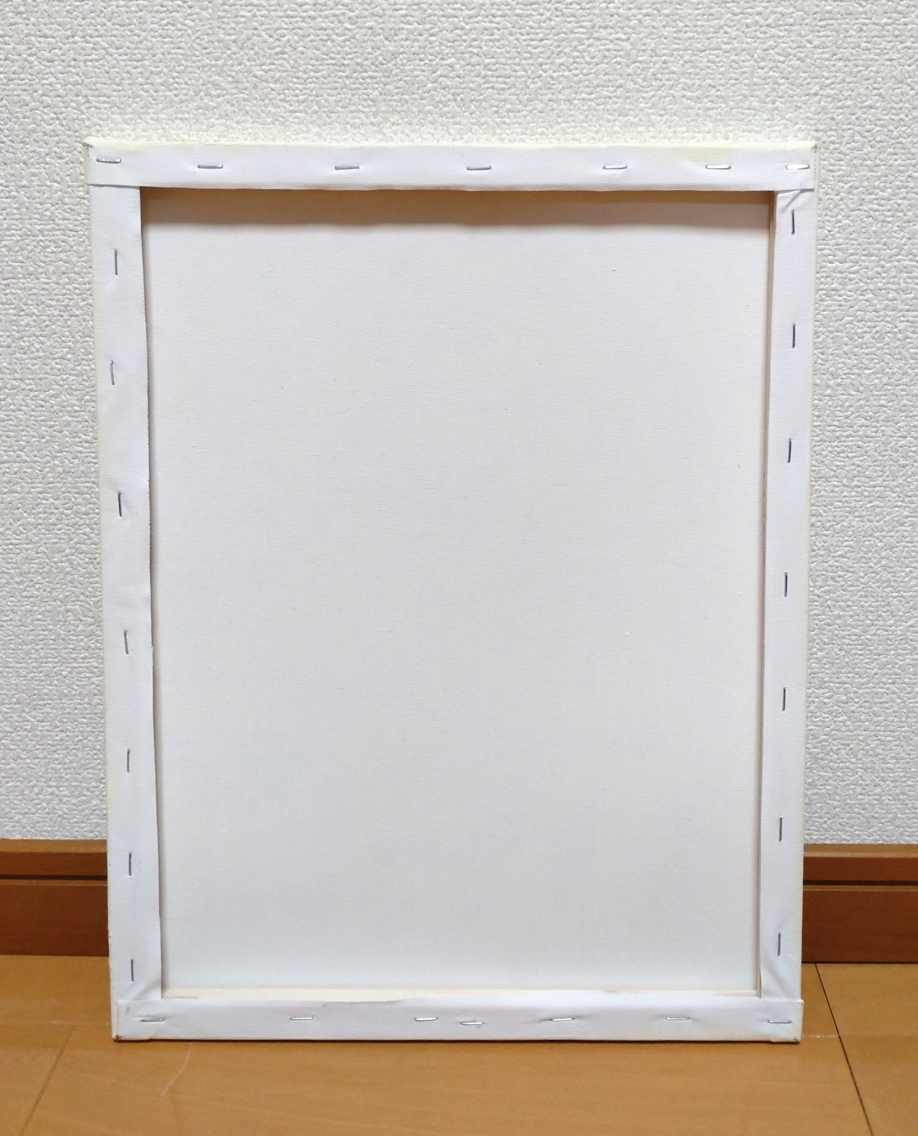 キャンバスのうしろにひもがついておりません。ピンにひっかけていただくと簡単&すぐに展示していただけます。(ふちの部分も色を塗っているので、そのまま飾ることができます。)