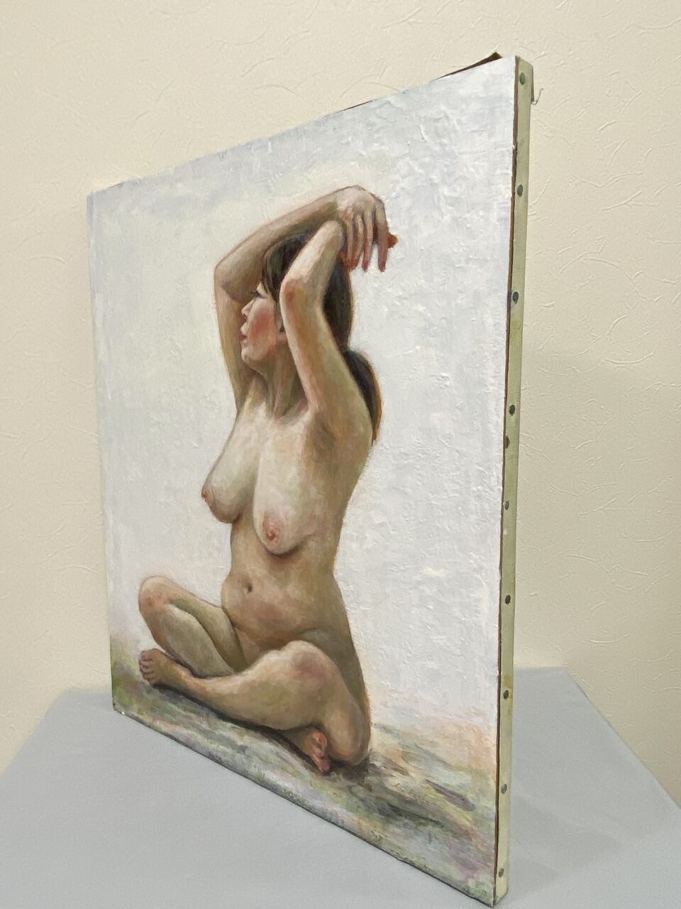 アクリル絵の具で木製パネルにデッサンした10号サイズの裸婦画です