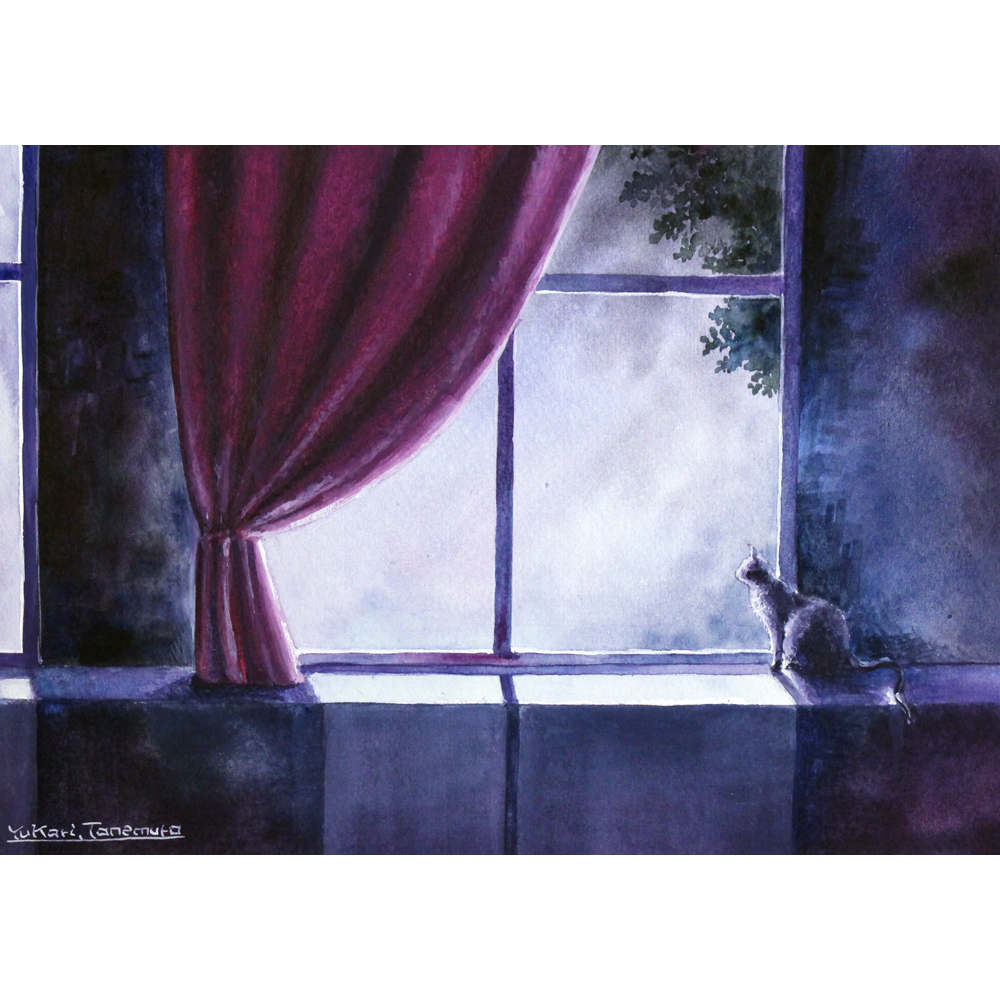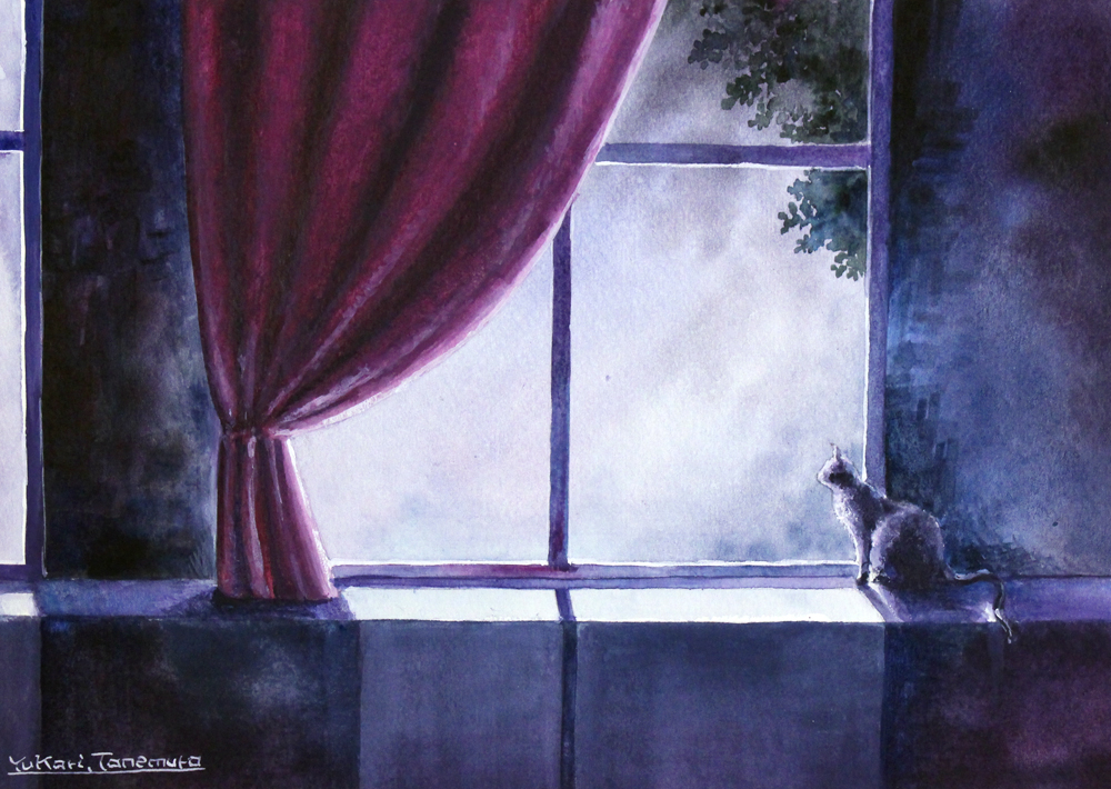 月光がさしこむ窓辺の風景を水彩で表現しました。