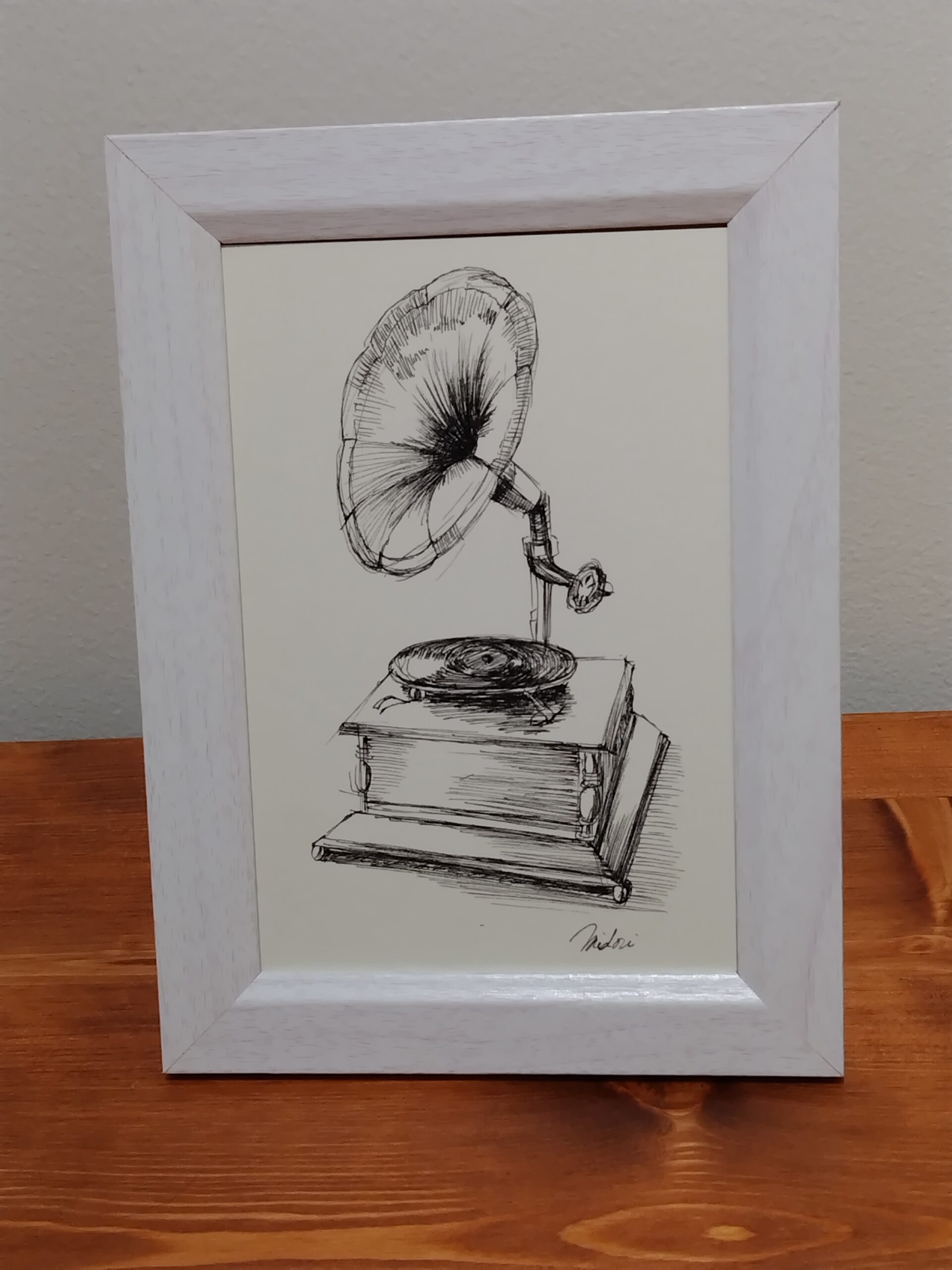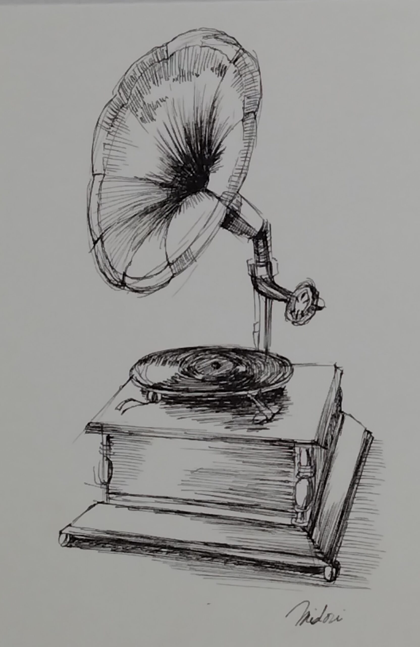 神戸・北野坂異人館のライン館に飾ってあった蓄音機に惹かれ、ペンで描きました。