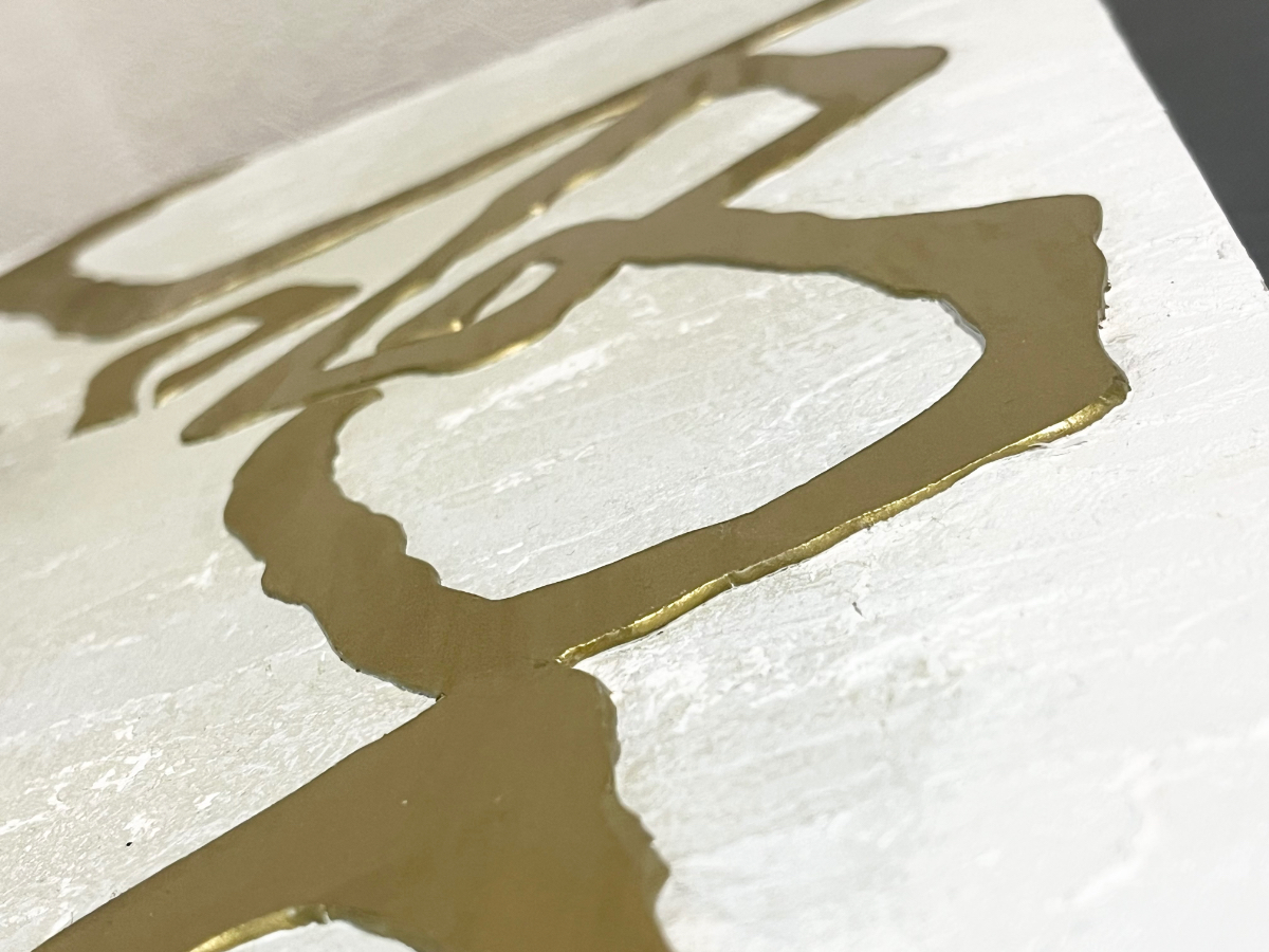 ◻︎厚みとゴールドの落ち着いたカラーリングがポイントです。触っても楽しめるボコボコした表面も!すべてに重厚感を意識しております。