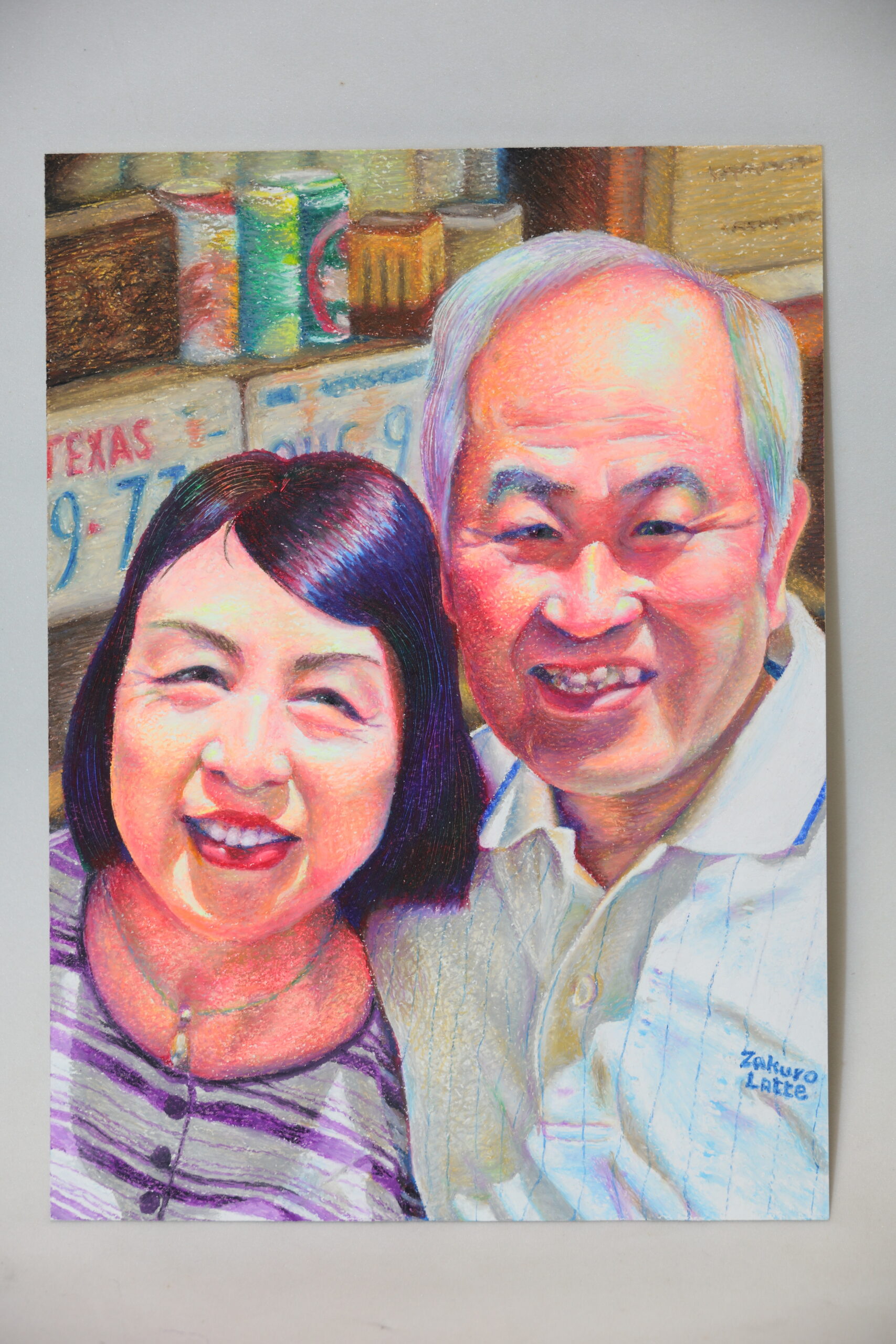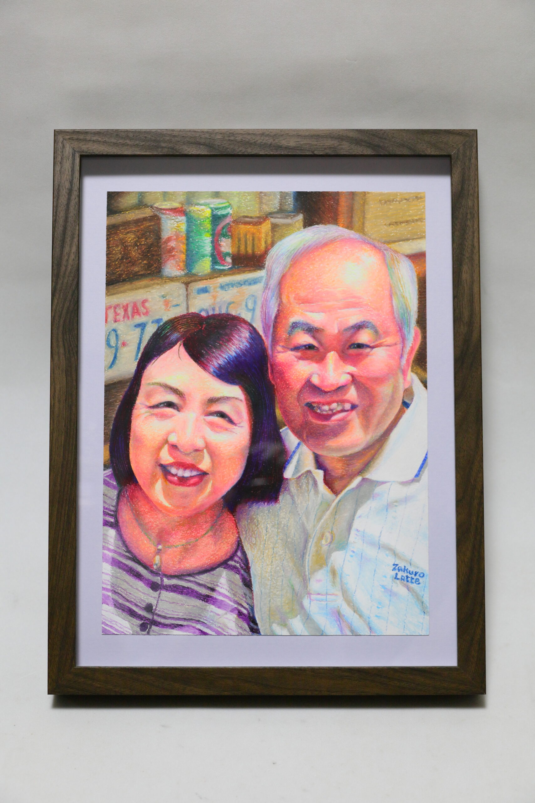 サクラクレパスで笑顔の絵を描きました。自分の両親です。F4の紙に描きました。母の傘寿のお祝いです。両親ともに無事80を迎えました。これからも長生きしてね(^_^)15年ほど前の写真を見ながら描きました。息子からクレヨン画をプレゼントするなんてのは幼稚園児の発想なんだけど、喜んでくれたらうれしいなぁ(´▽`)ノ