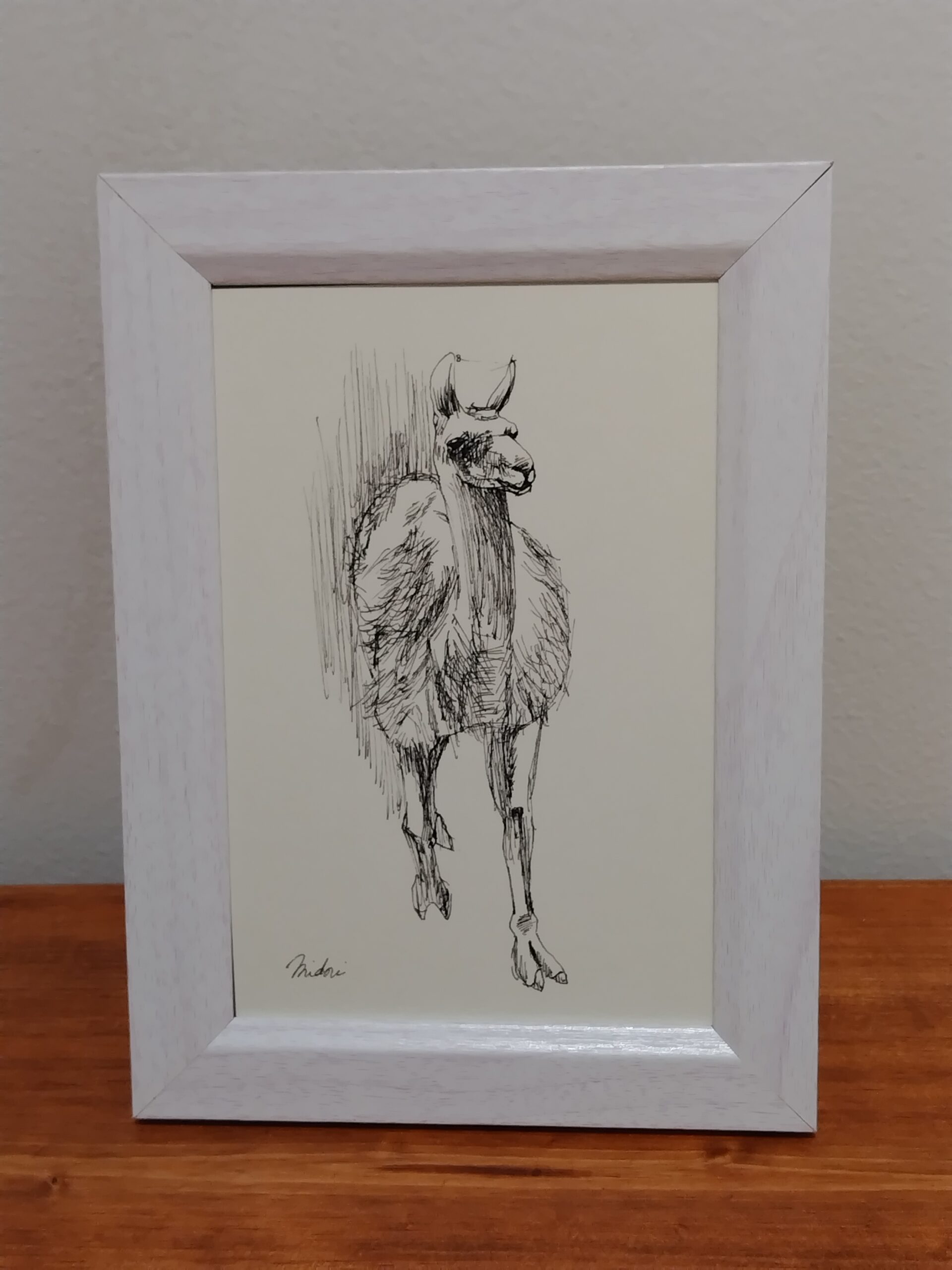 神戸・王子動物園で、元気に走っているラマが描きたくてペンをとりました。