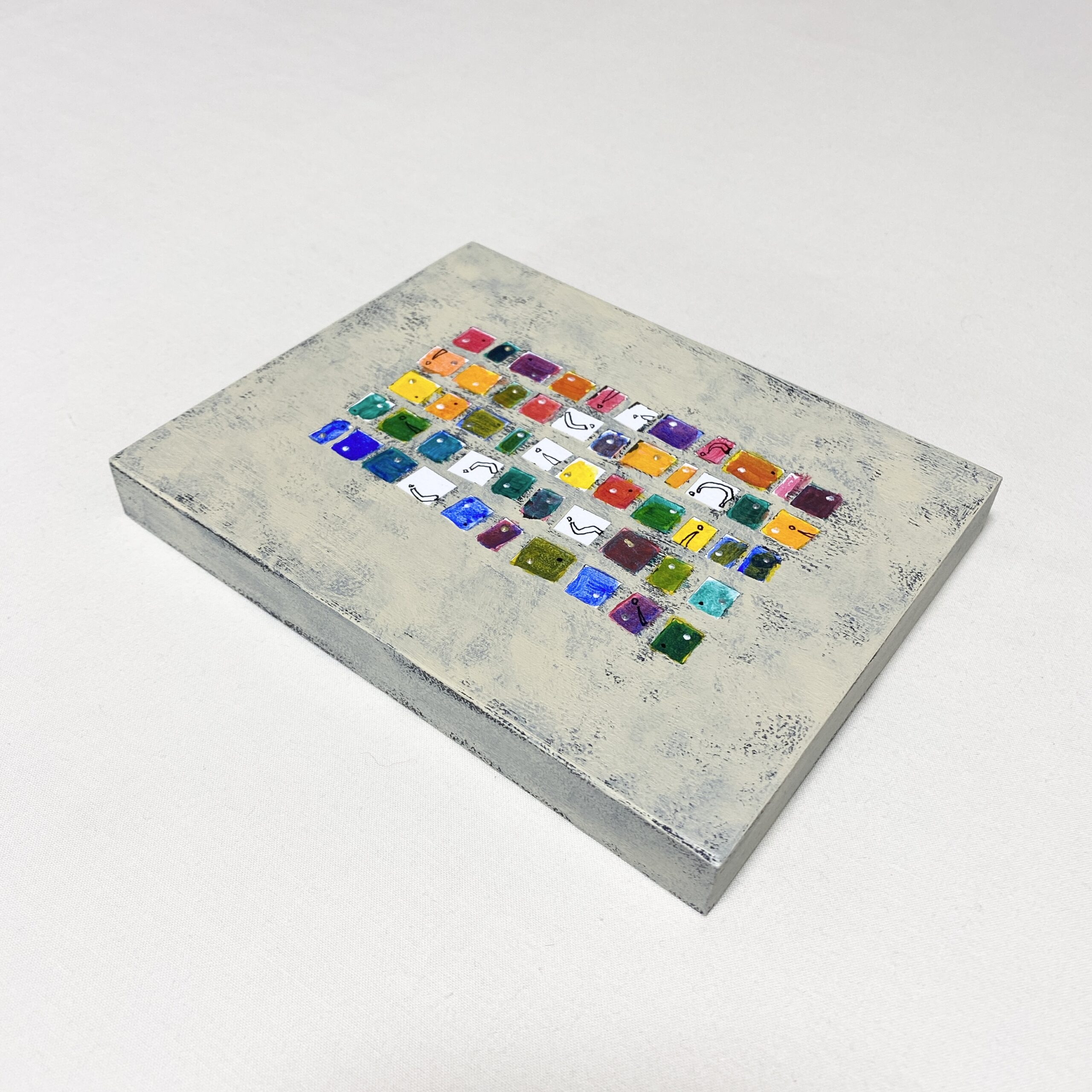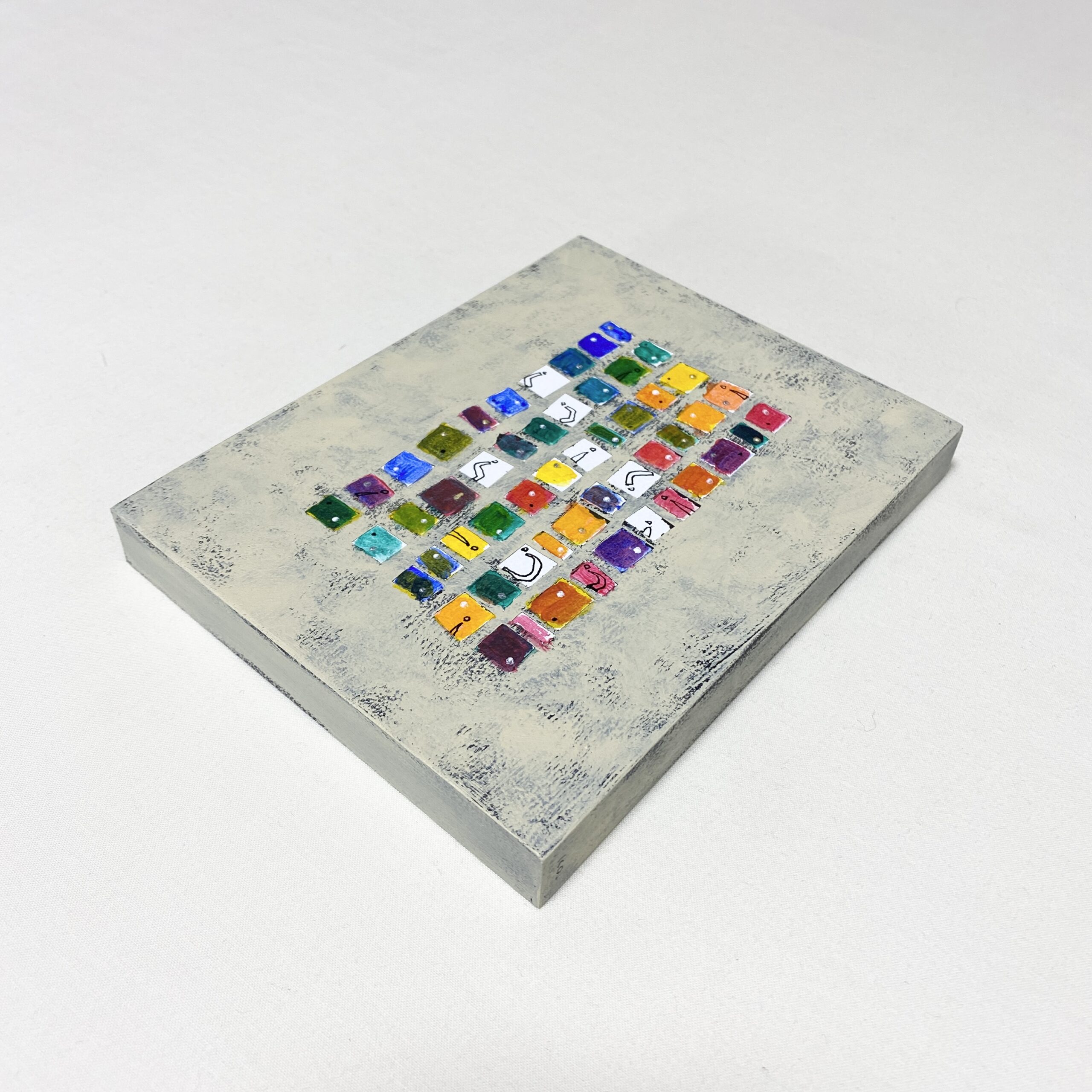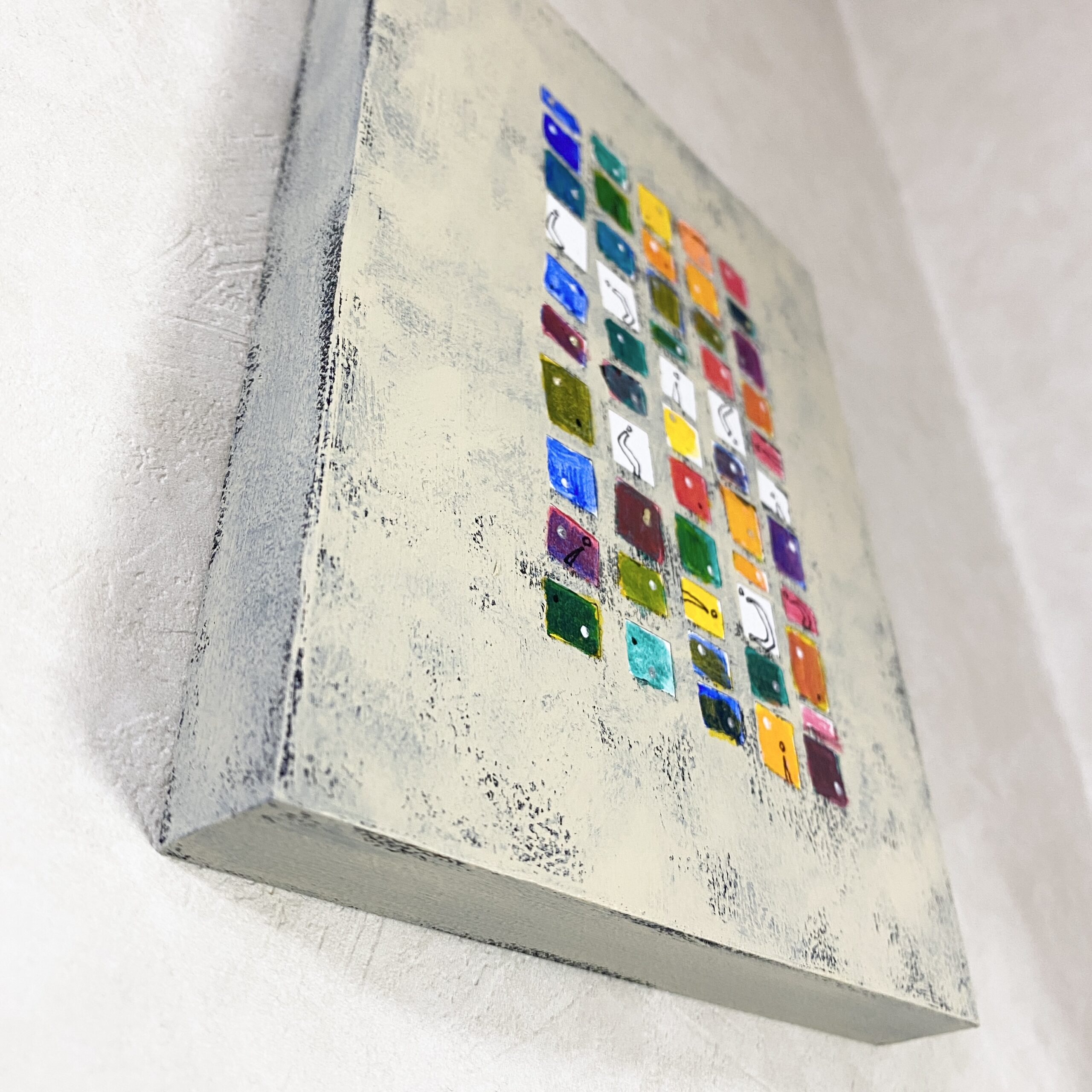学生時代、染色技法、アクリル画で、主に幾何・抽象表現の作品を制作。