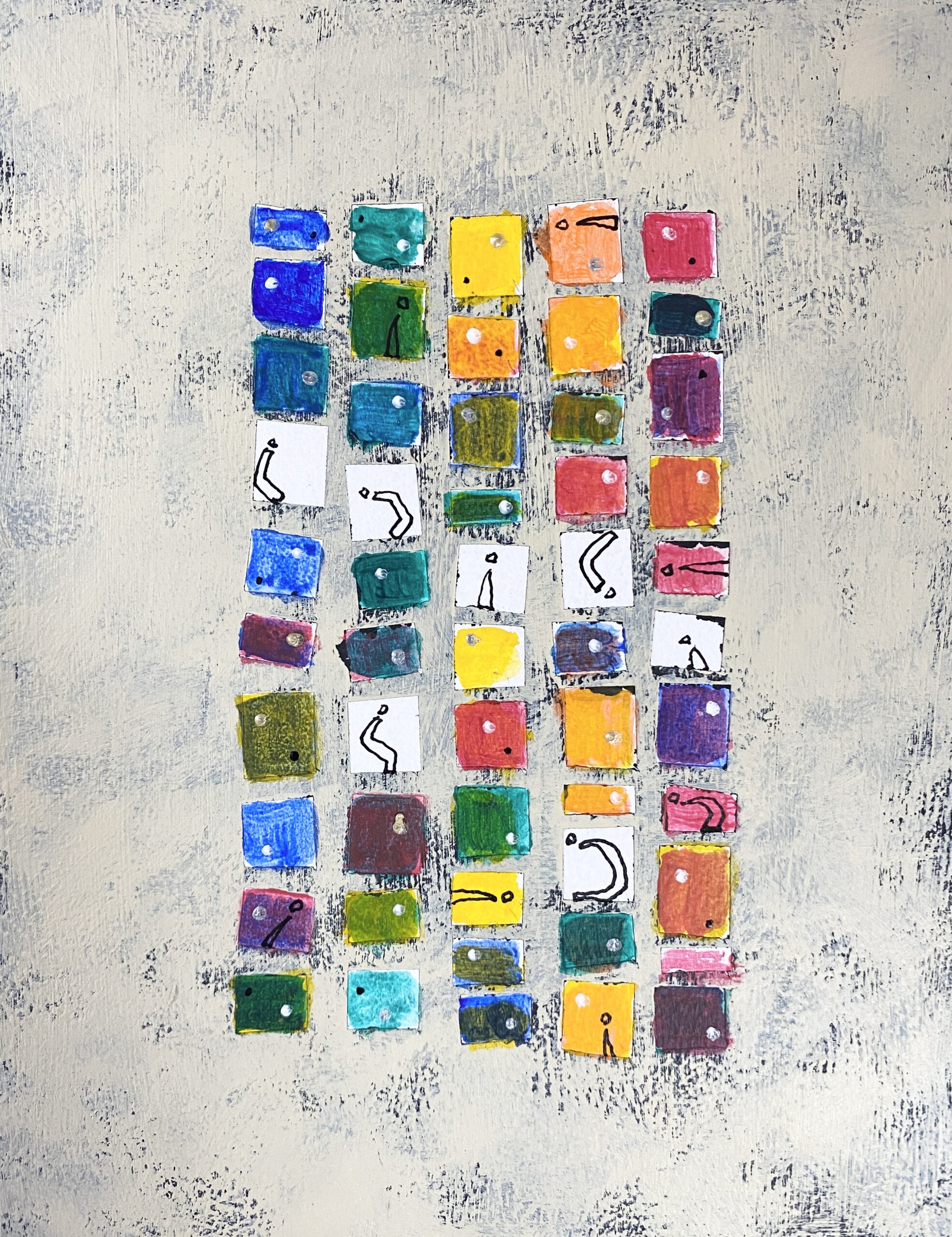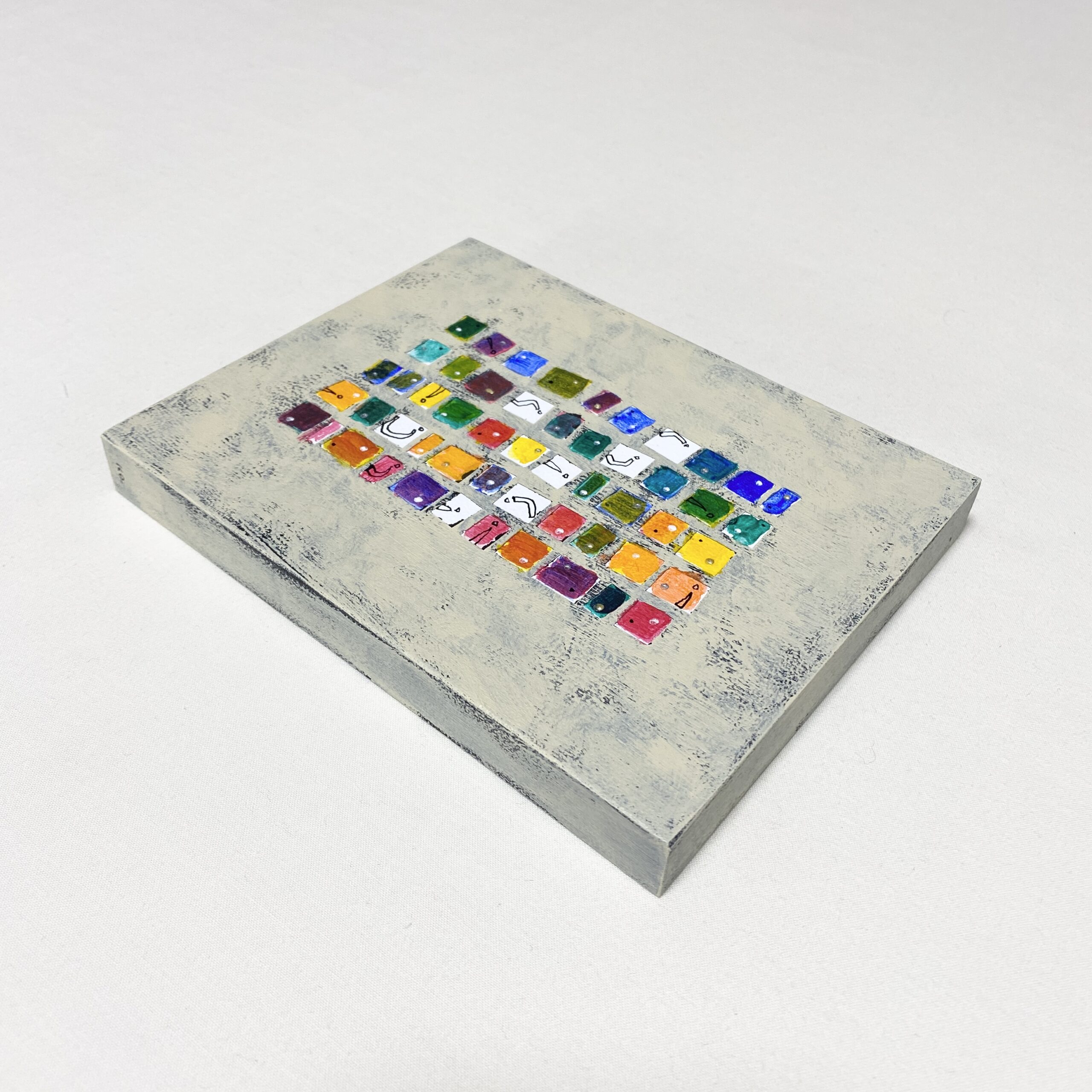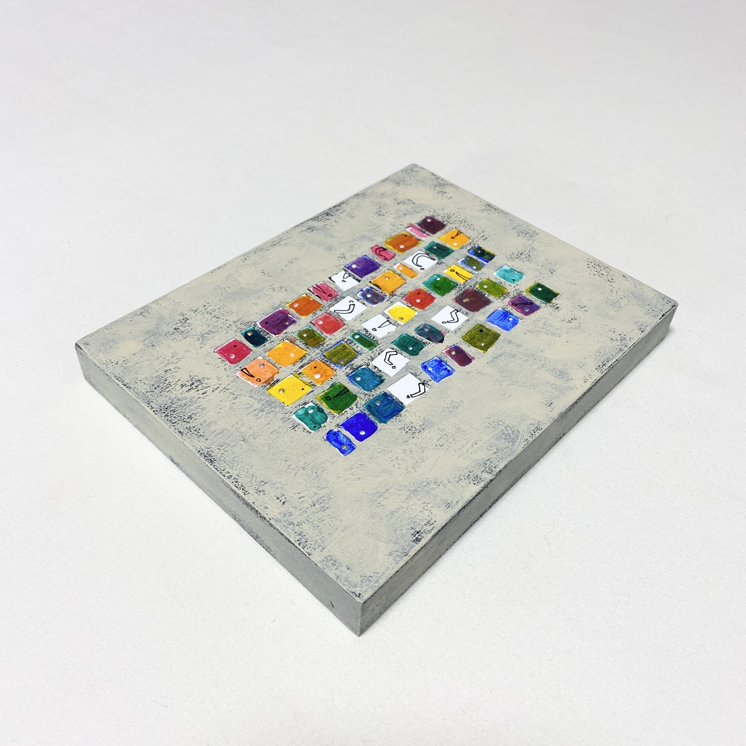 学生時代、染色技法、アクリル画で、主に幾何・抽象表現の作品を制作。