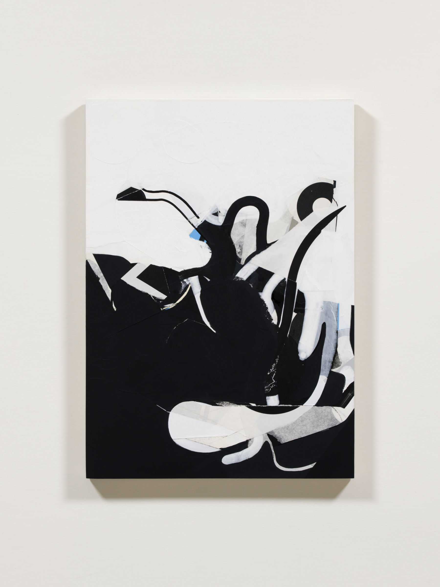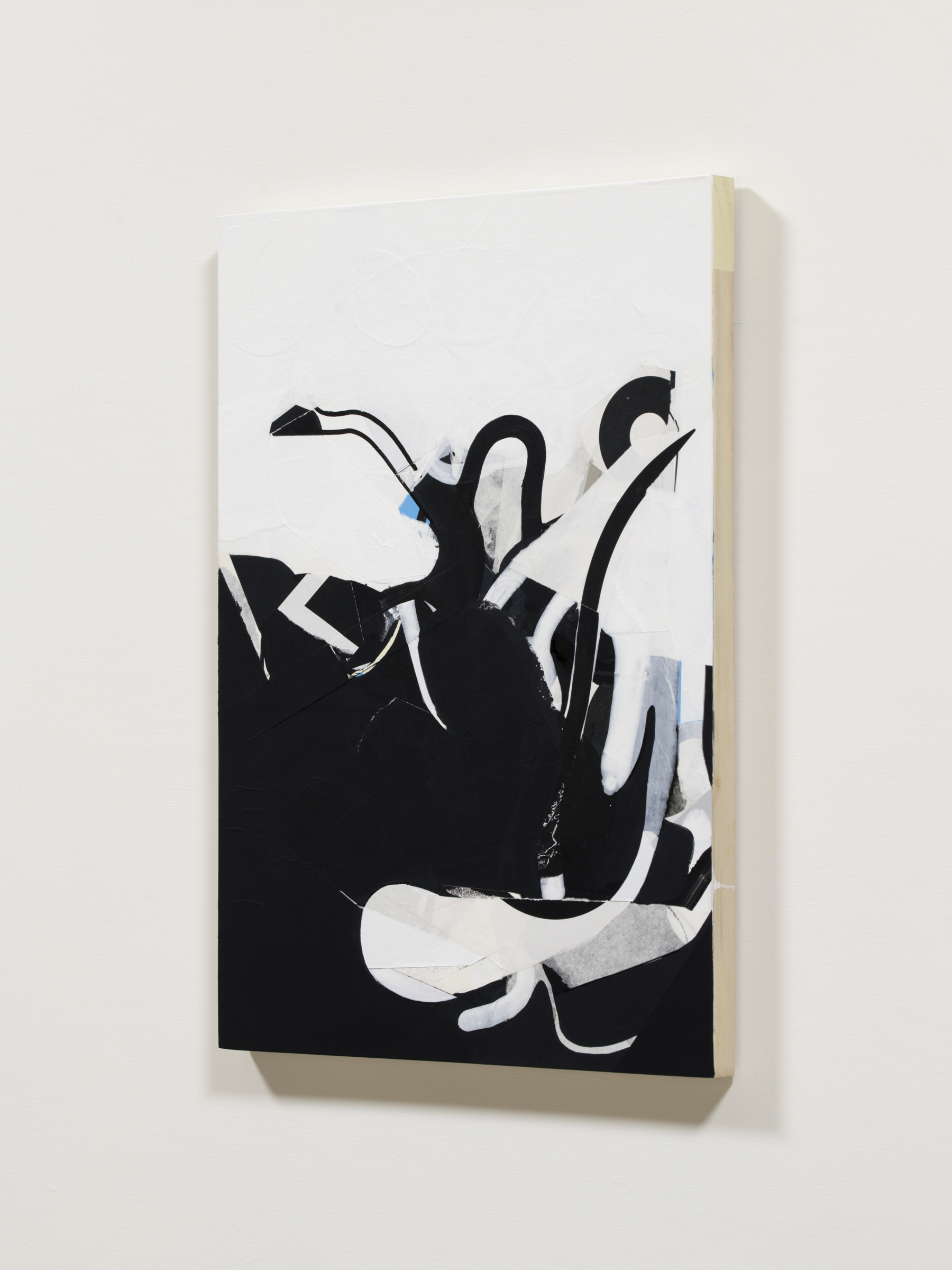 木製パネルにアクリル絵具、マーカー、紙と印刷された紙のコラージュ