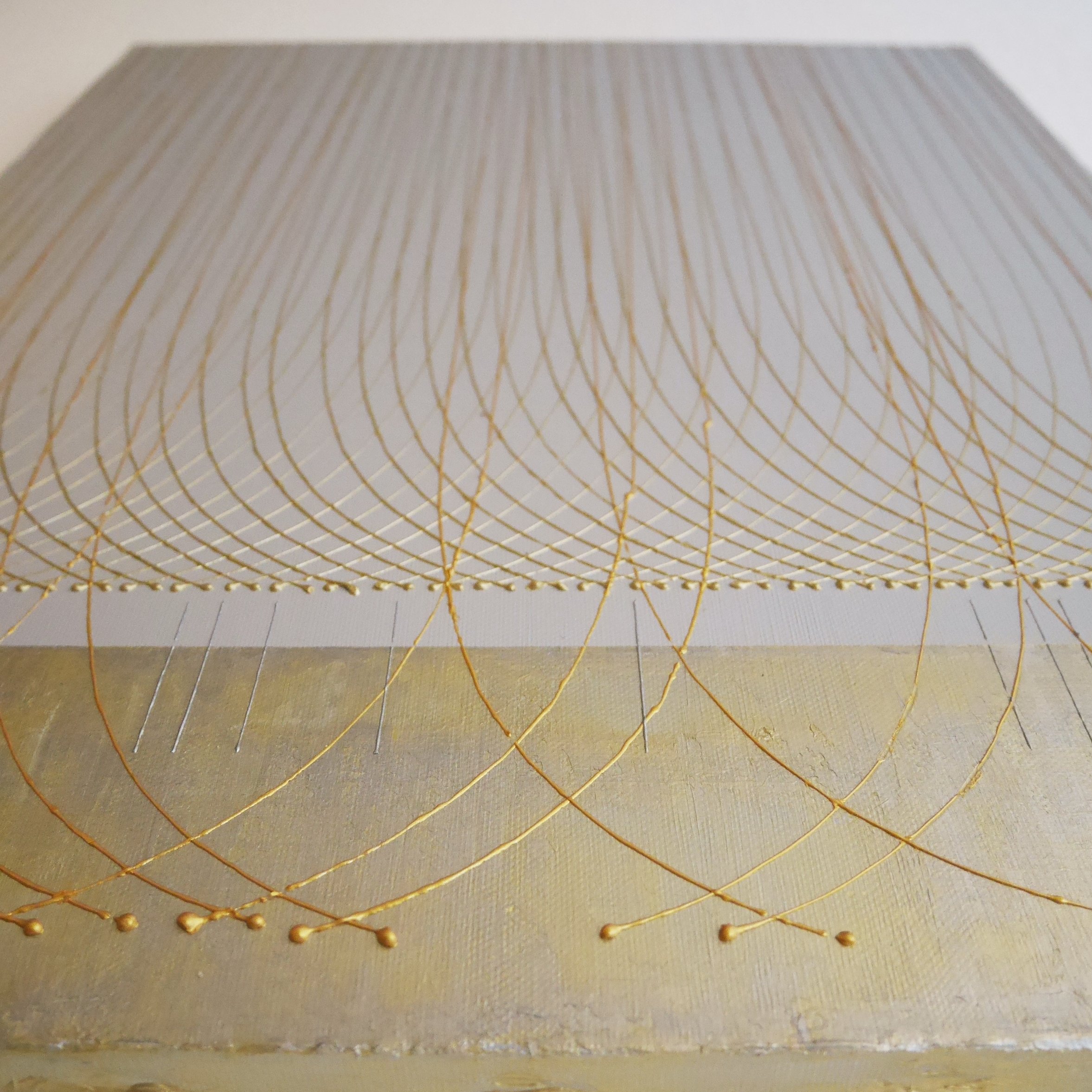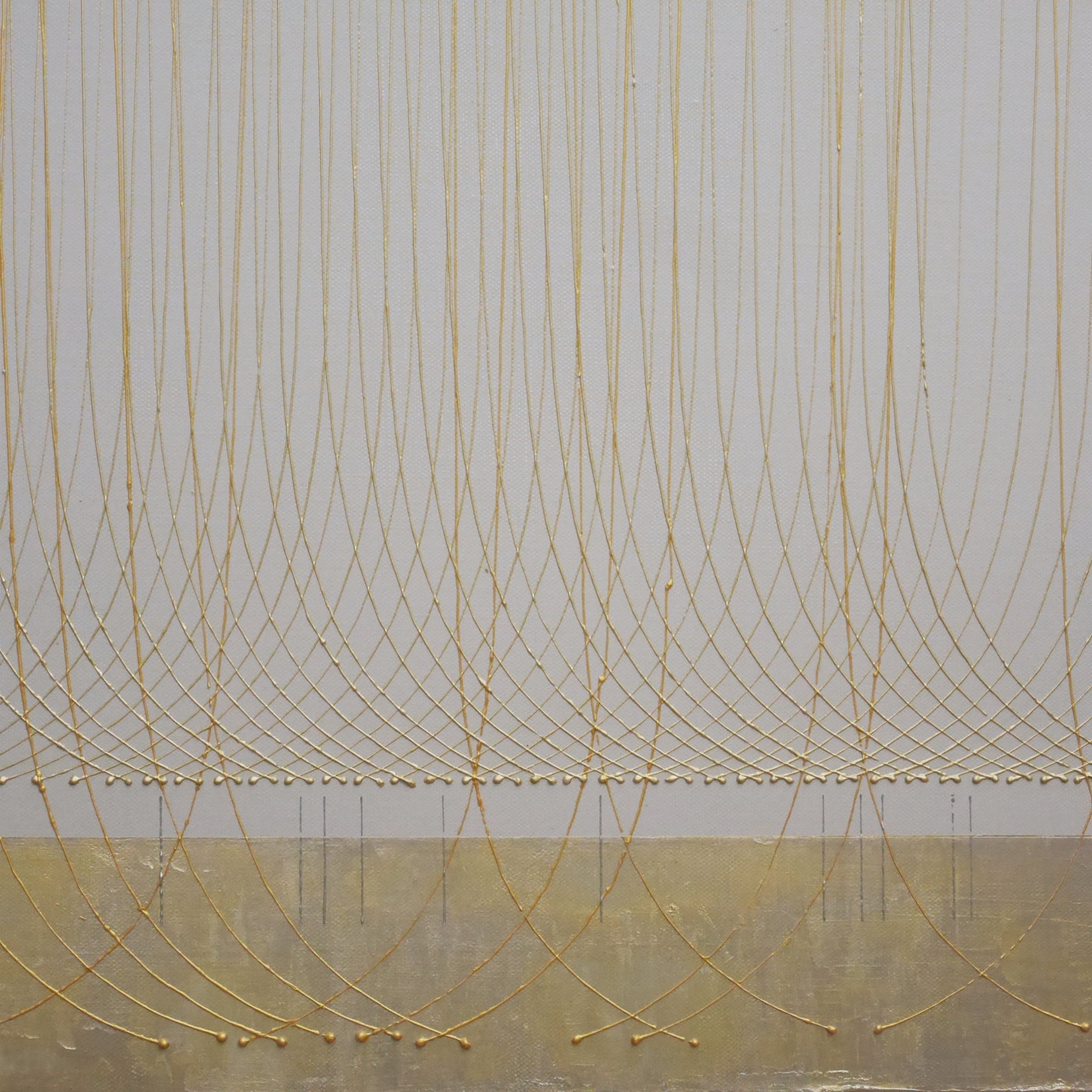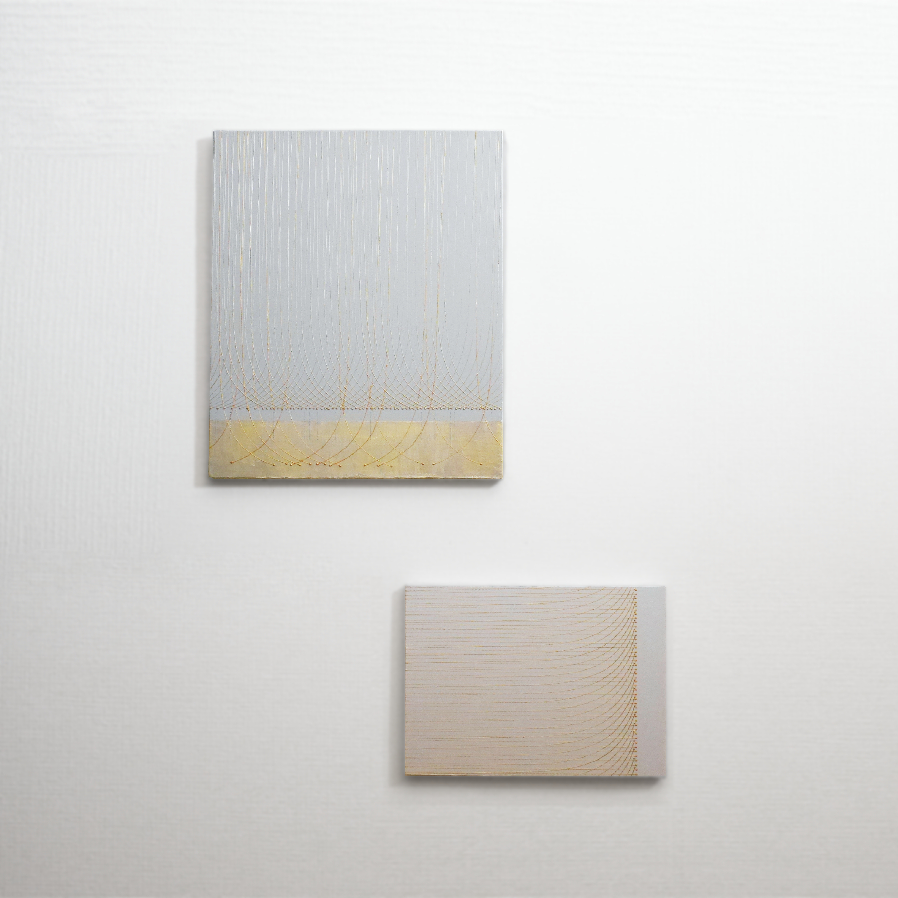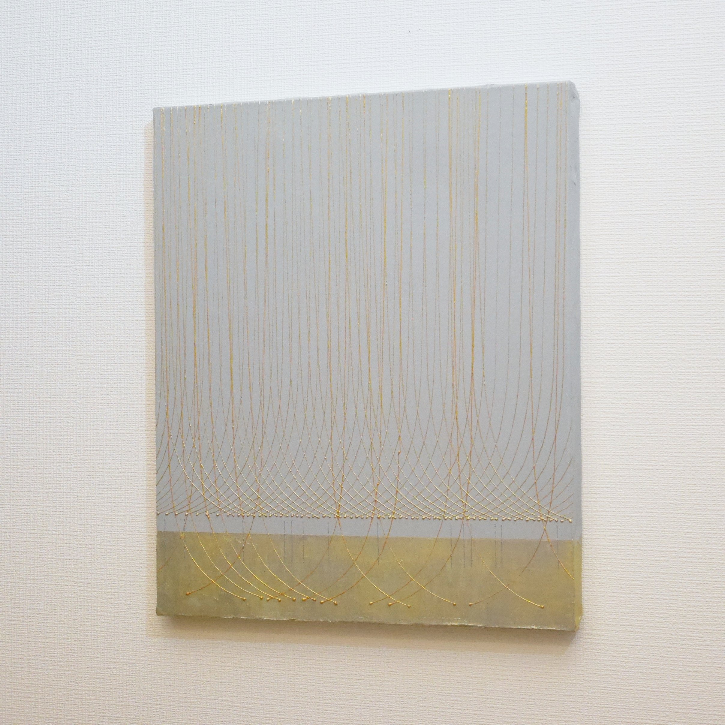 ライトグレーと2種類の金色描画による繊細な抽象作品です。