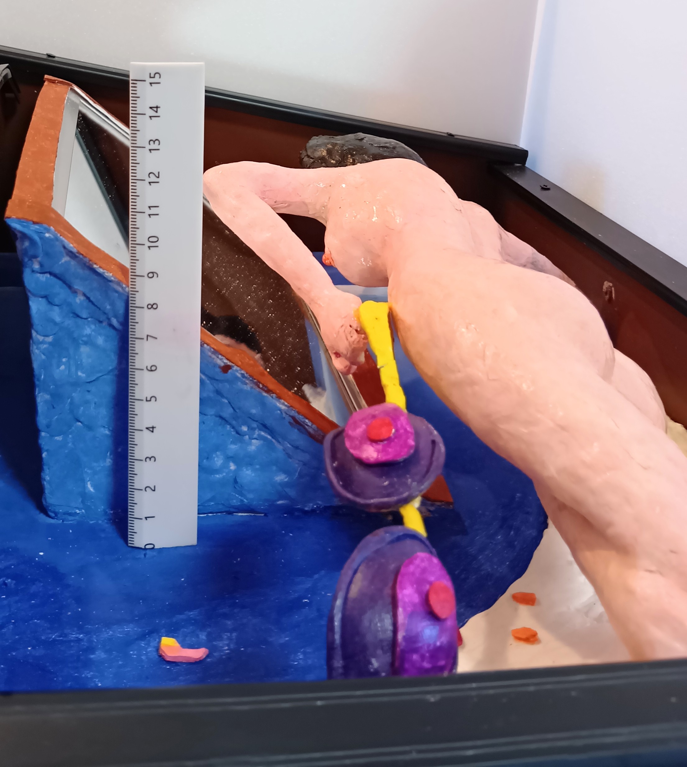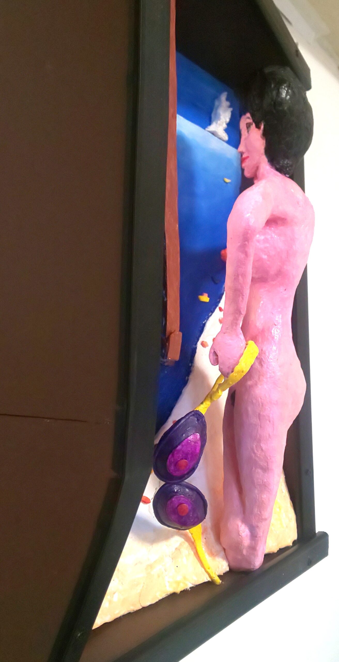 立体絵画の「ビーチに着いて、鏡の前で着替え」(3D アート)