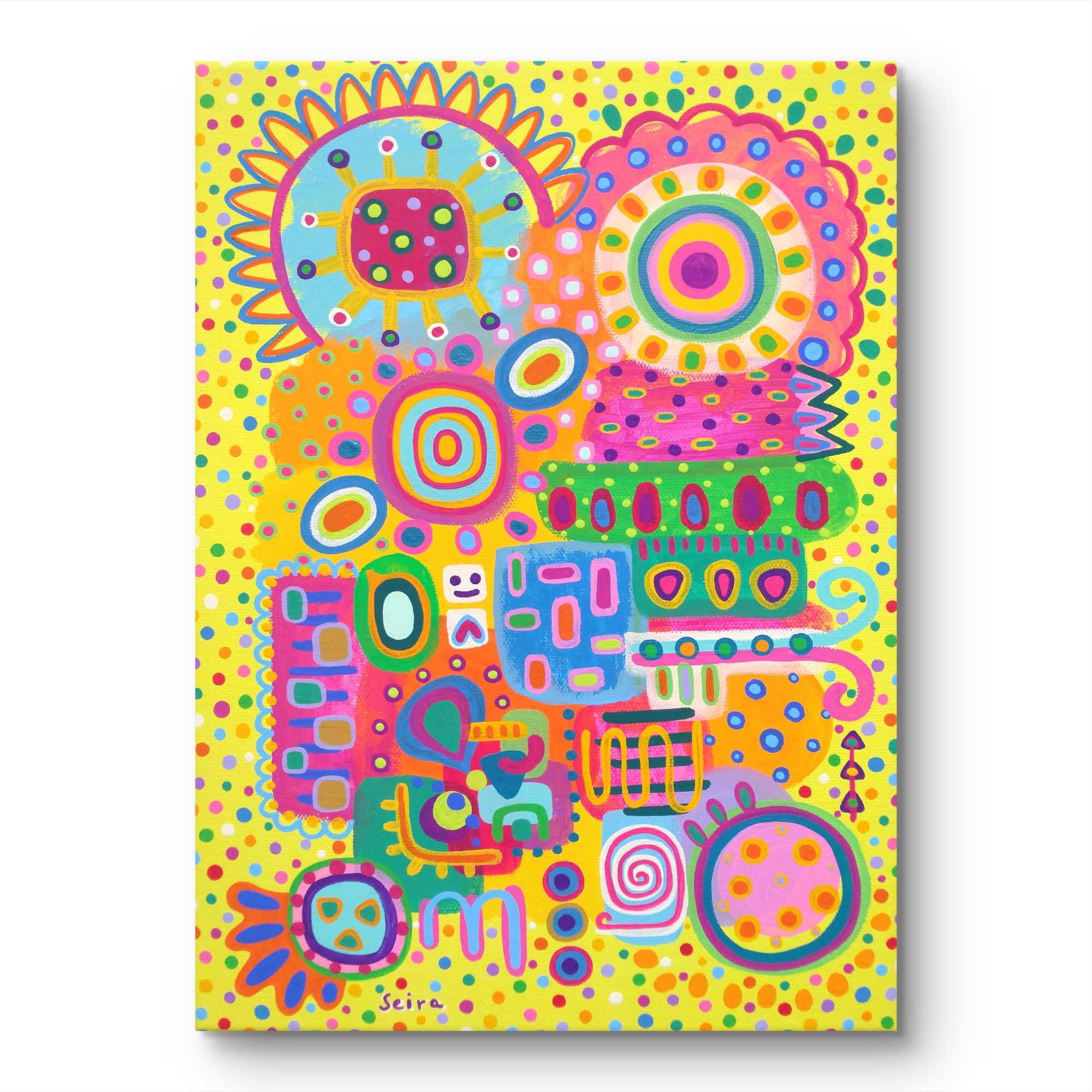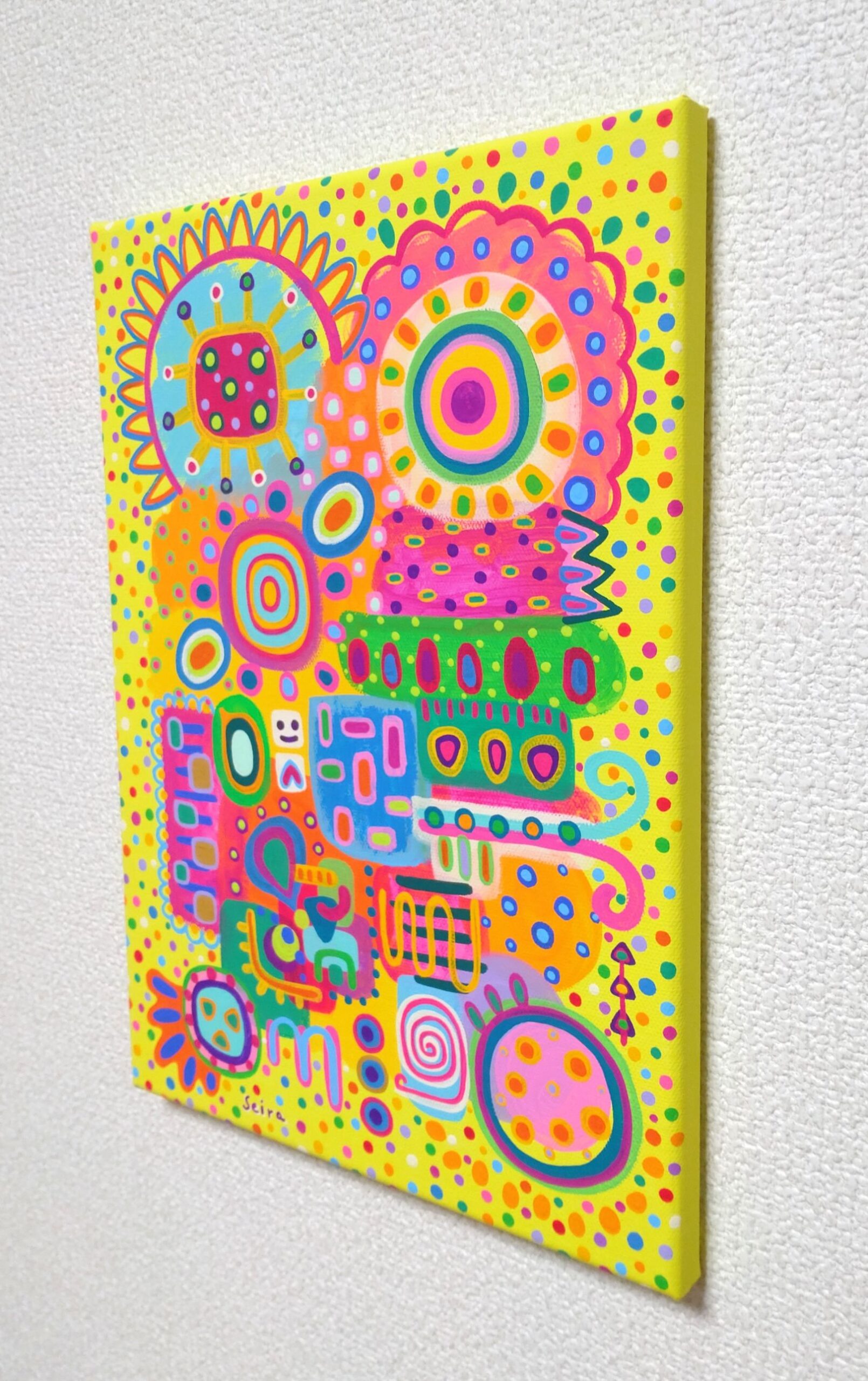 明るくて元気が出る作品をお探しの方、お部屋のアクセントになる作品をお探しの方、ギフトアートをお探しの方、ポップな抽象画をお探しの方におすすめです。