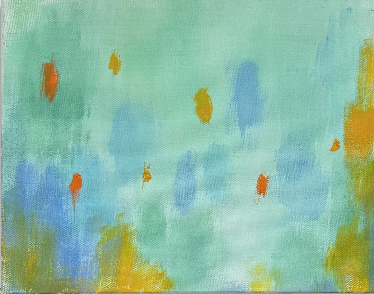 緑色のバックに合う色を載せていきました。教えている絵画教室の生徒さんと一緒に描いたものです。