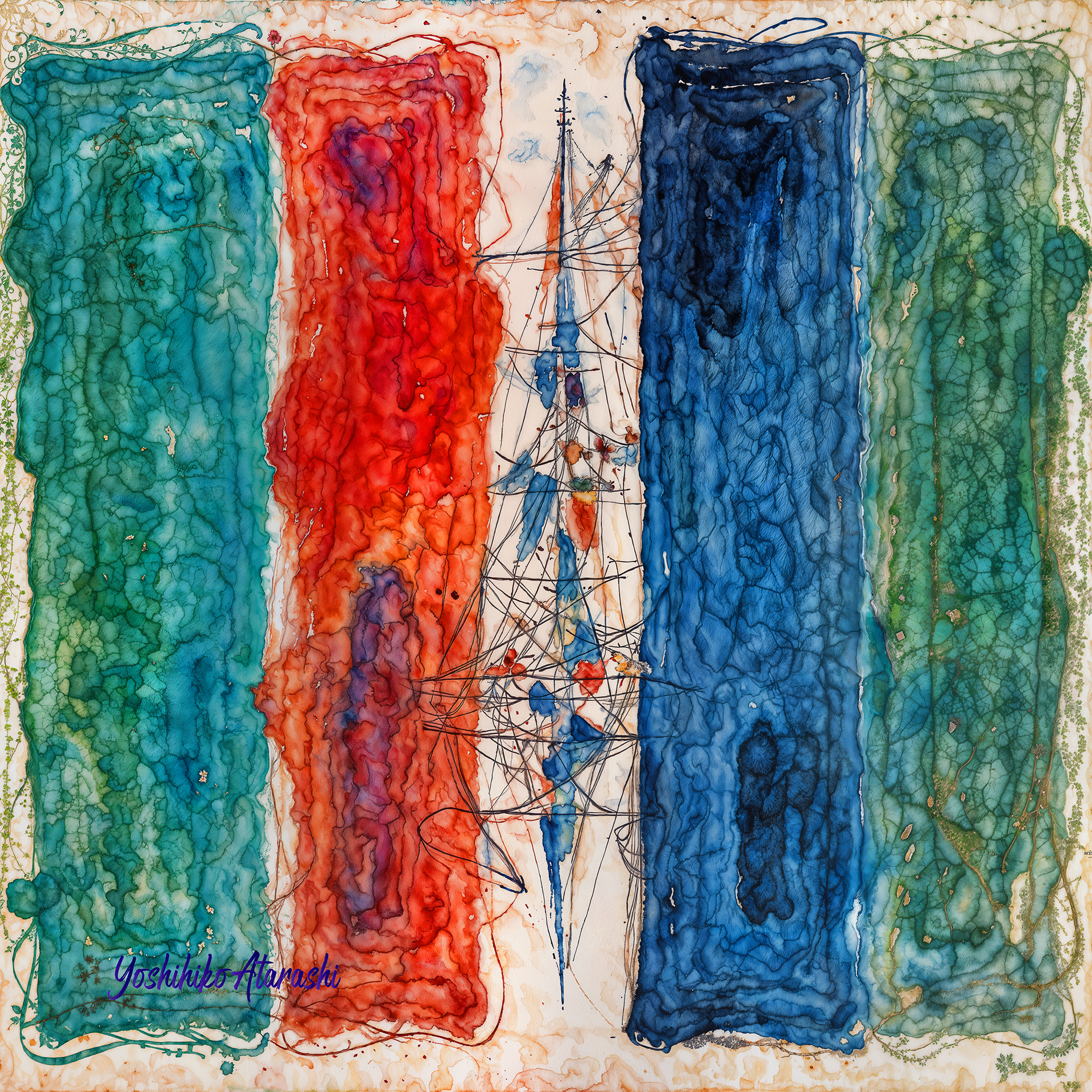 本シリーズは、幾何学と色彩が織りなす原初的なリズムを追求した抽象作品です。どこか懐かしく、それでいて現代的。無意識に訴える構成美が特徴です。視線と感情の流れを誘導し、鑑賞者に内なる記憶との対話を促します。コレクター層から若年層まで幅広くお薦めです。