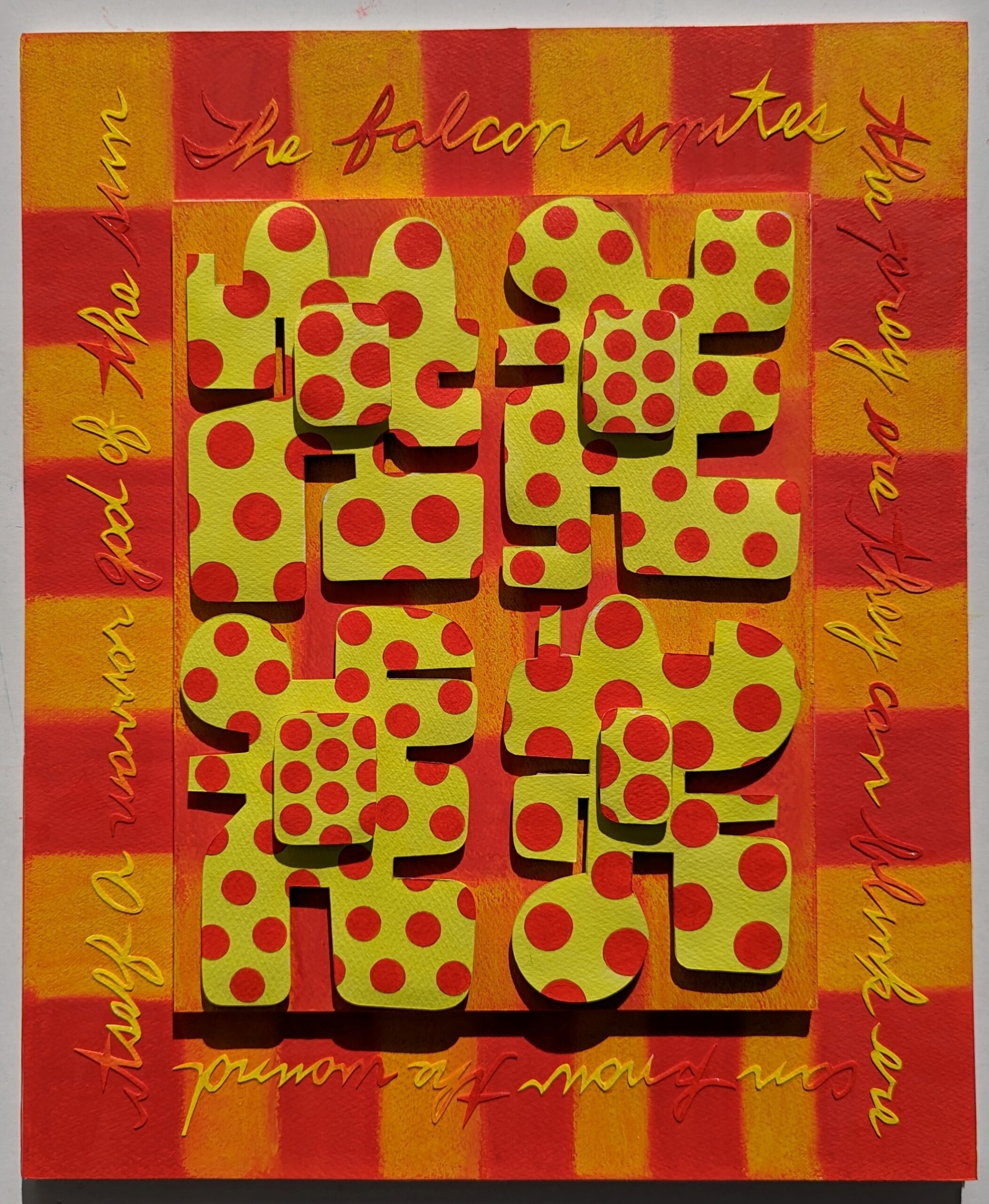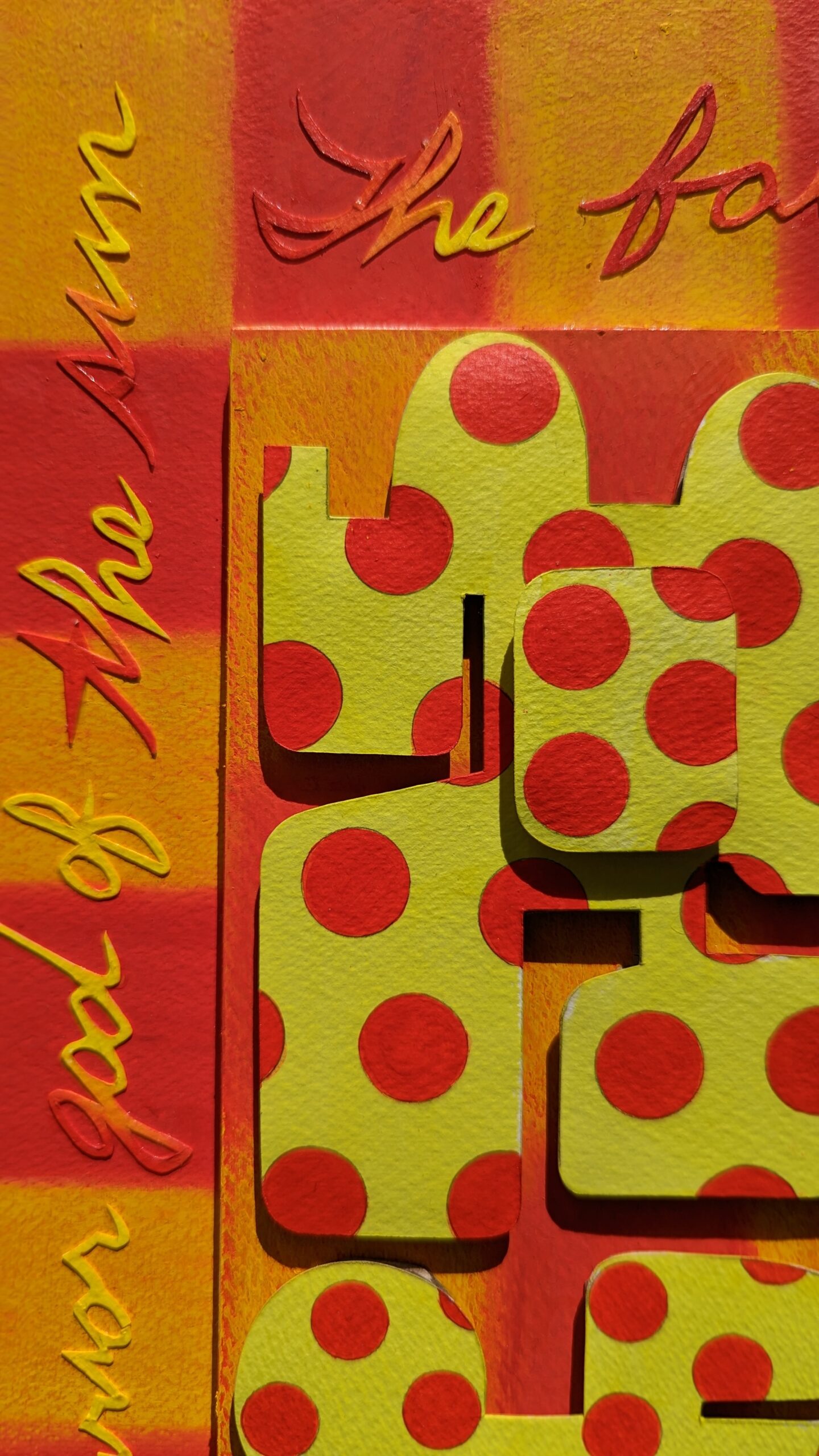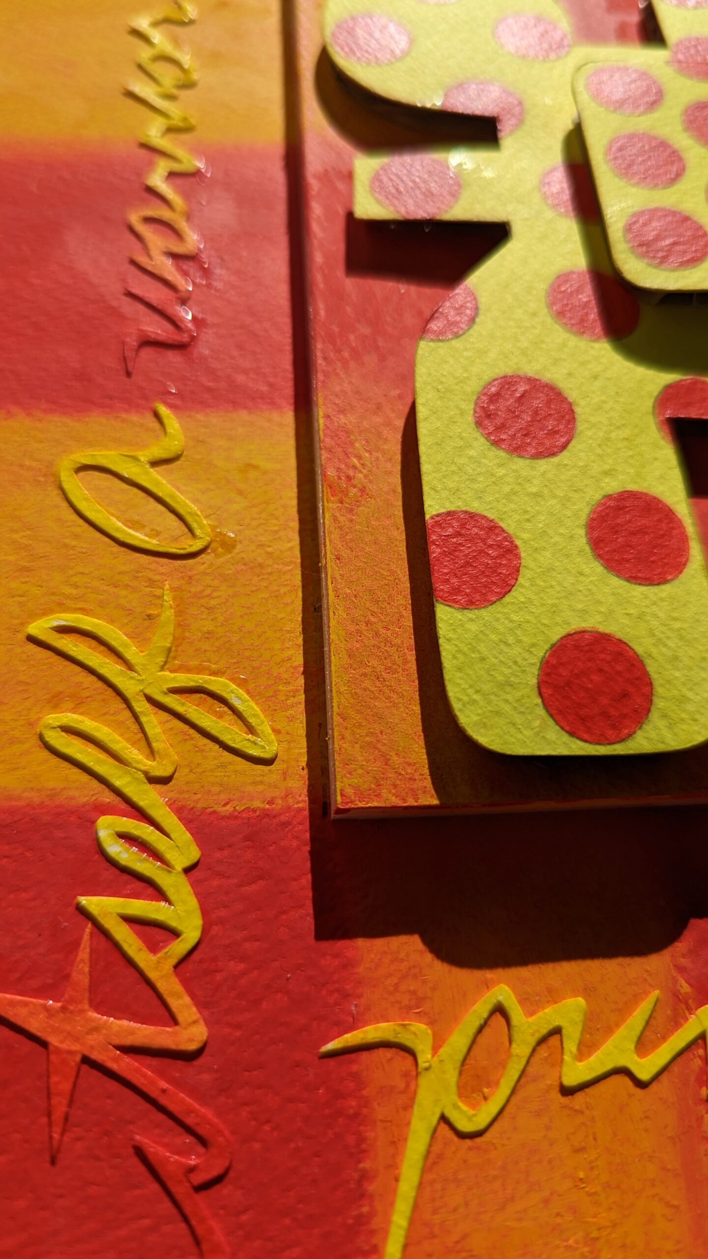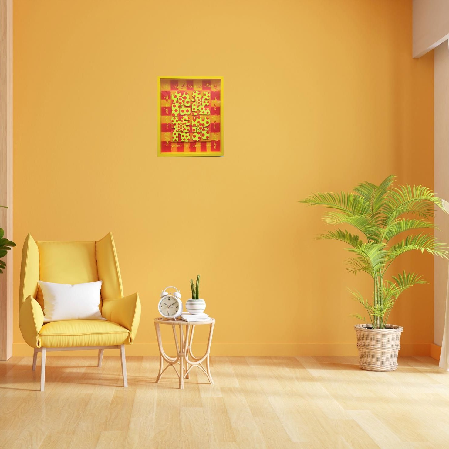 作品は、半分立体的となっていますので、光の角度により生じる陰影も是非お楽しみ下さい。テーブルランプなどで下から照らすと、凹凸がよりくっきり現れて、絵画とは違う、彫刻のような作品としても楽しめます。