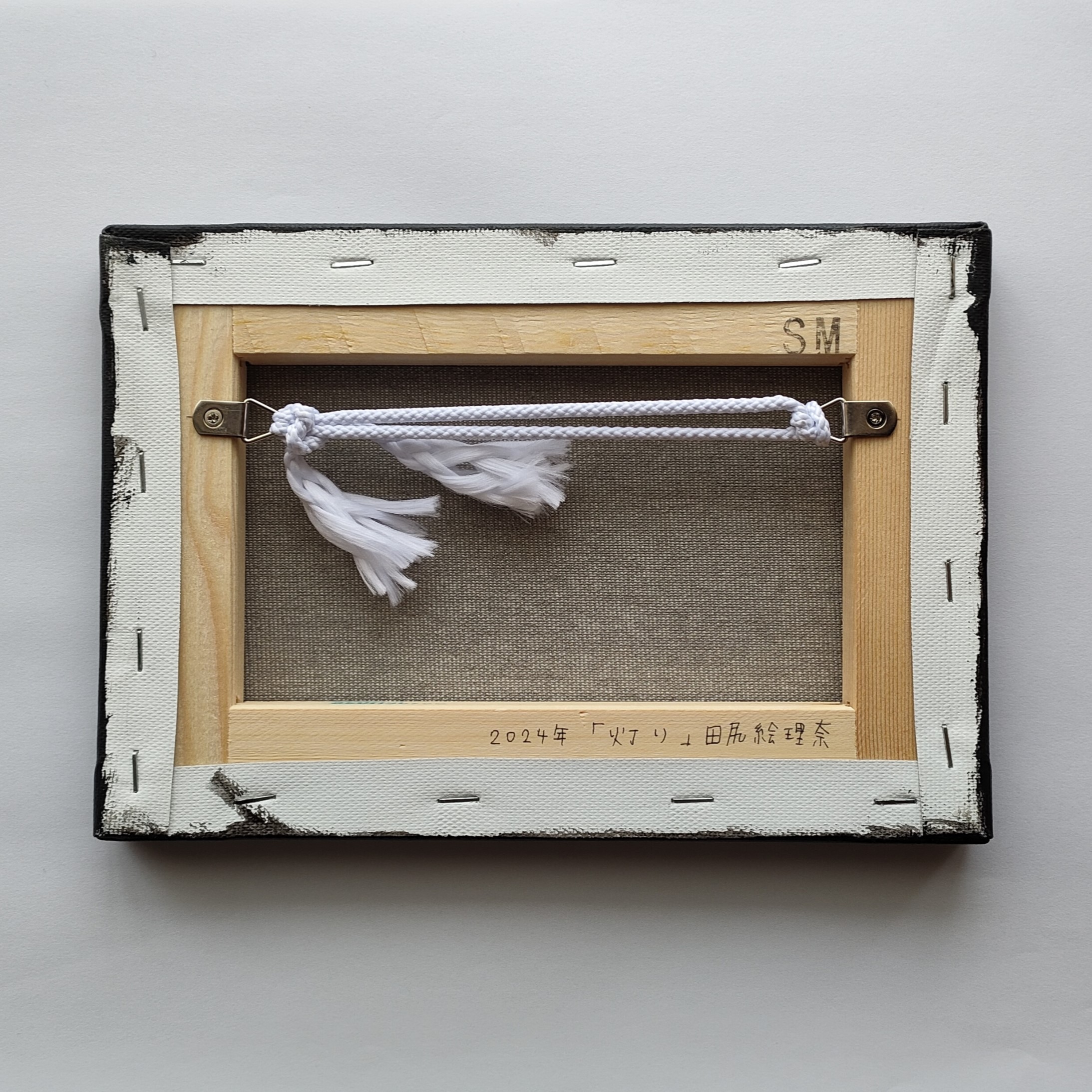 キャンバスや木製パネルの作品は裏面に吊り紐をお付けしております。