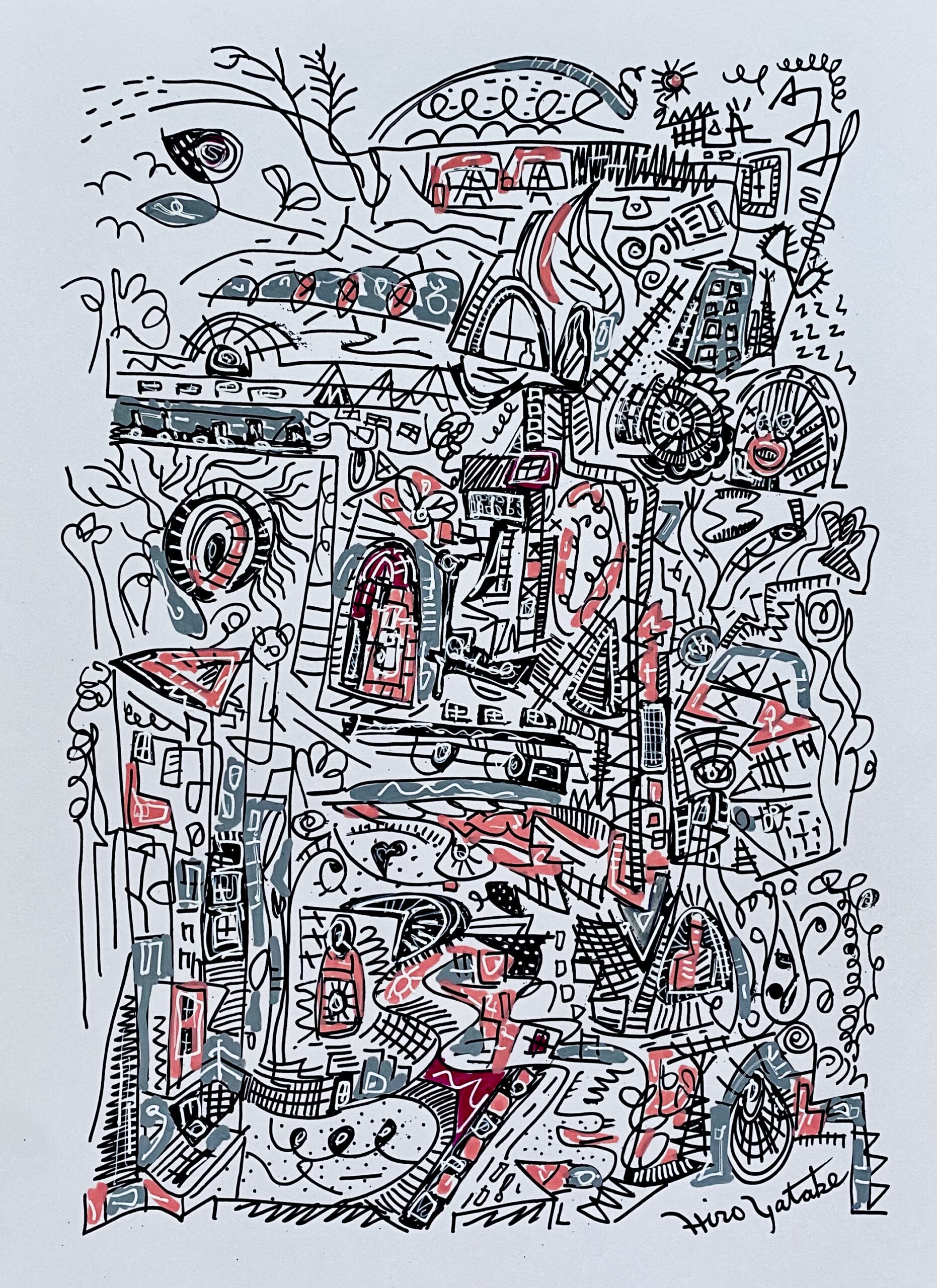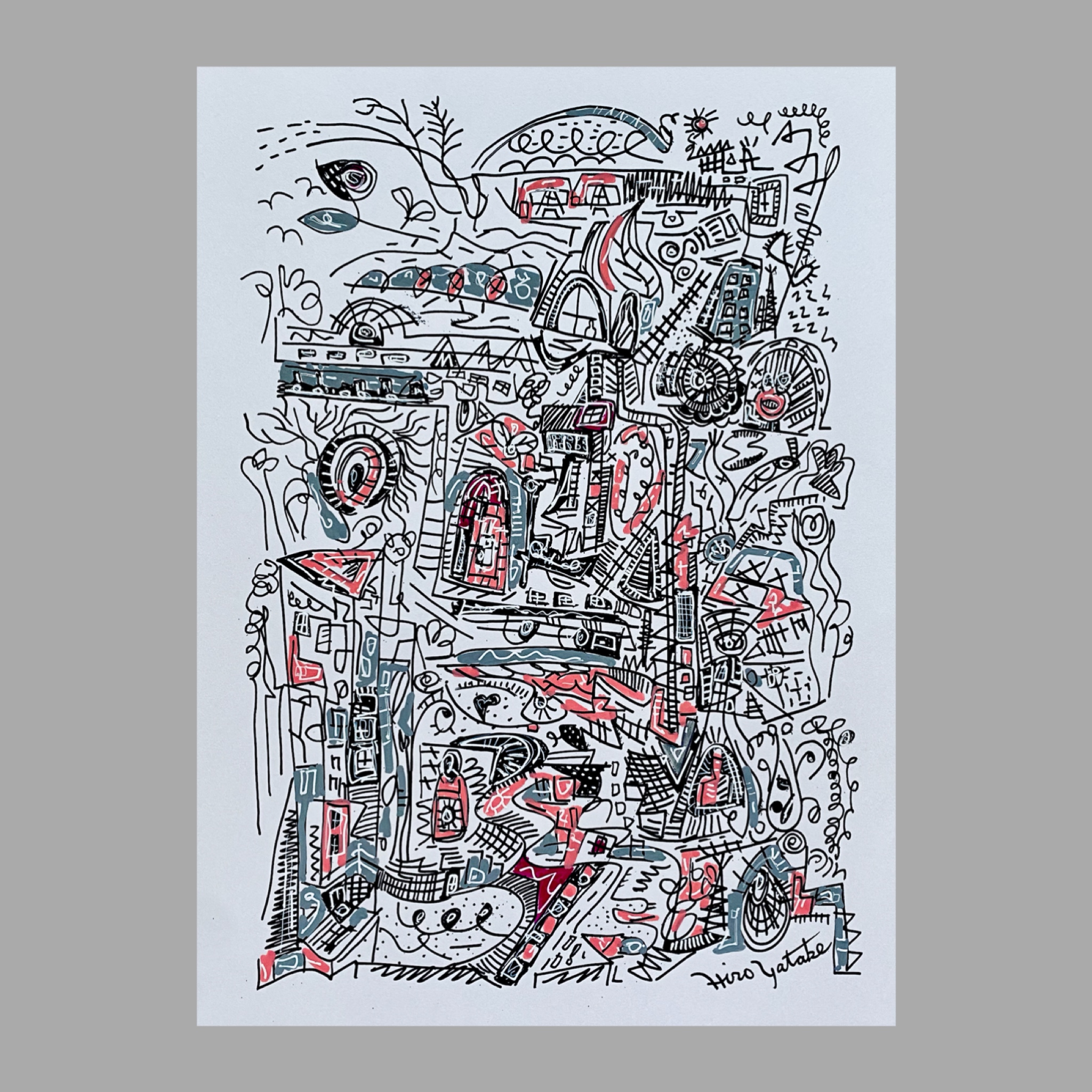 2008年 浮かんだイメージを付箋にボールペンでスケッチ。2012年になりそれをまとめたものを知人に見せたところサイズや画材をかえて絵画として発表することを勧められ、2013年、公募展にA4サイズのカードボードにペン・パステルで描いた作品を出品。その後アクリル絵具での創作をスタート。