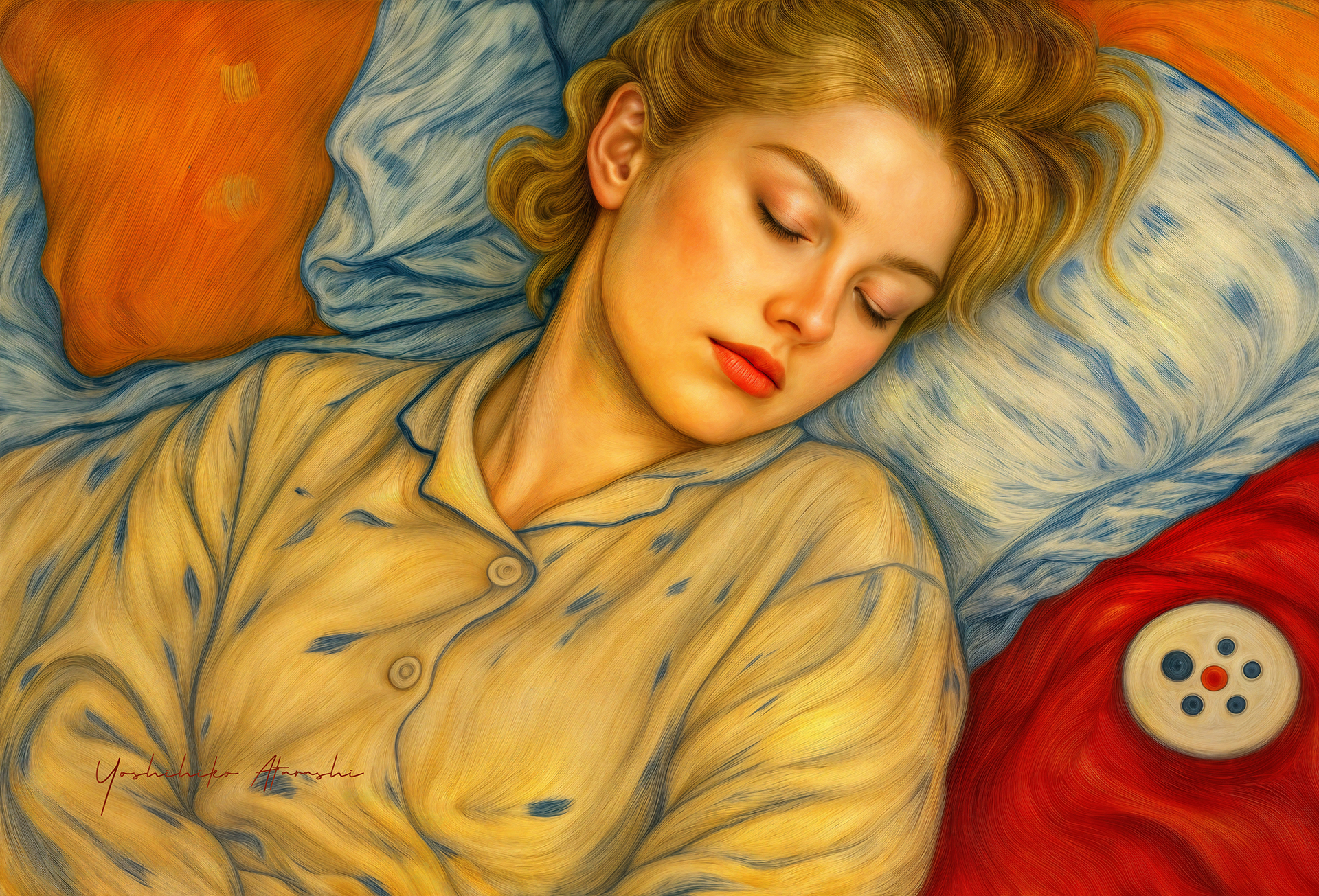 これらの作品は、眠りという人間の最も無防備で純粋な瞬間を描き出すことを通じて、内面の静けさや心の結びつきを表現しています。柔らかな筆致と繊細な色調で人物の表情や肌の質感を丁寧に描き、光と影を通じて時間の流れと感情の深さを演出しました。寝姿は、孤独の中にある優しさや共感を象徴しており、鑑賞者に静かな安心感をもたらすことを意図しています。