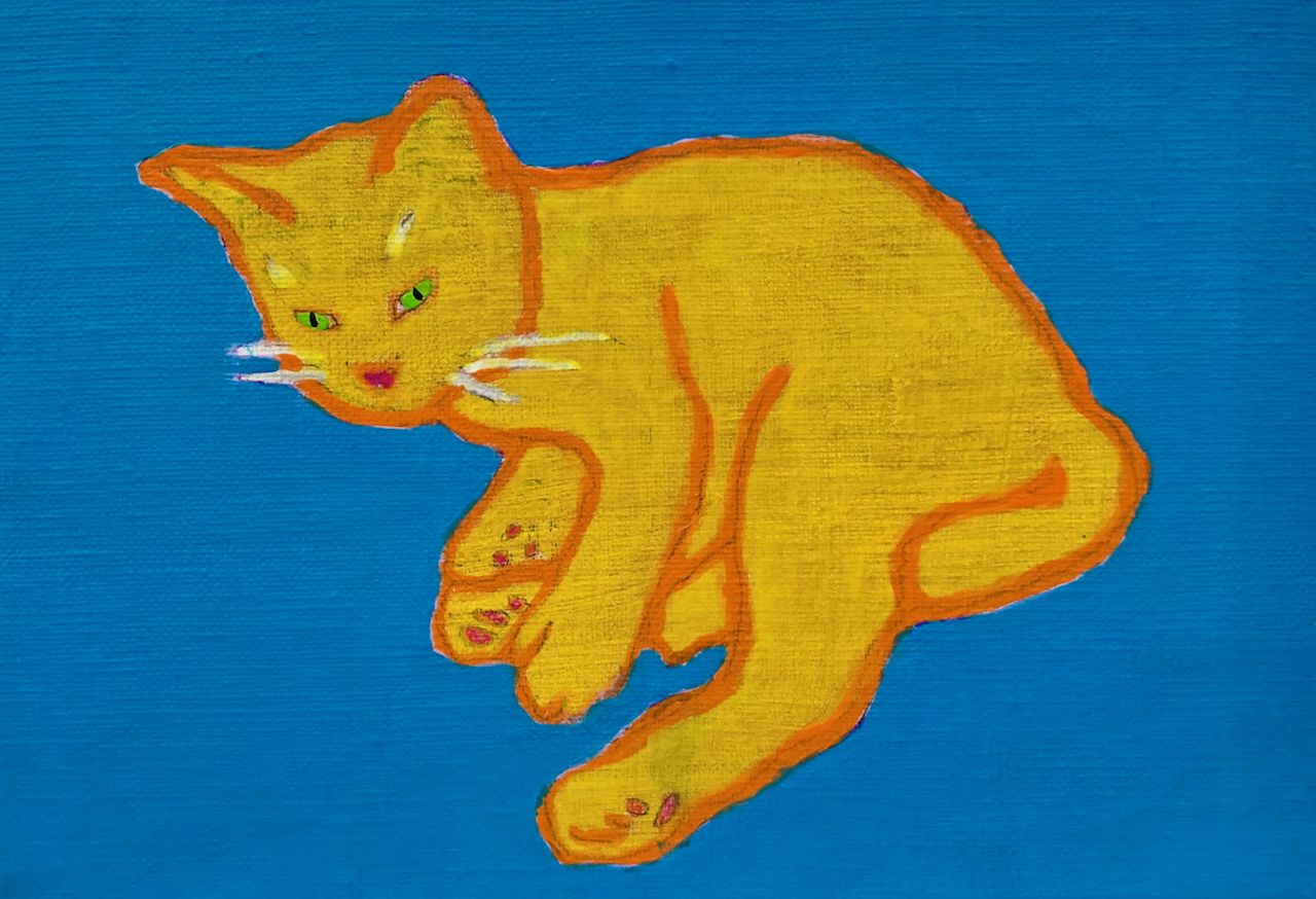 現在は、保護猫カフェに行って、そこで里親を募集している猫たちを主にモデルとして絵を描いています。