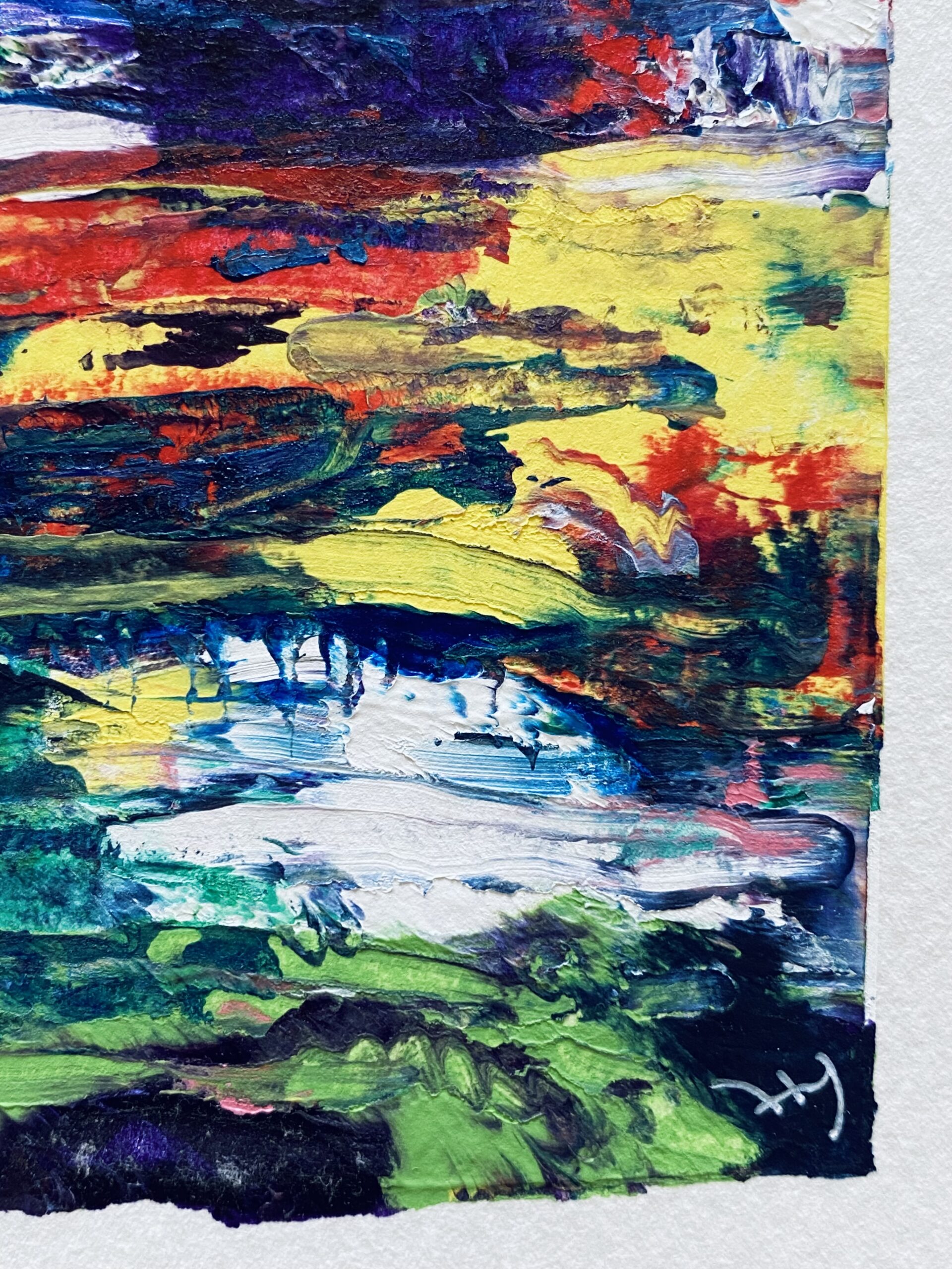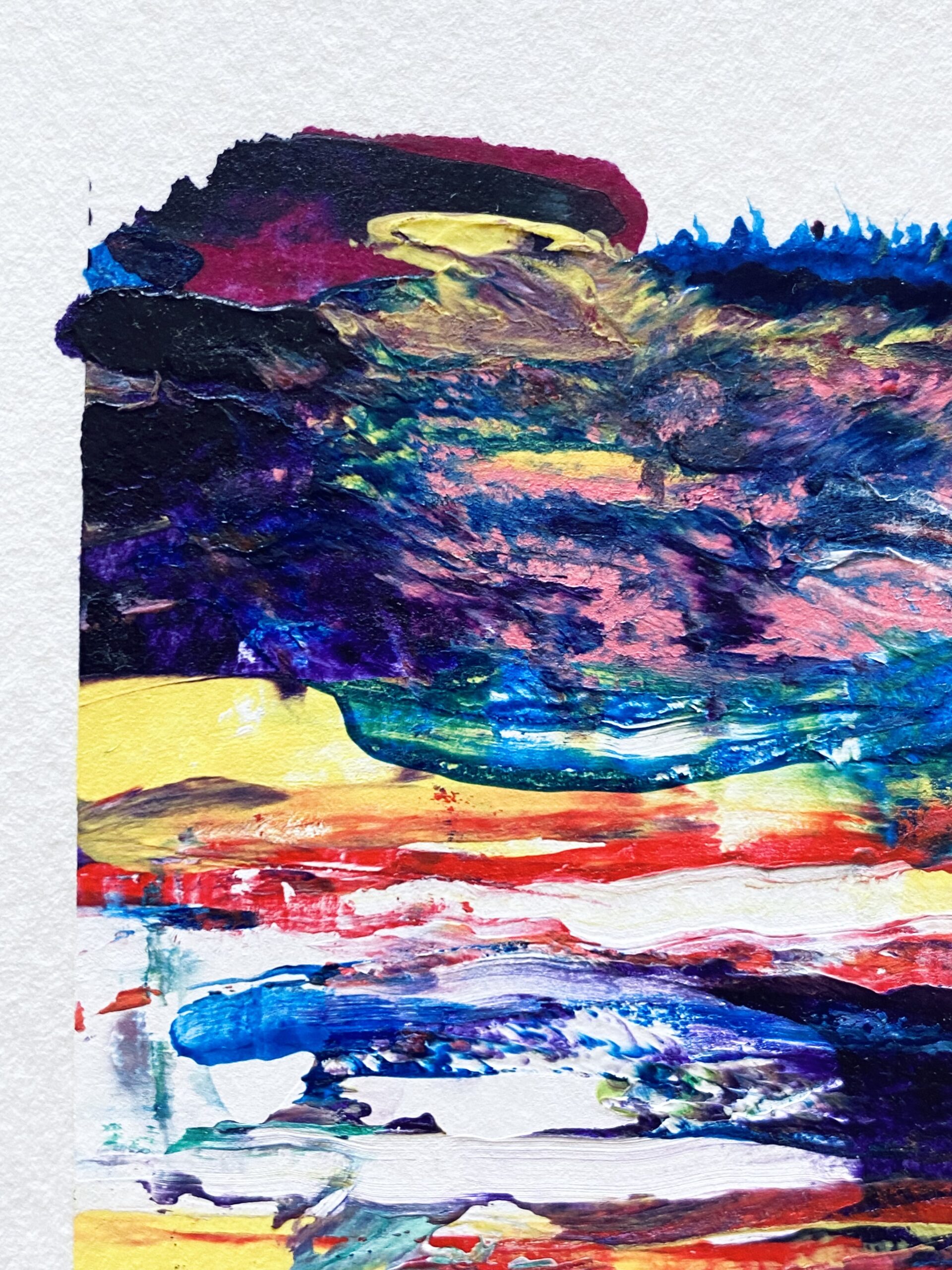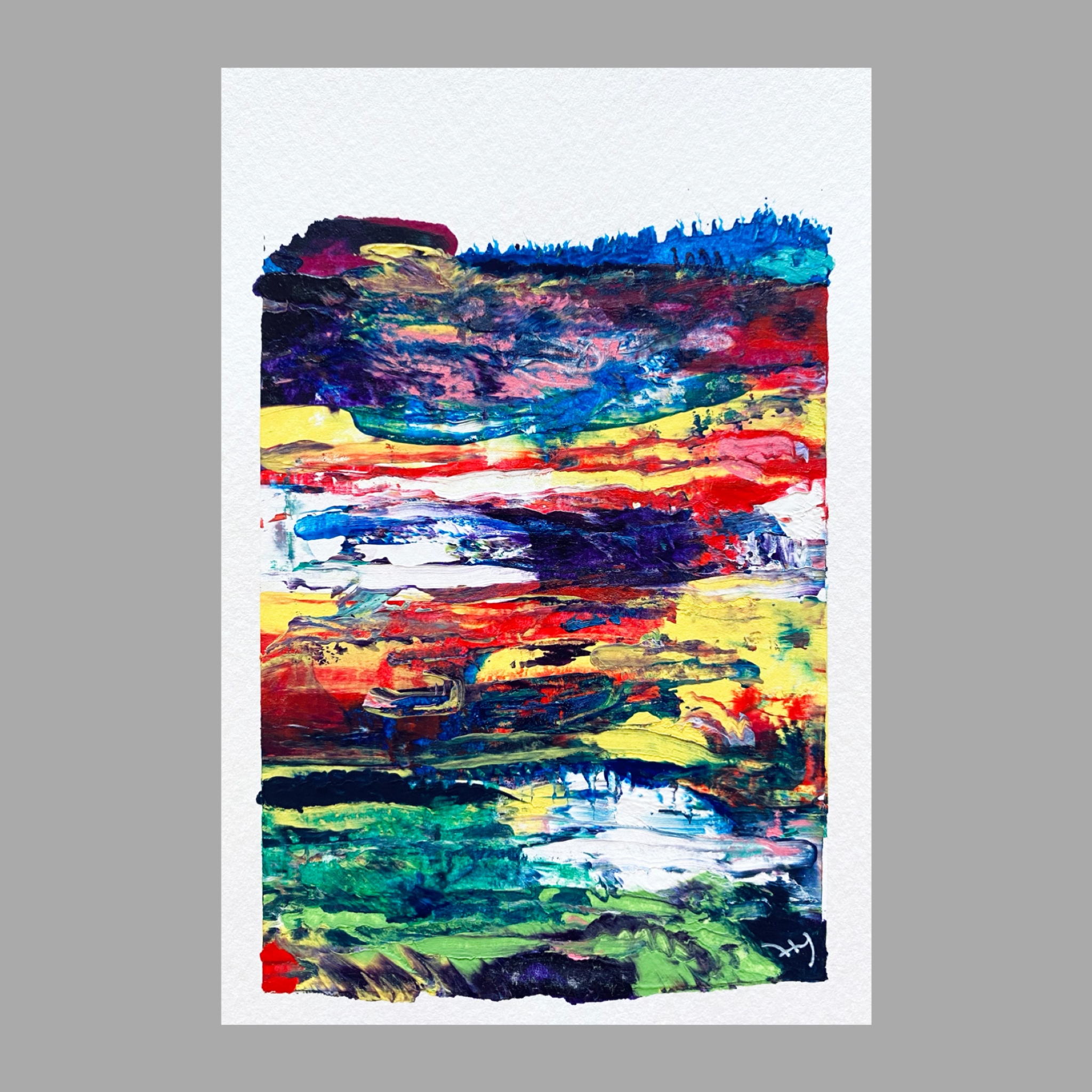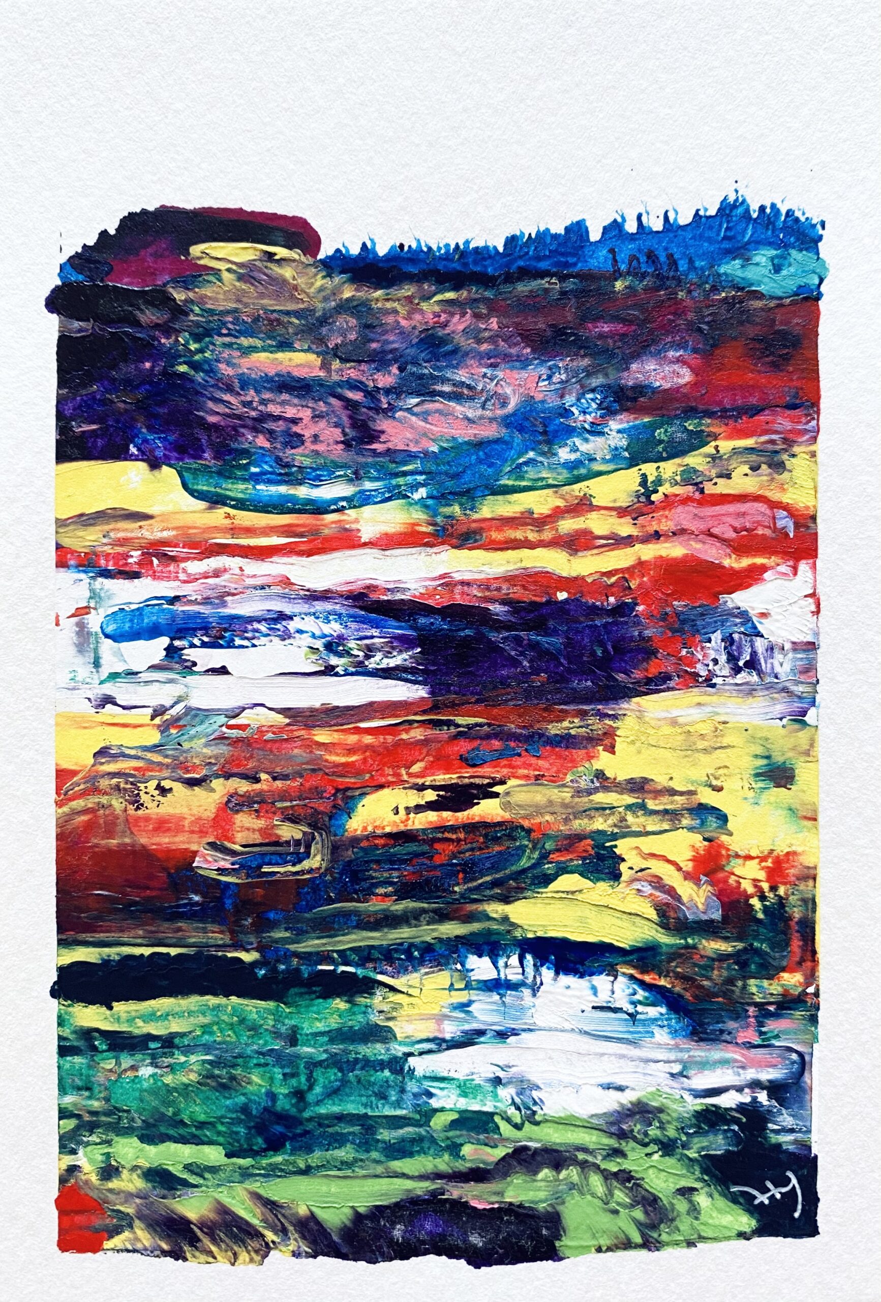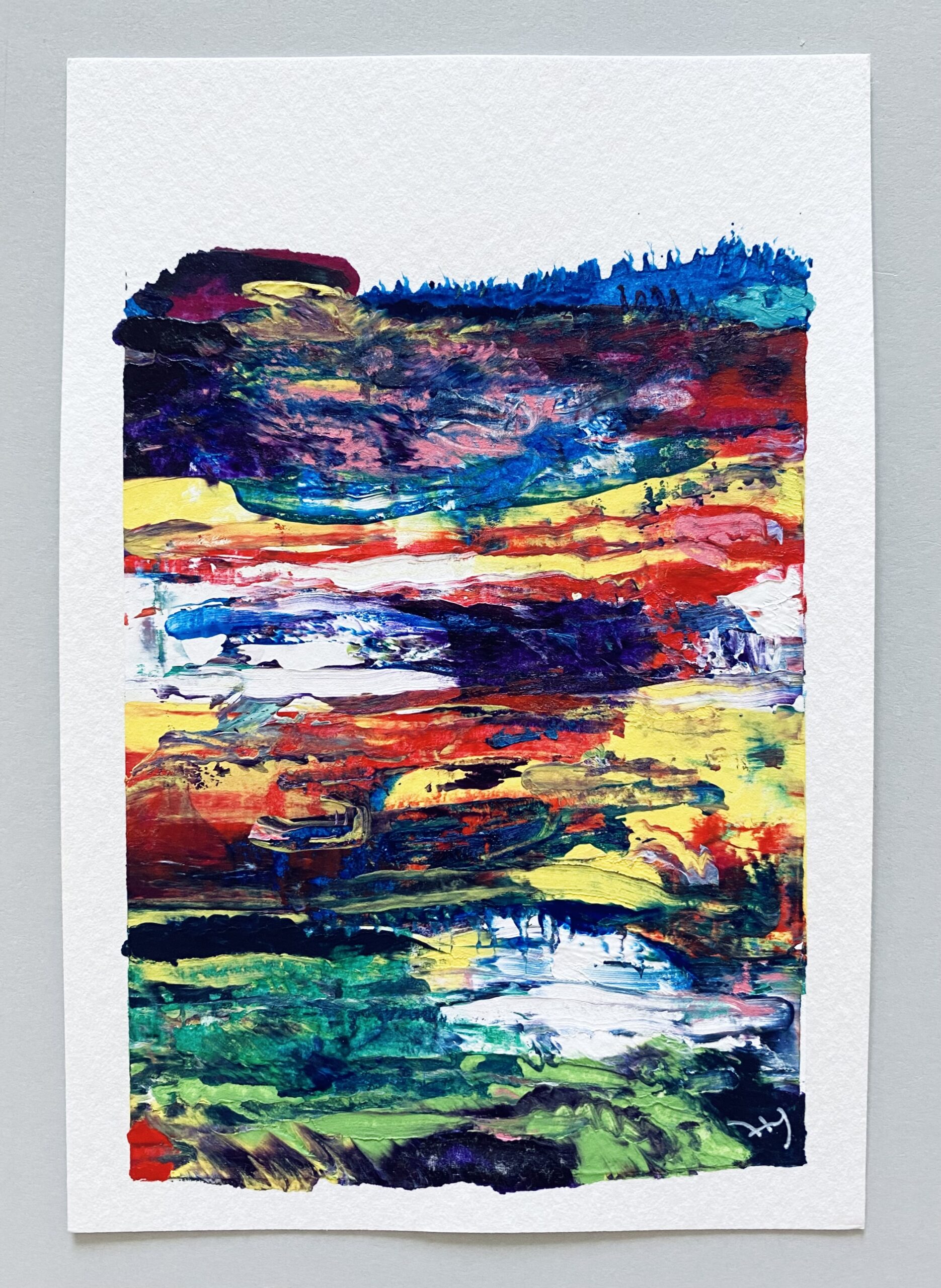 シリーズ作品を除き、タイトルは創作のはじめにあったものではなく、描き終えた時点で観る側となった私が名付けた「仮のタイトル」です。参考にするのも、答え合わせのように楽しむのも、あるいはまったく無視するのも自由です。抽象表現の色や形に意味を見出す手がかりは、あなたの記憶や経験のなかにしかありません。最終的な作品は観るかたの中で完成すべきものだと考えています。思い思いに想像の翼を羽ばたかせ、作品に新しい解釈を加えていただくことを望みます。