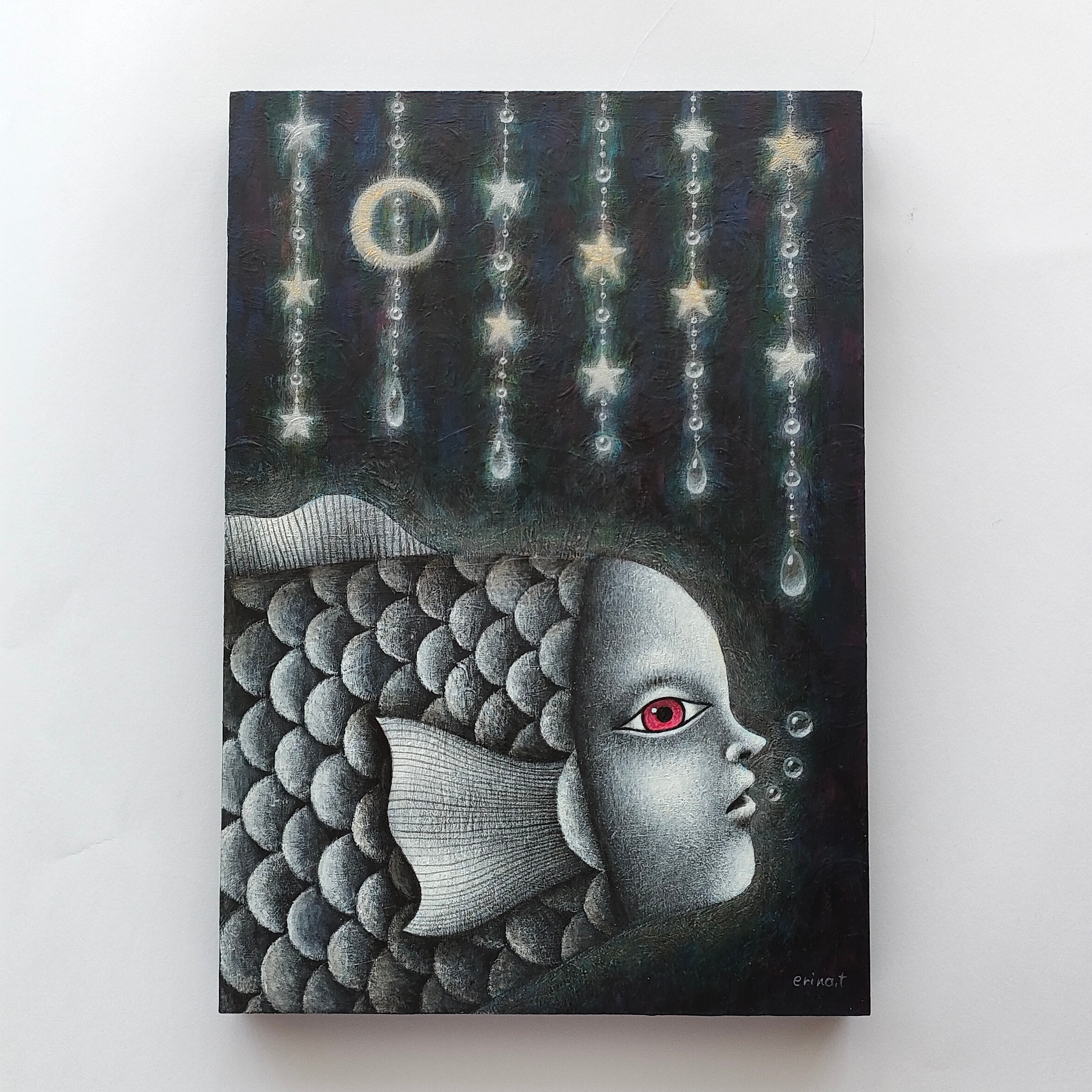 美しい星かざりの中を不思議な魚が泳いでいる場面を幻想的に描きました。