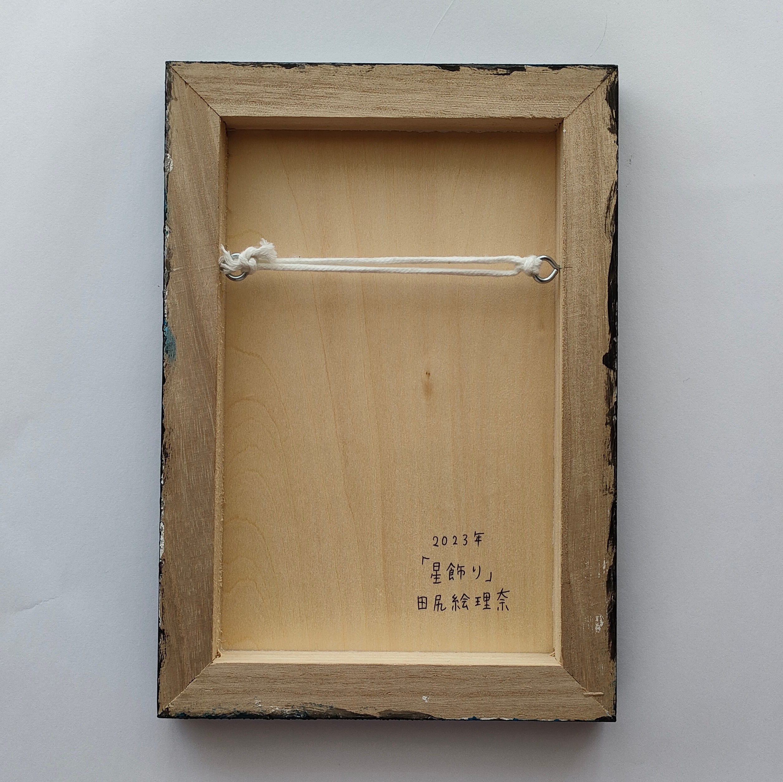 キャンバスや木製パネルの作品は裏面に吊り紐をお付けしております。