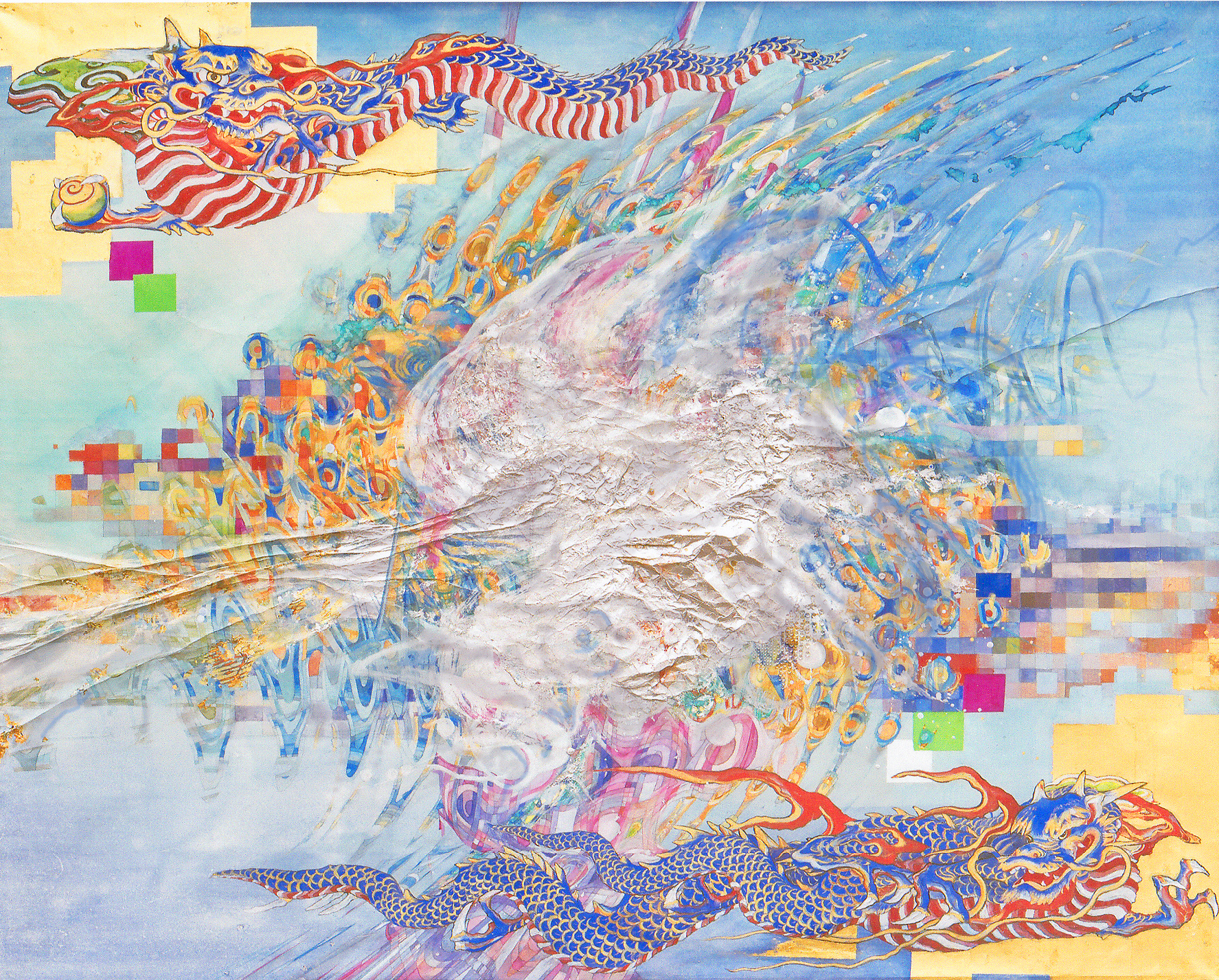 2025年 女流画家協会展入選、東京都美術館展示作品。2年後に予定している能のストーリーをテーマにした個展(代々木能舞台)で展示する予定です。日本の神道信仰の源泉の一つである春日神社の龍神。生きとし生けるものを祝福するエネルギーに満ちた龍神を古典にとらわれない技法で表現してみました。