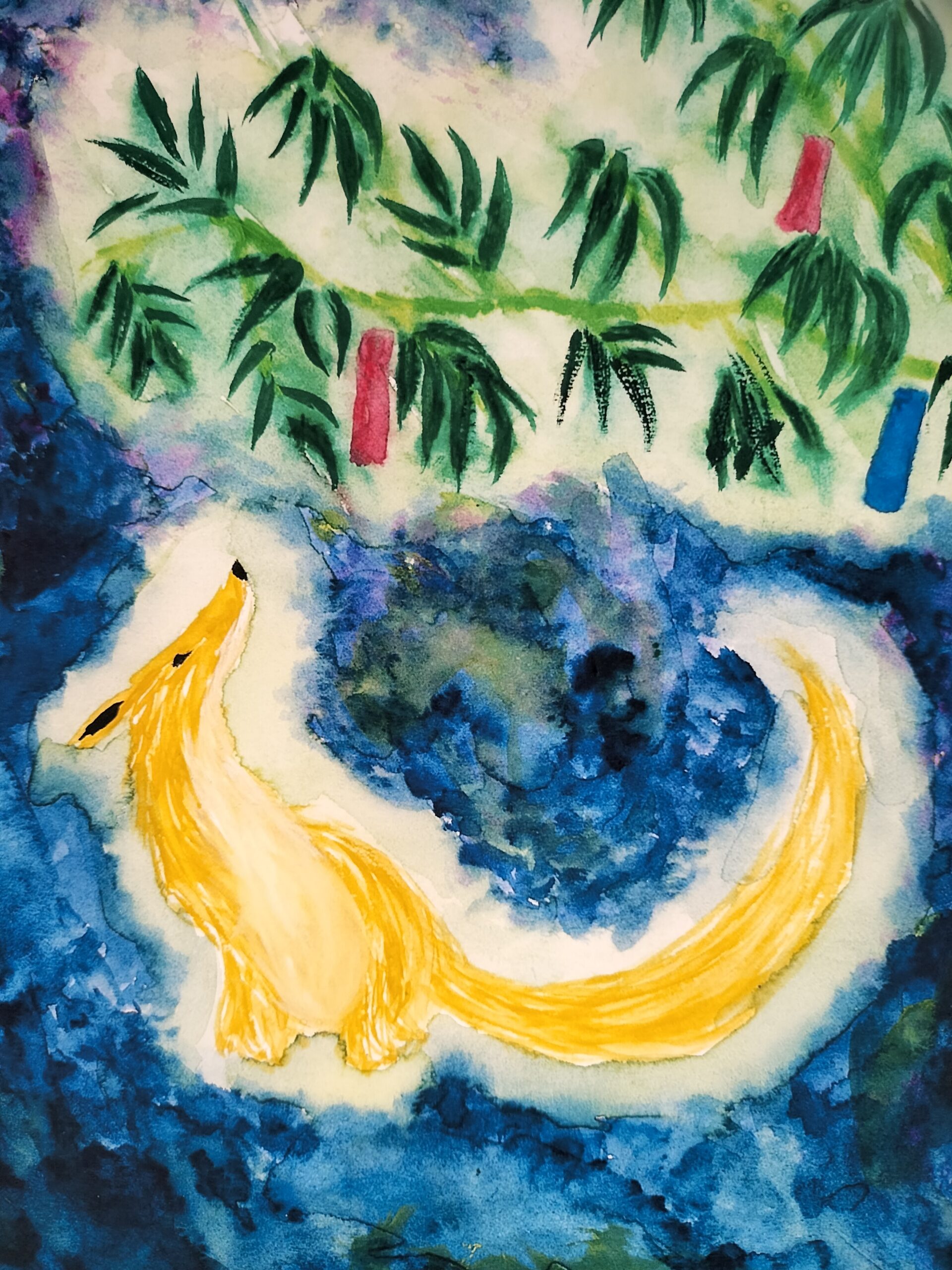 ◆A painting of a fox gazing at the bamboo for Tanabata◆