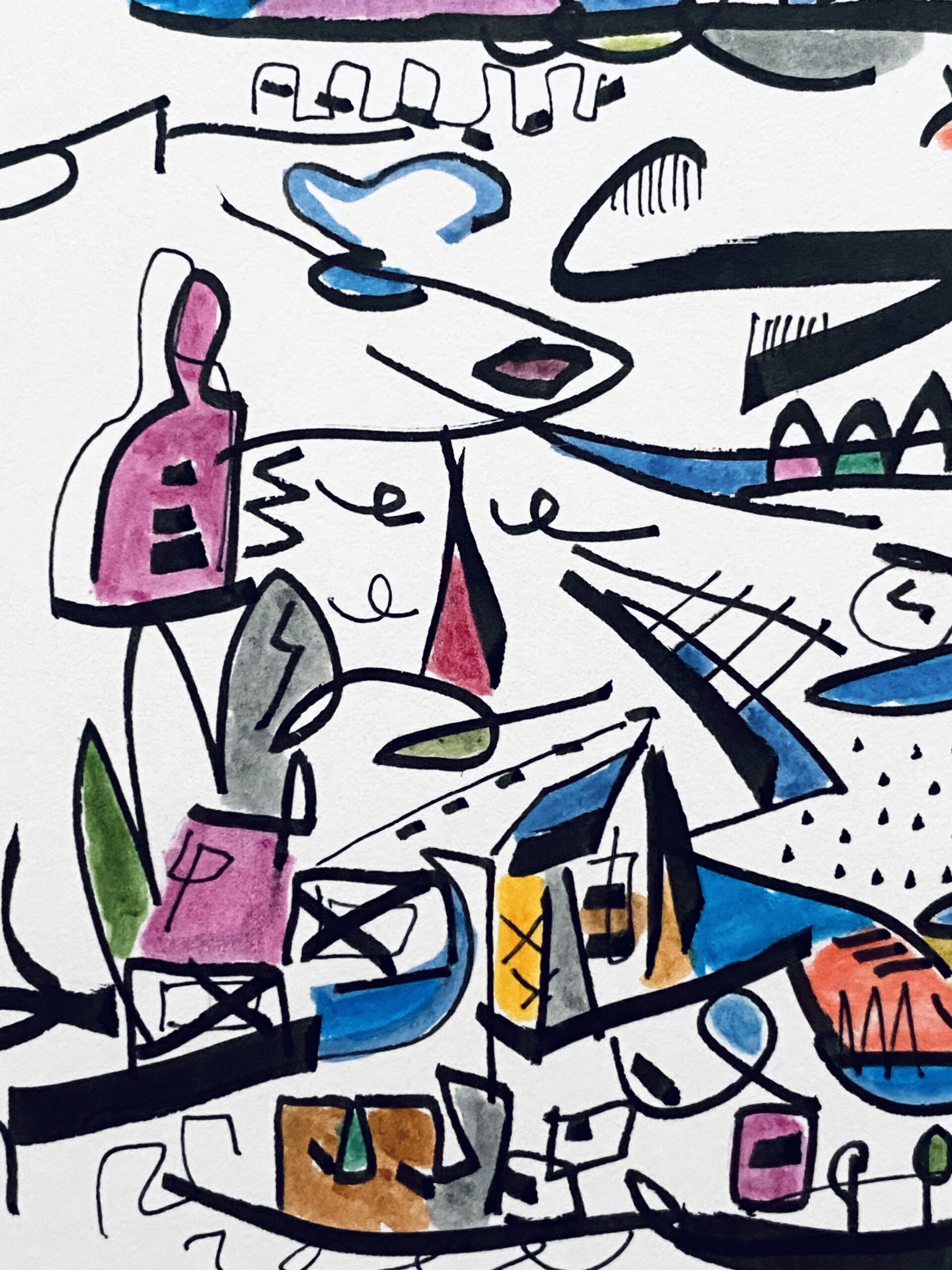 シリーズ作品を除き、タイトルは創作のはじめにあったものではなく、描き終えた時点で観る側となった私が名付けた「仮のタイトル」です。参考にするのも、答え合わせのように楽しむのも、あるいはまったく無視するのも自由です。抽象表現の色や形に意味を見出す手がかりは、あなたの記憶や経験のなかにしかありません。最終的な作品は観るかたの中で完成すべきものだと考えています。思い思いに想像の翼を羽ばたかせ、作品に新しい解釈を加えていただくことを望みます。