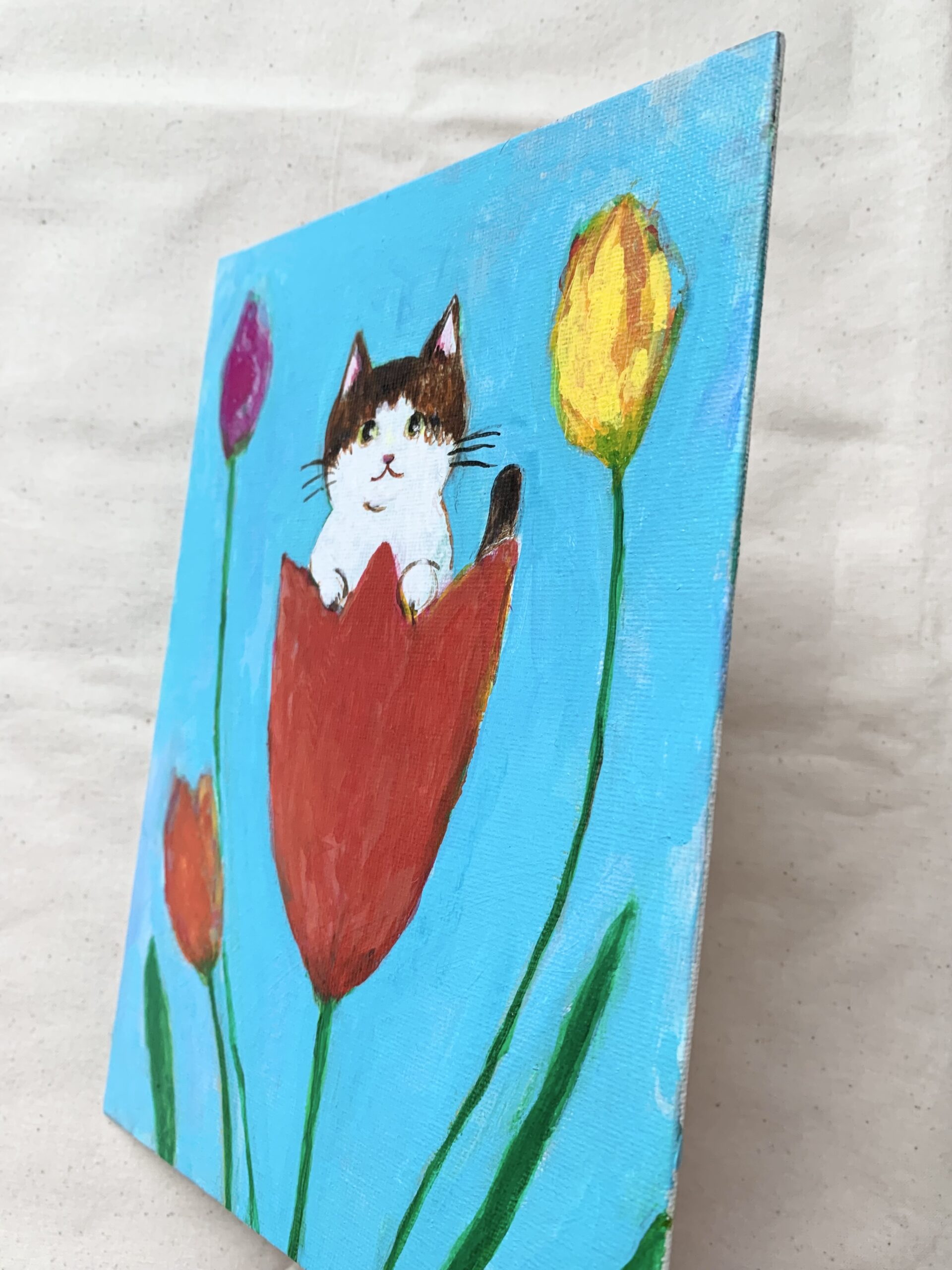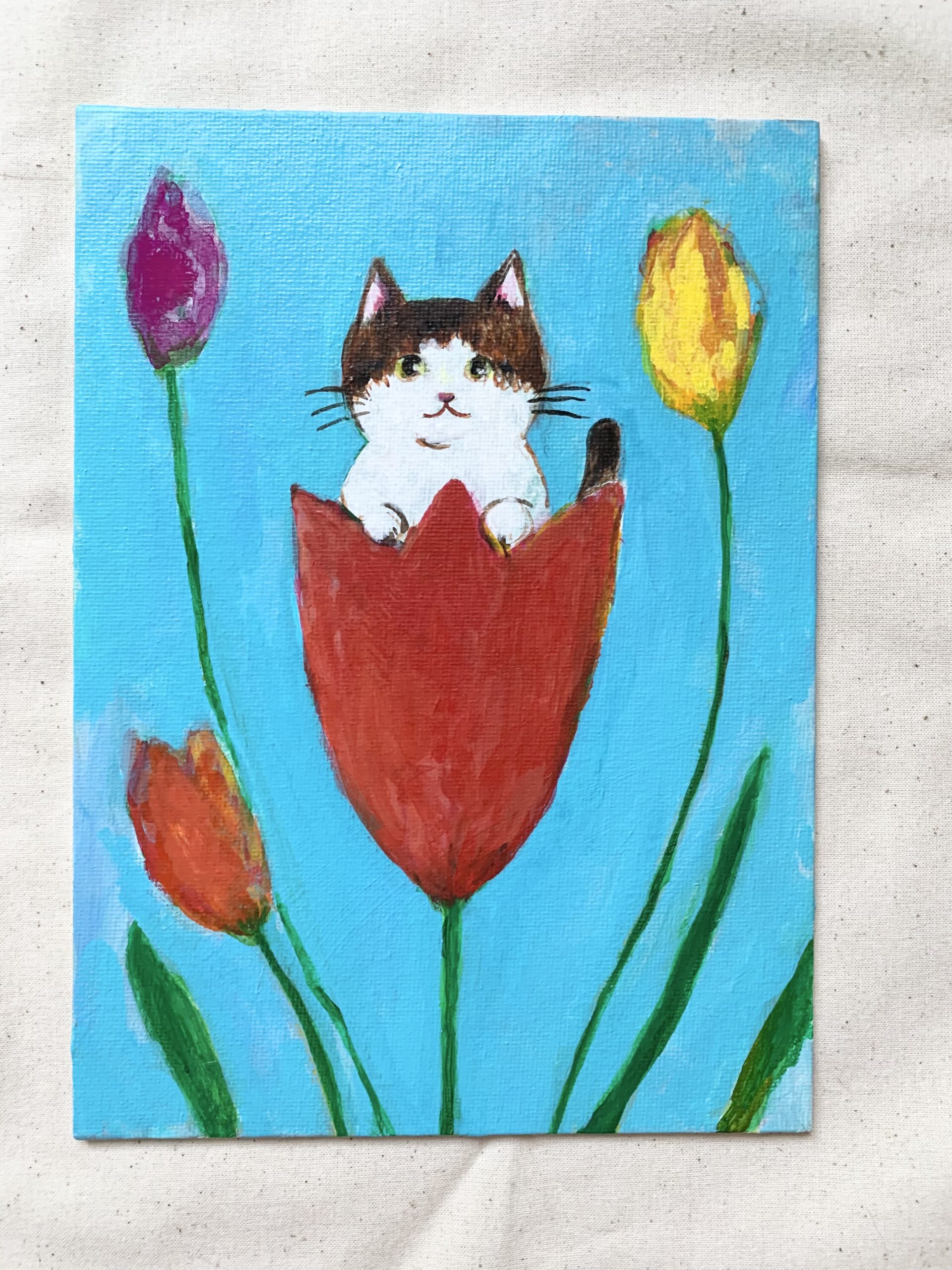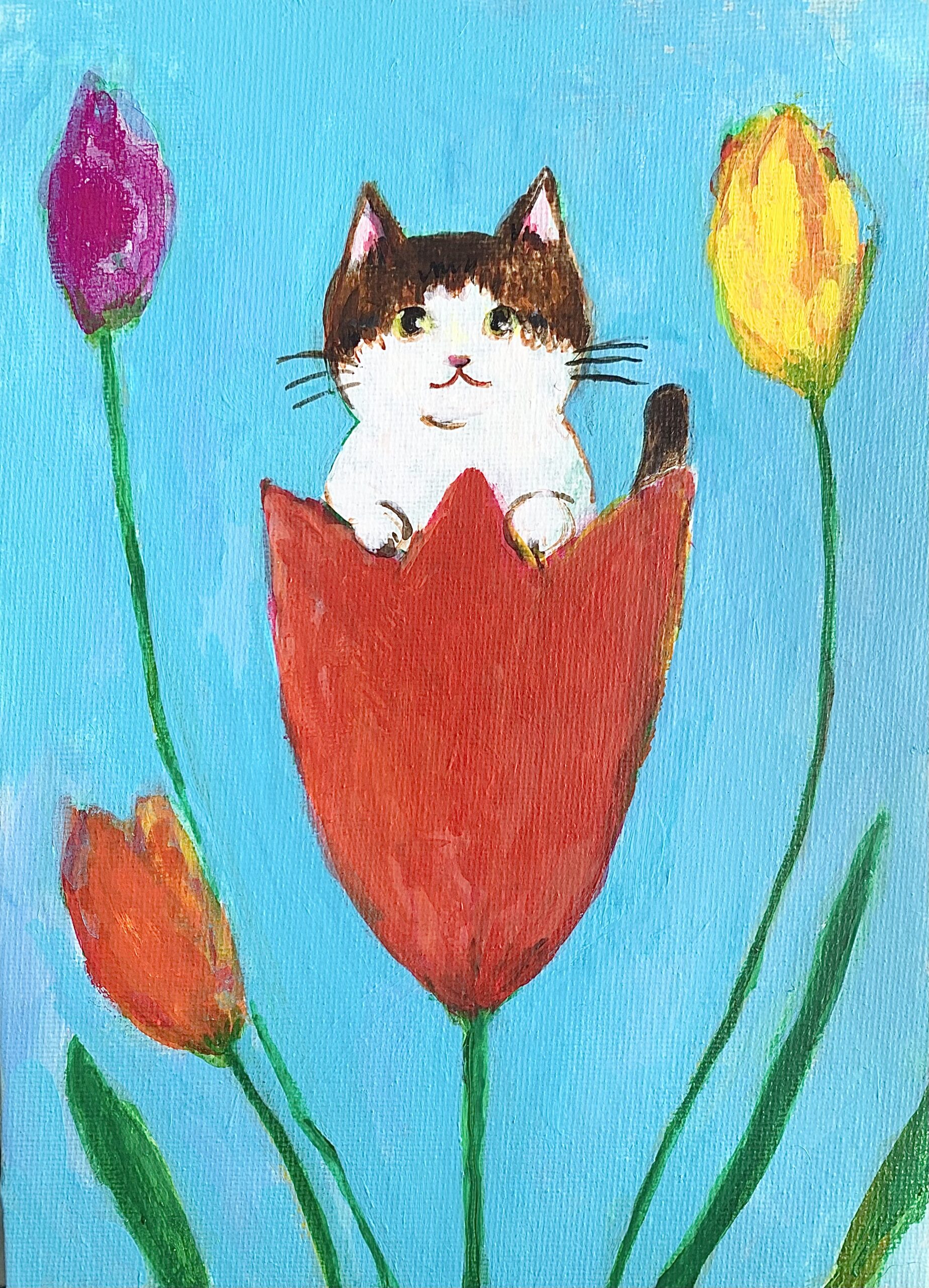 親指姫のような、チューリップの精霊のようなニャンコです。