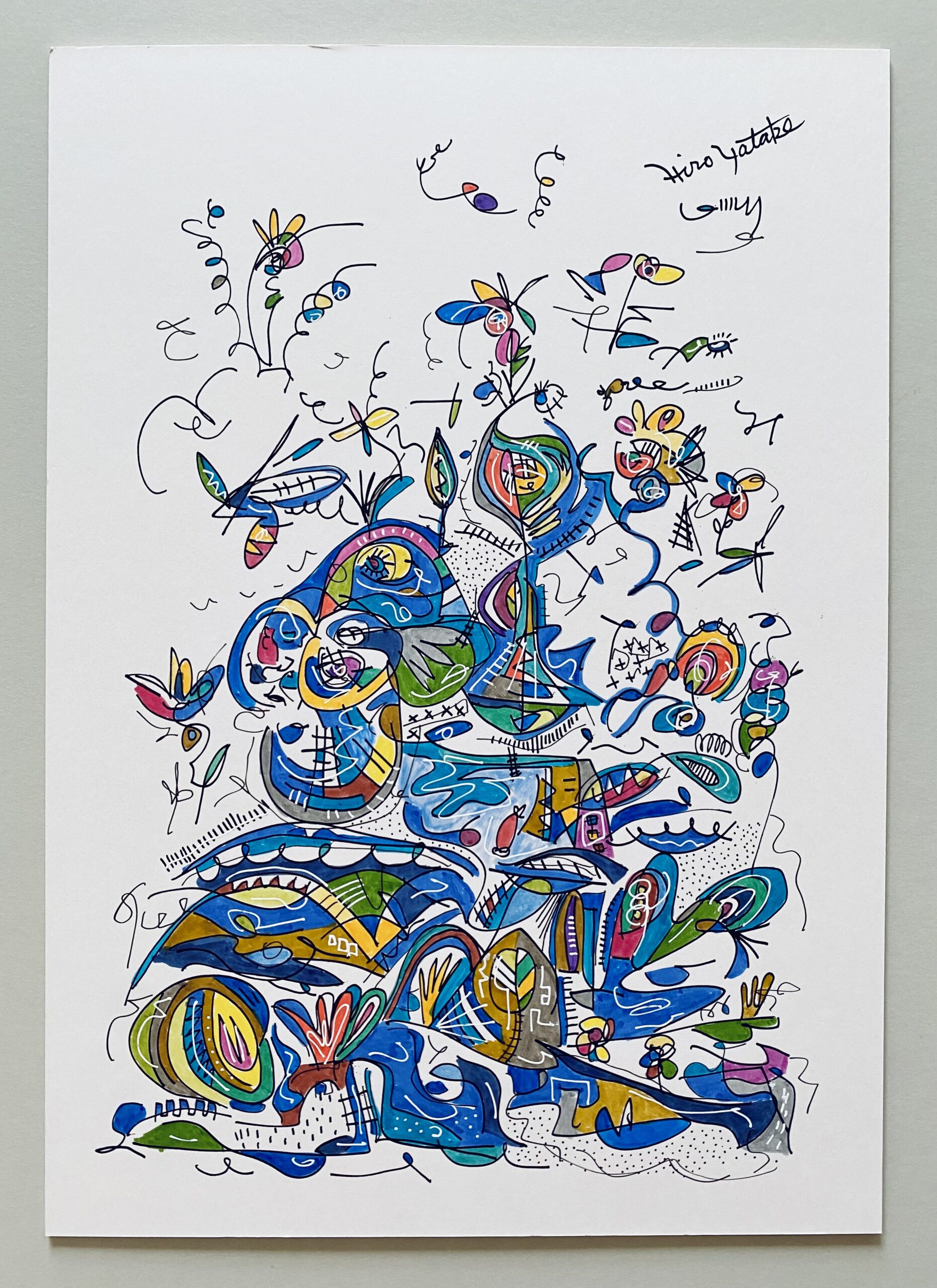 2008年 浮かんだイメージを付箋にボールペンでスケッチ。2012年になりそれをまとめたものを知人に見せたところサイズや画材をかえて絵画として発表することを勧められ、2013年、公募展にA4サイズのカードボードにペン・パステルで描いた作品を出品。その後アクリル絵具での創作をスタート。