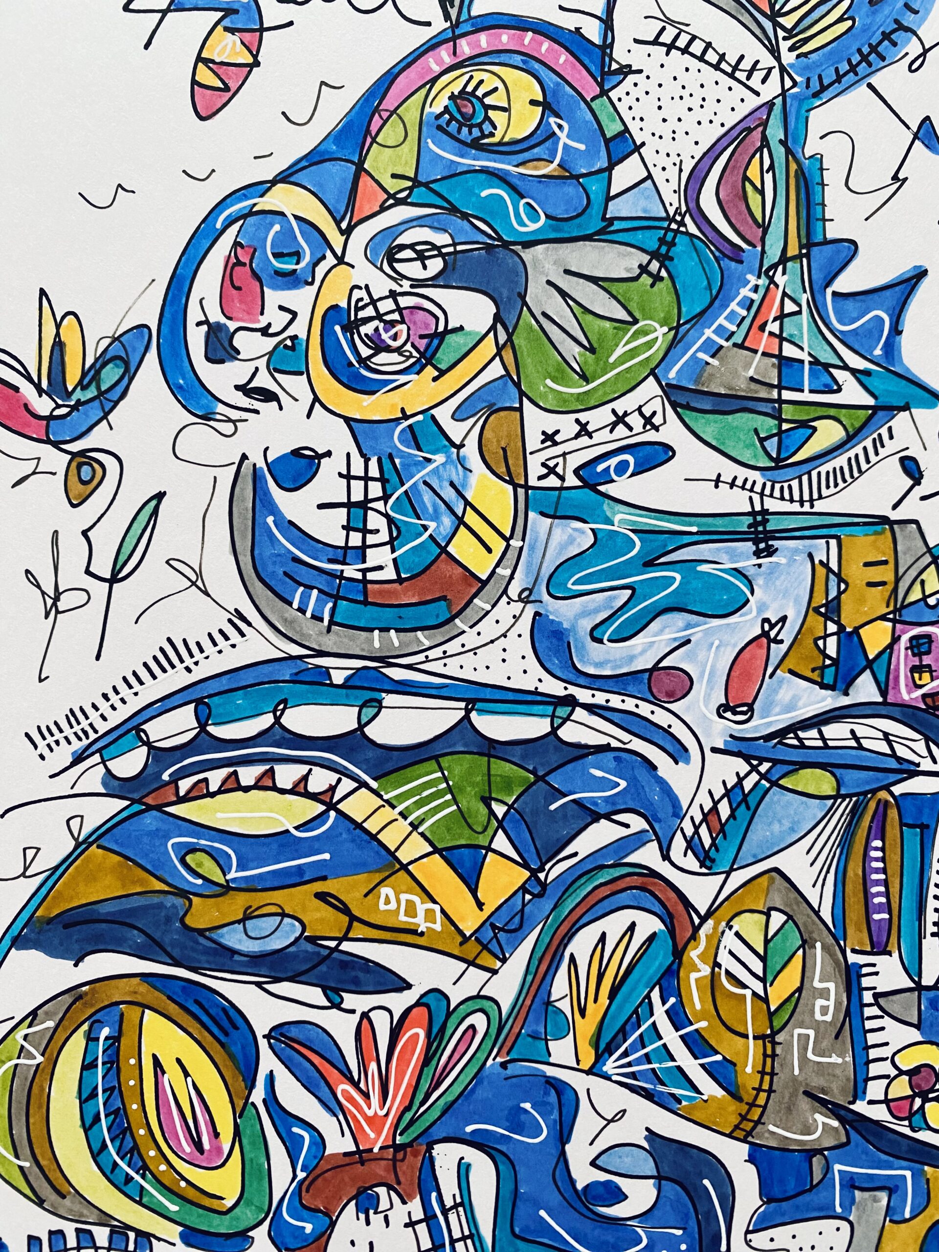 シリーズ作品を除き、タイトルは創作のはじめにあったものではなく、描き終えた時点で観る側となった私が名付けた「仮のタイトル」です。参考にするのも、答え合わせのように楽しむのも、あるいはまったく無視するのも自由です。抽象表現の色や形に意味を見出す手がかりは、あなたの記憶や経験のなかにしかありません。最終的な作品は観るかたの中で完成すべきものだと考えています。思い思いに想像の翼を羽ばたかせ、作品に新しい解釈を加えていただくことを望みます。