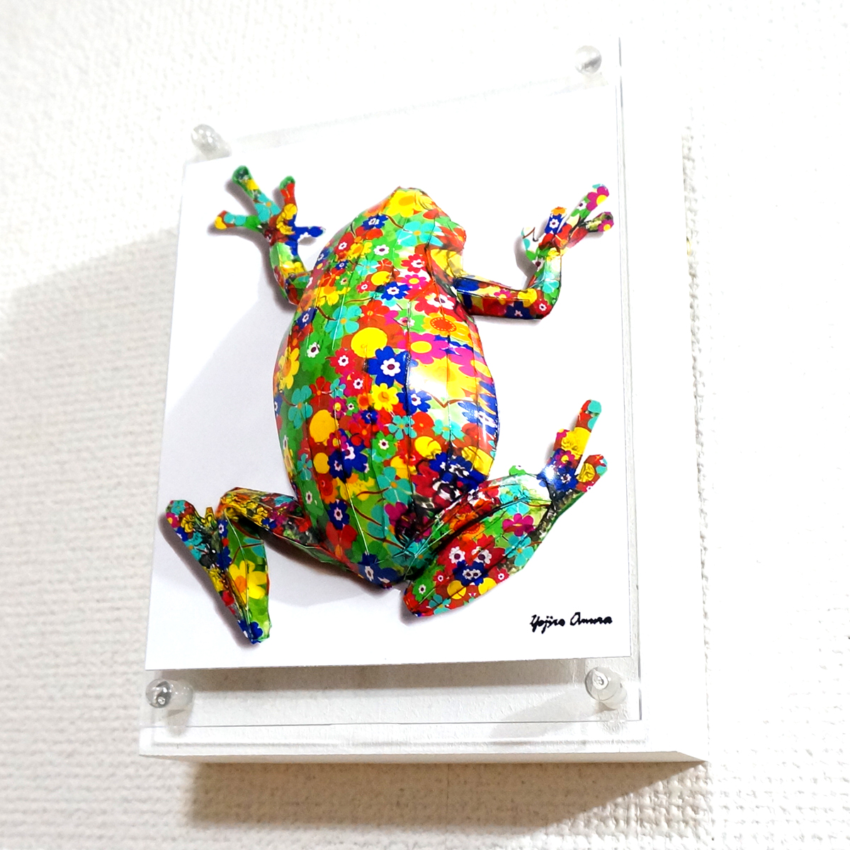 丸々と太ったカエルのボディーにふんだんに彩られた花柄が美しい、ポップなイメージの作品に仕上がっております。