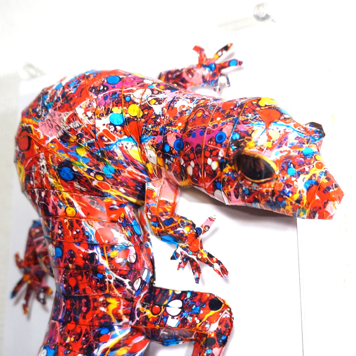 トカゲのコラージュ画像を元にペーパークラフト技術を用いて立体化した作品です。