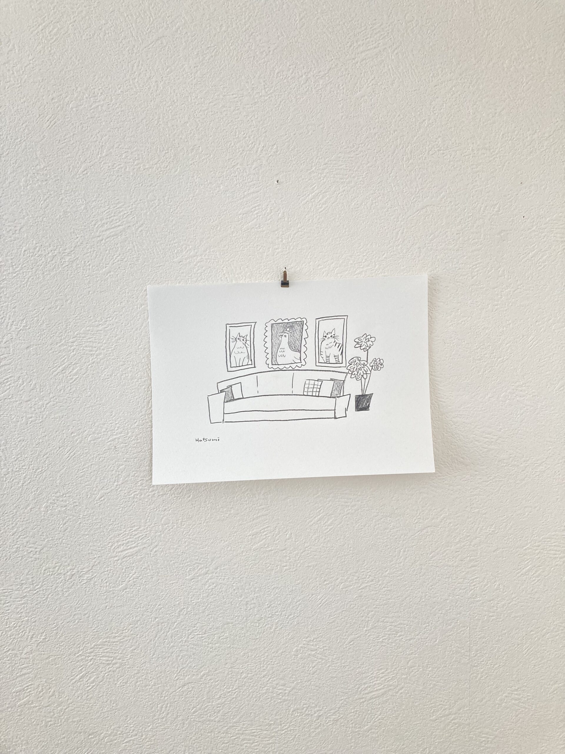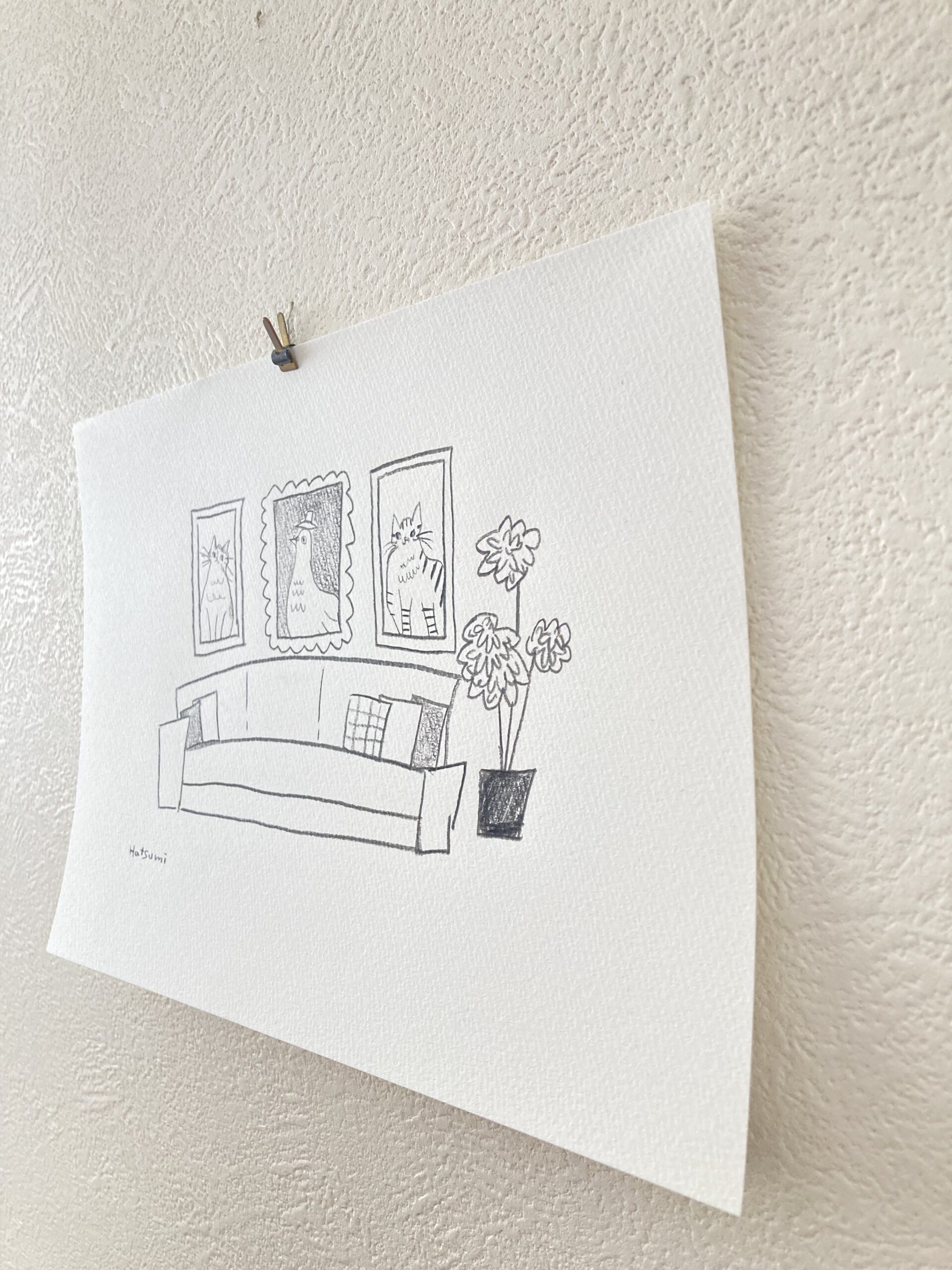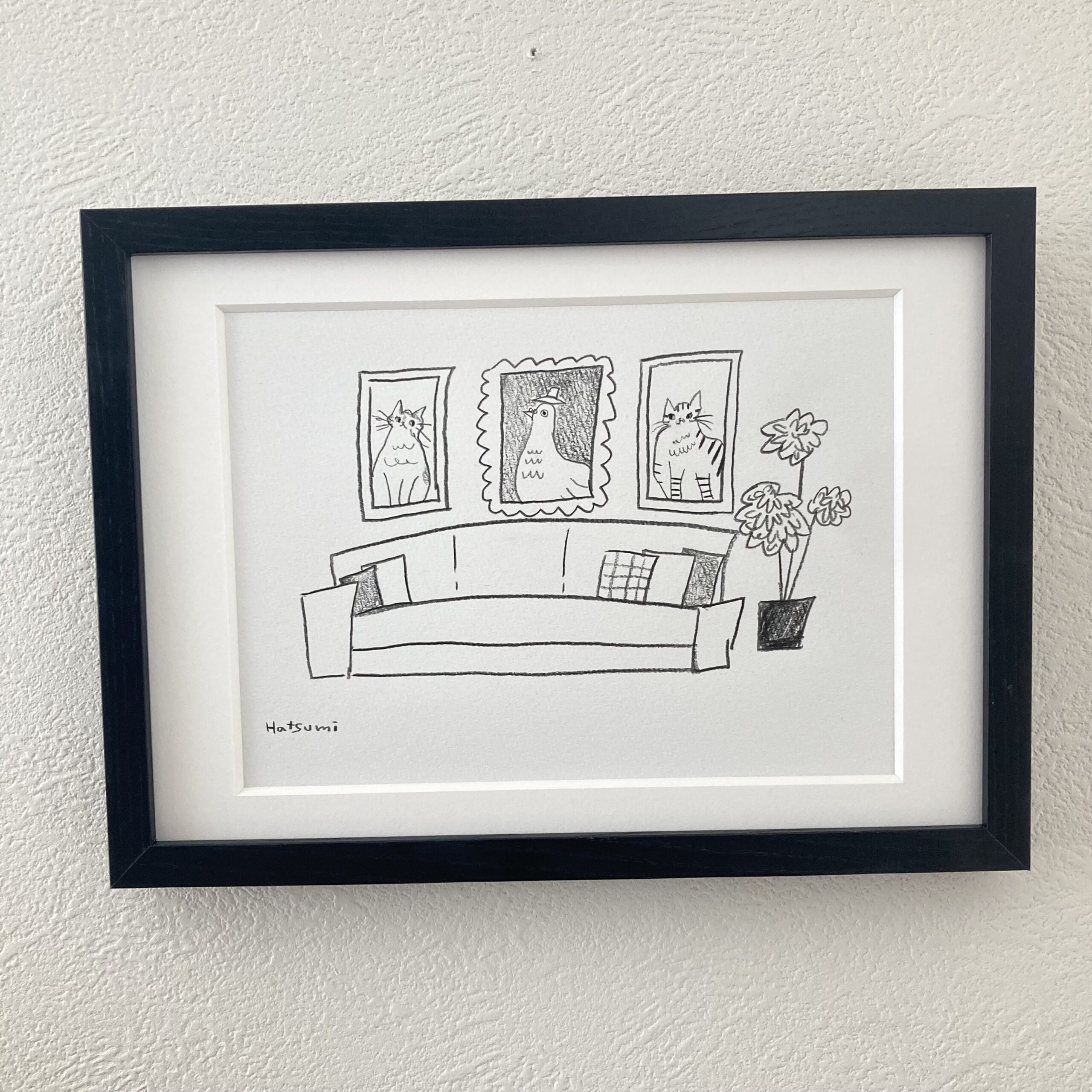 シンプルで飾りやすいドローイングの作品ですので気軽に飾っていただけると思います。