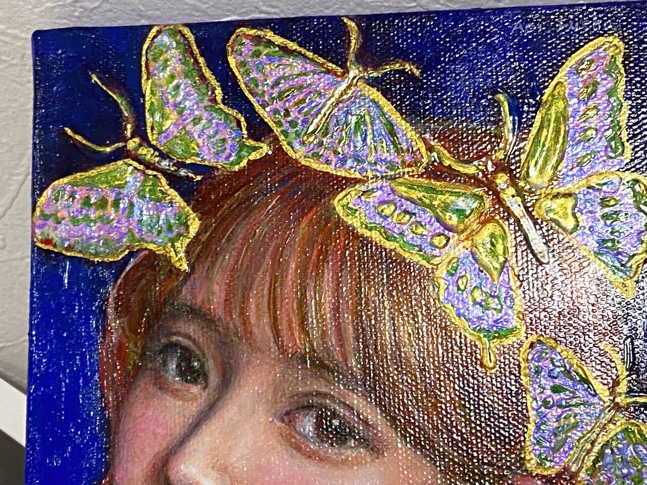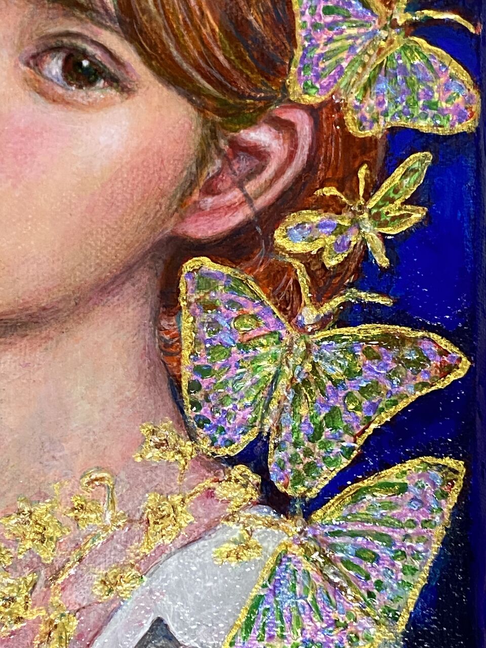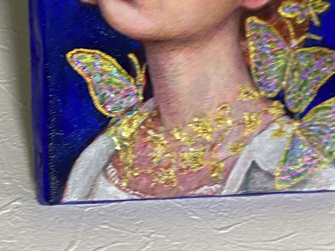 蝶とネックレスは絵の具を盛り上げたマチエールで