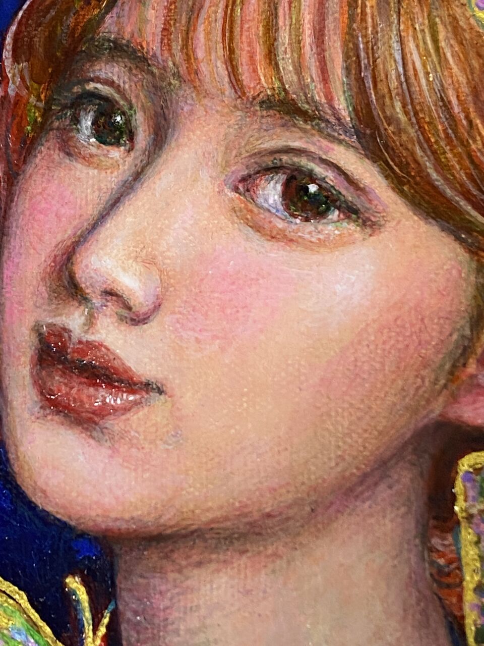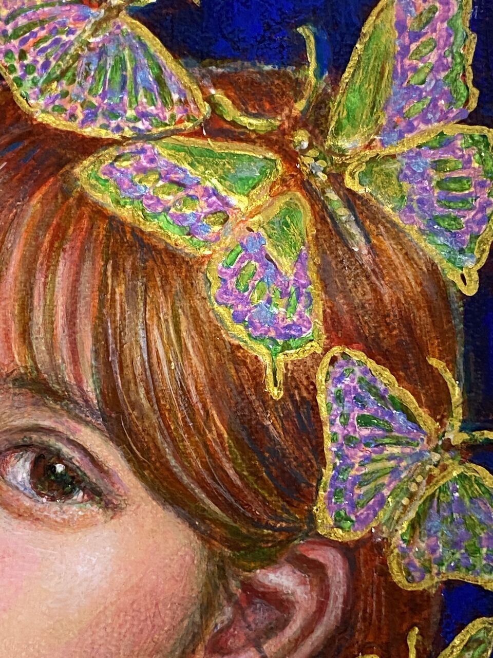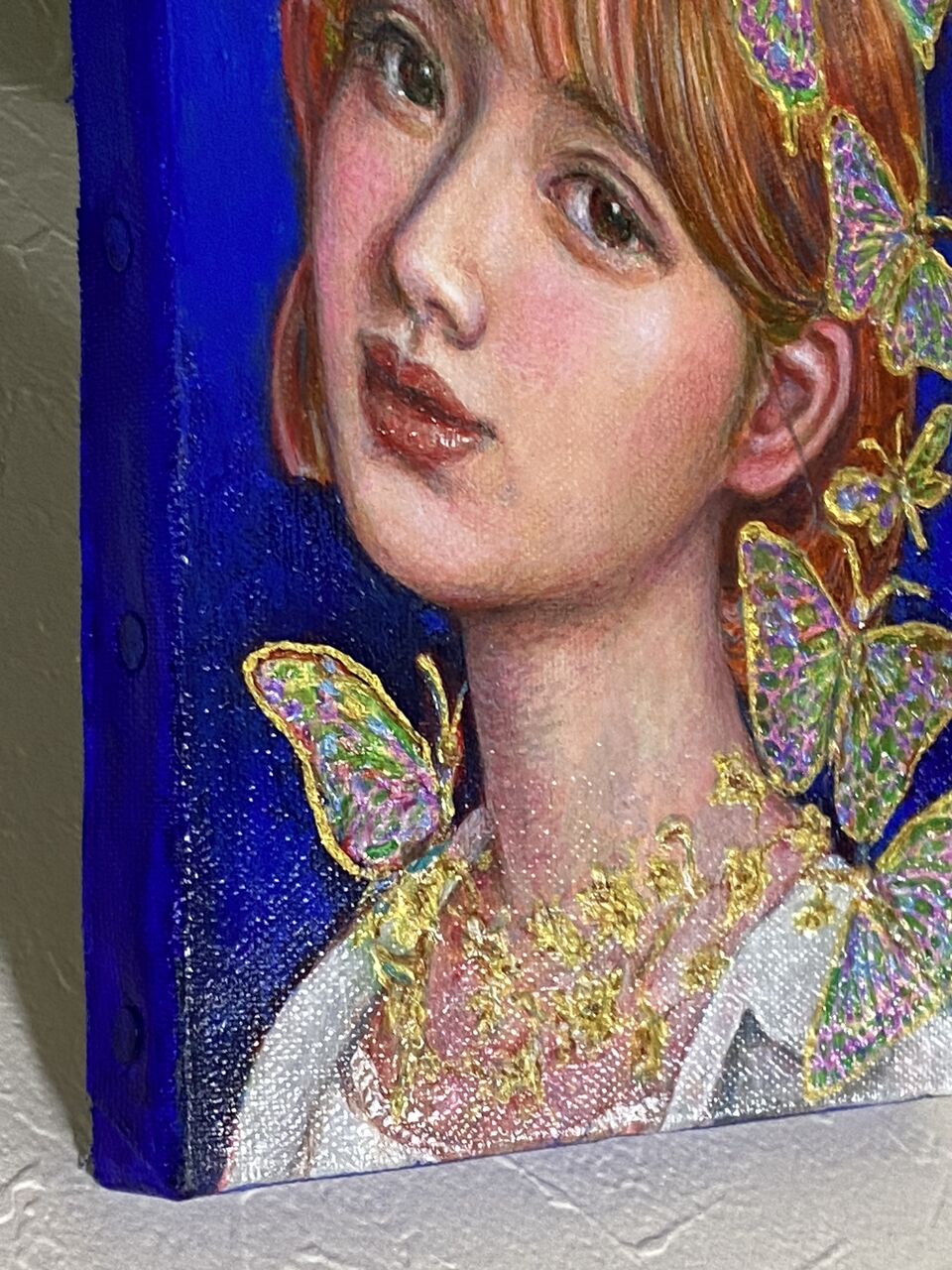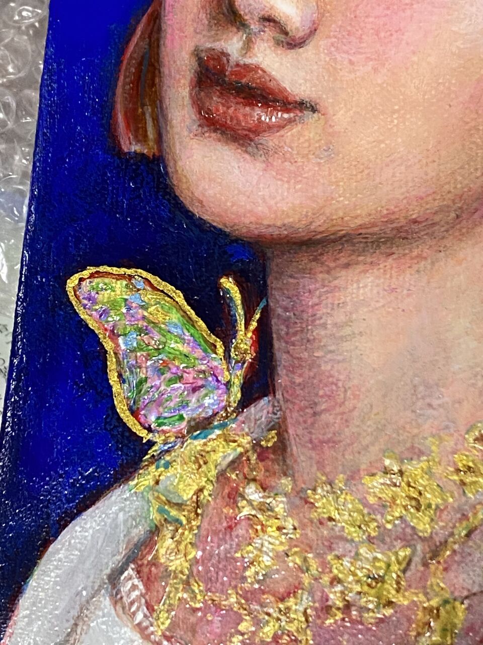蝶とネックレスは絵の具を盛り上げたマチエールで