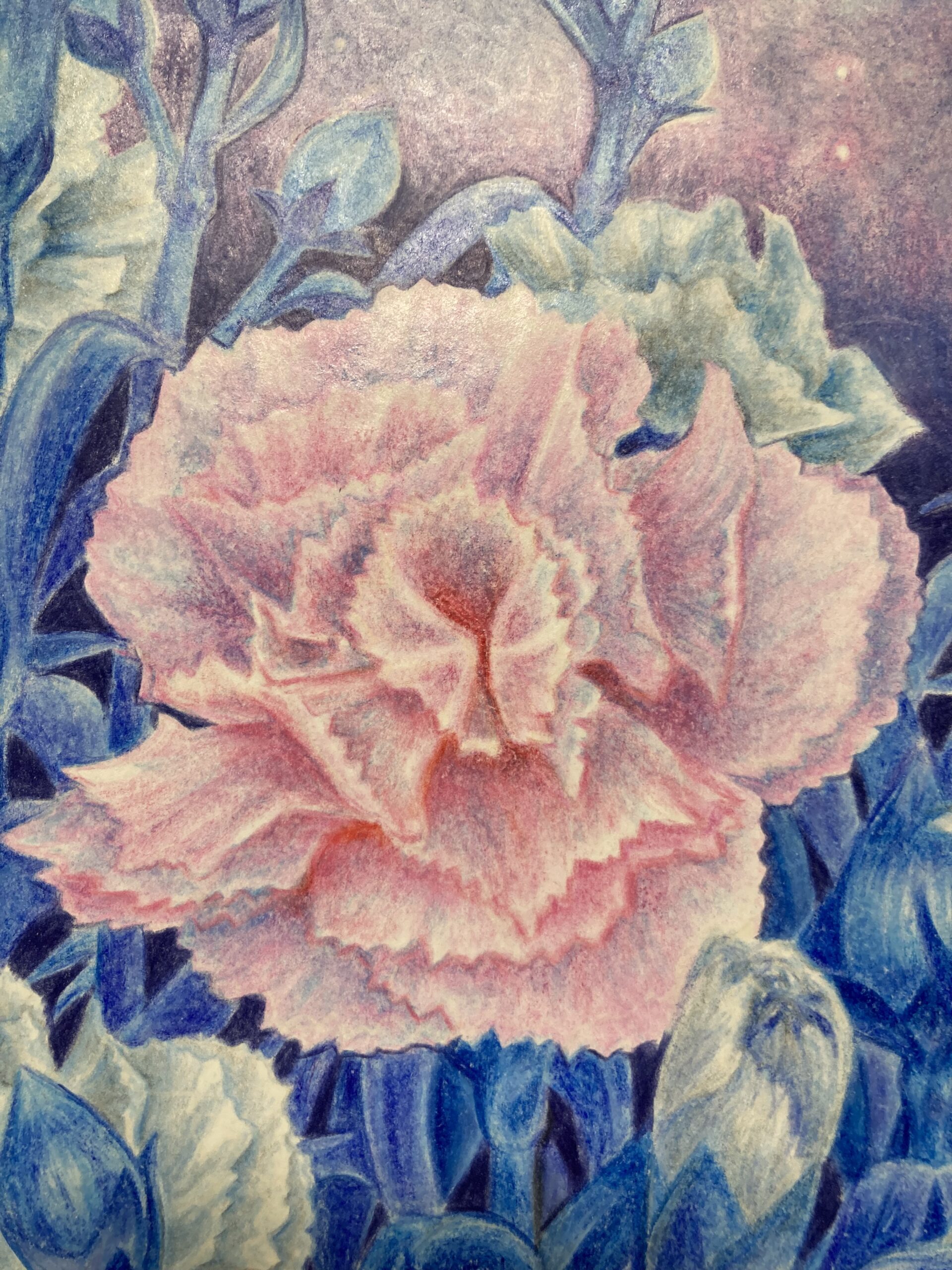悲しい色の中に、一つだけ希望に色づいた花。今は夜が明けるのを、朝の光を待っている。