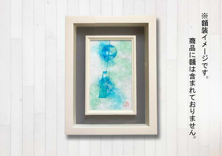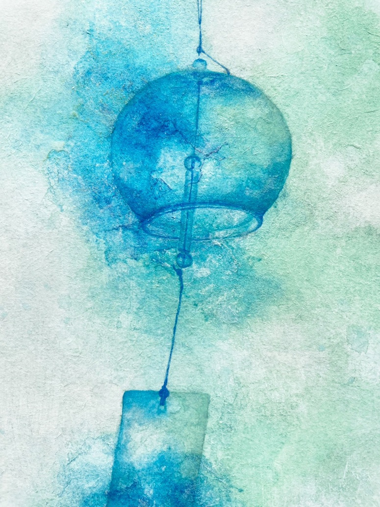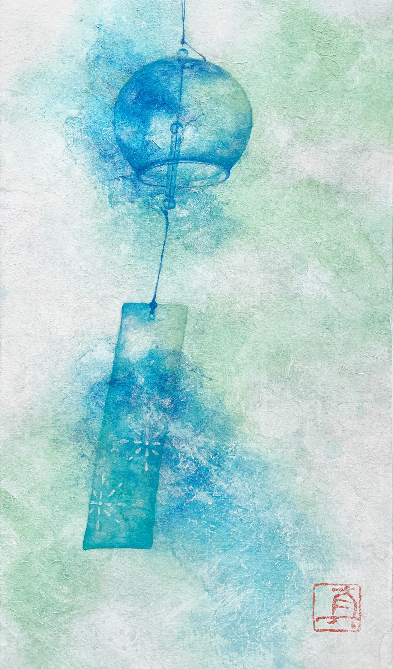 風が強くて風鈴が飾りにくくなった近頃の夏。そんな時は絵の風鈴で涼を感じてください。