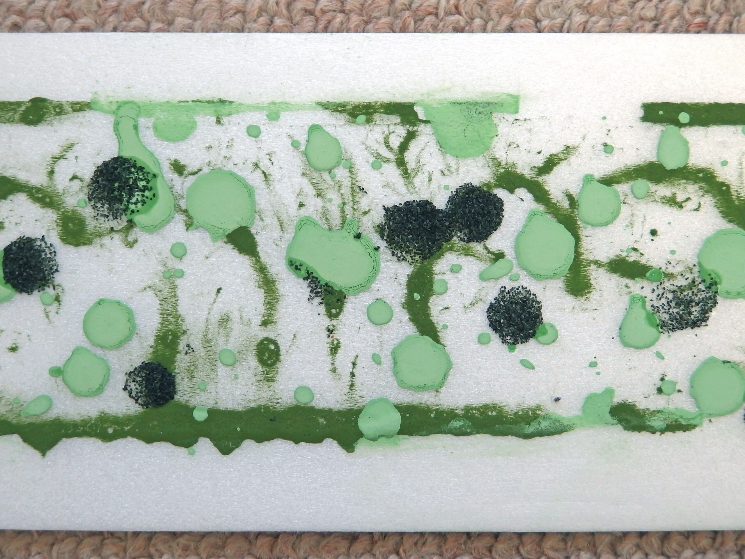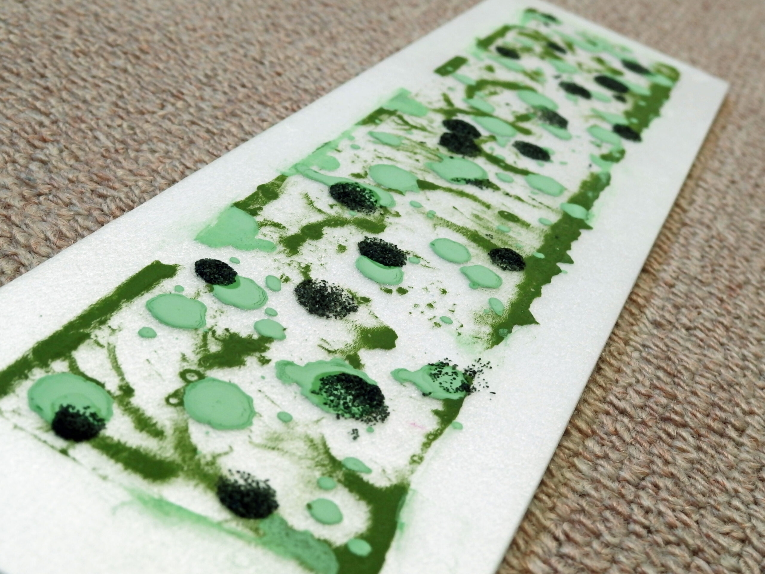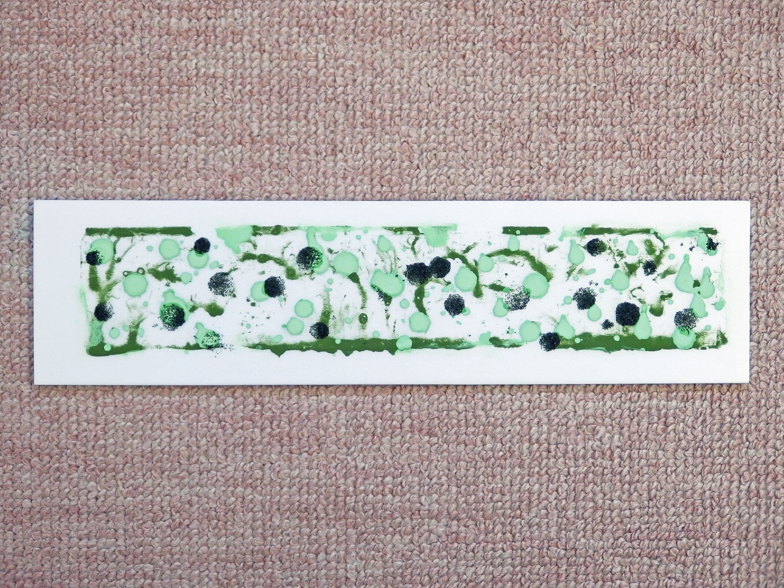 スチレンペーパーという光沢のある真っ白な素材に、岩絵の具自体の美しさが際立ちます。この組み合わせを発見し、気に入って使い続けています。
