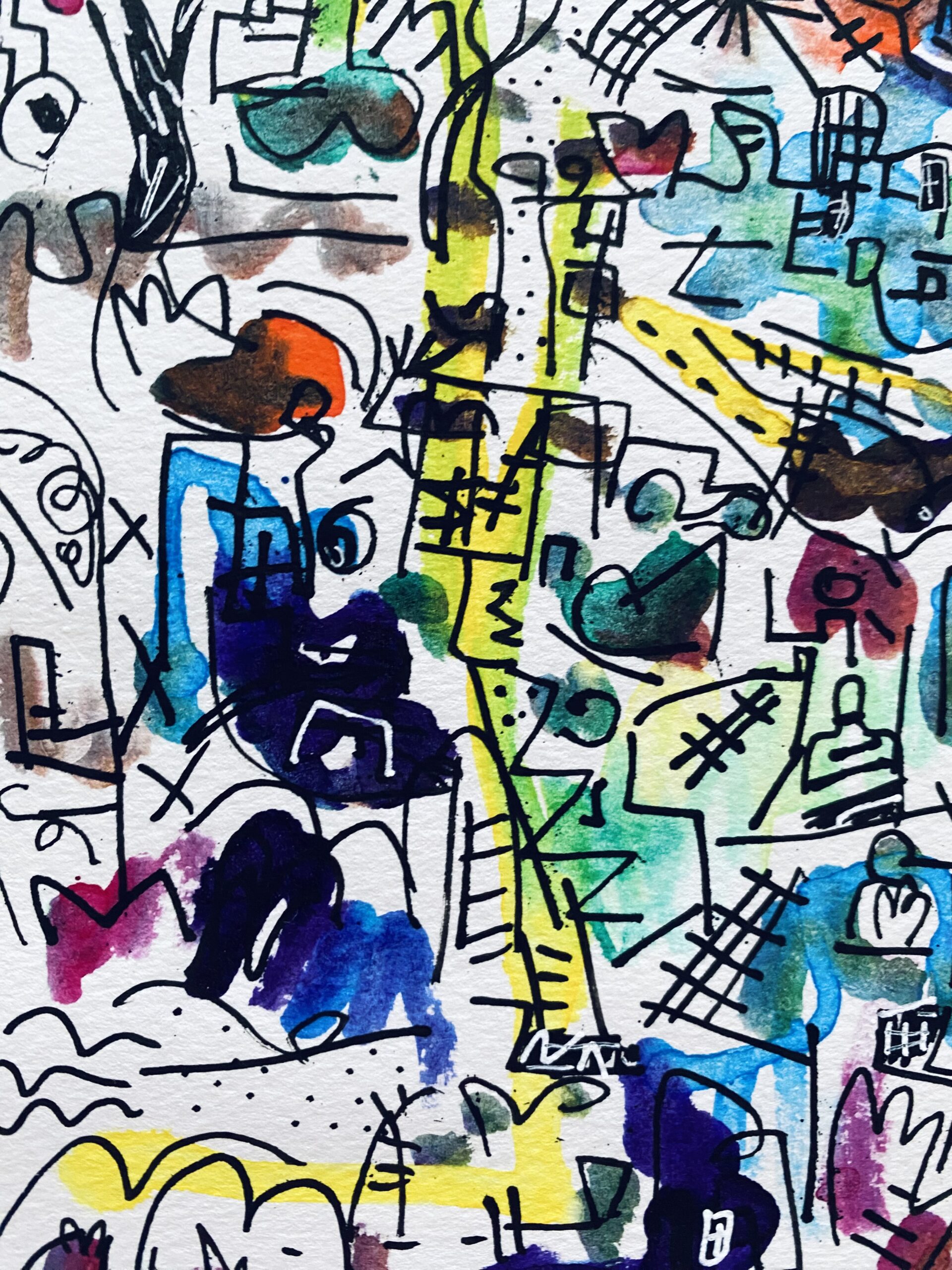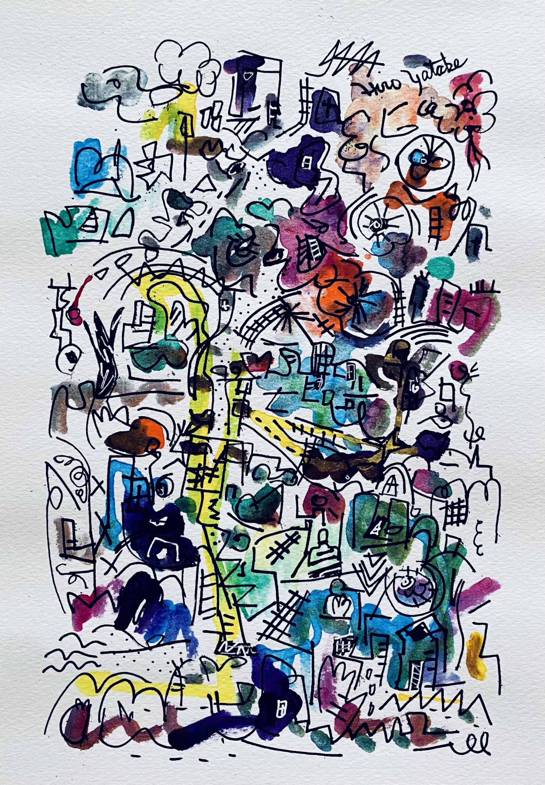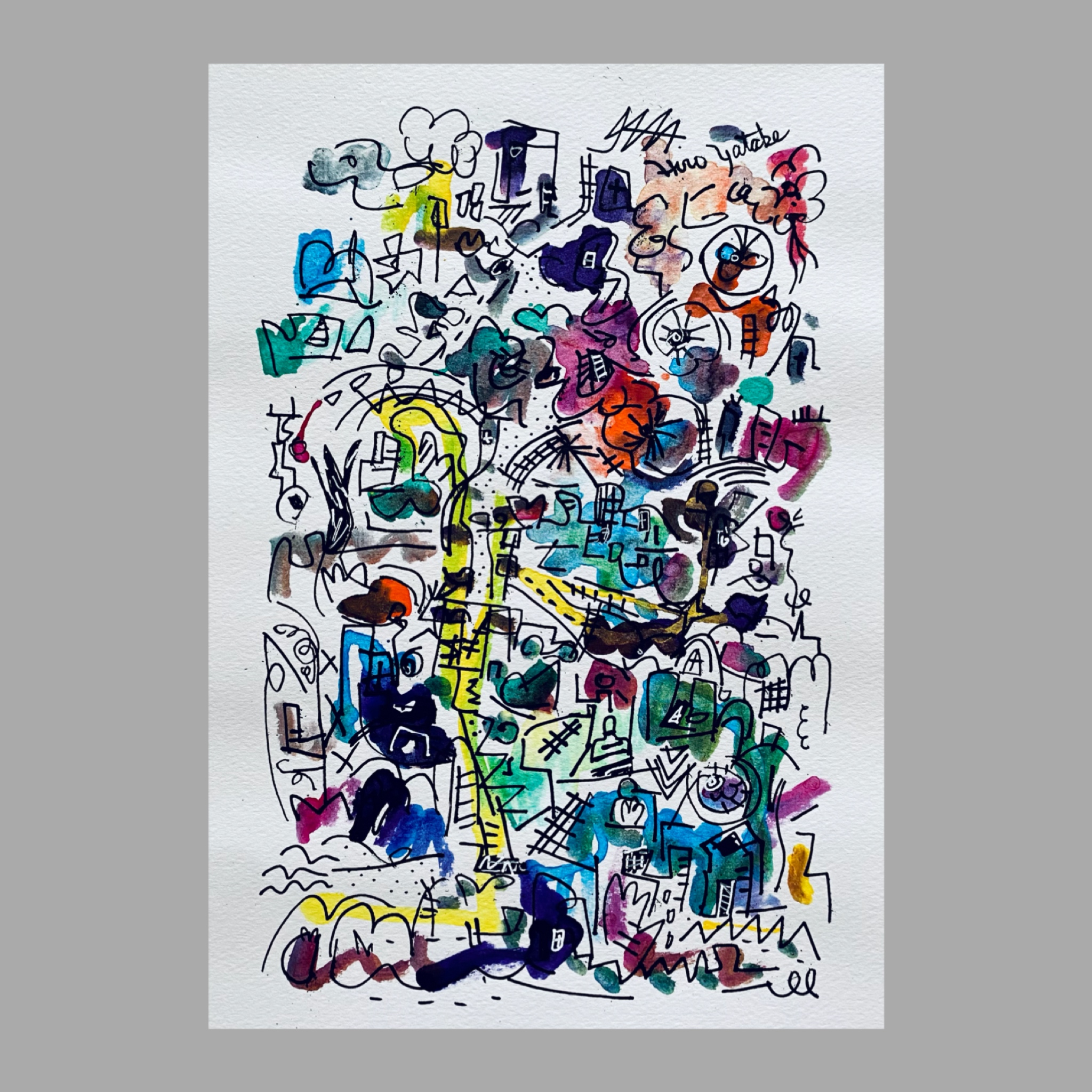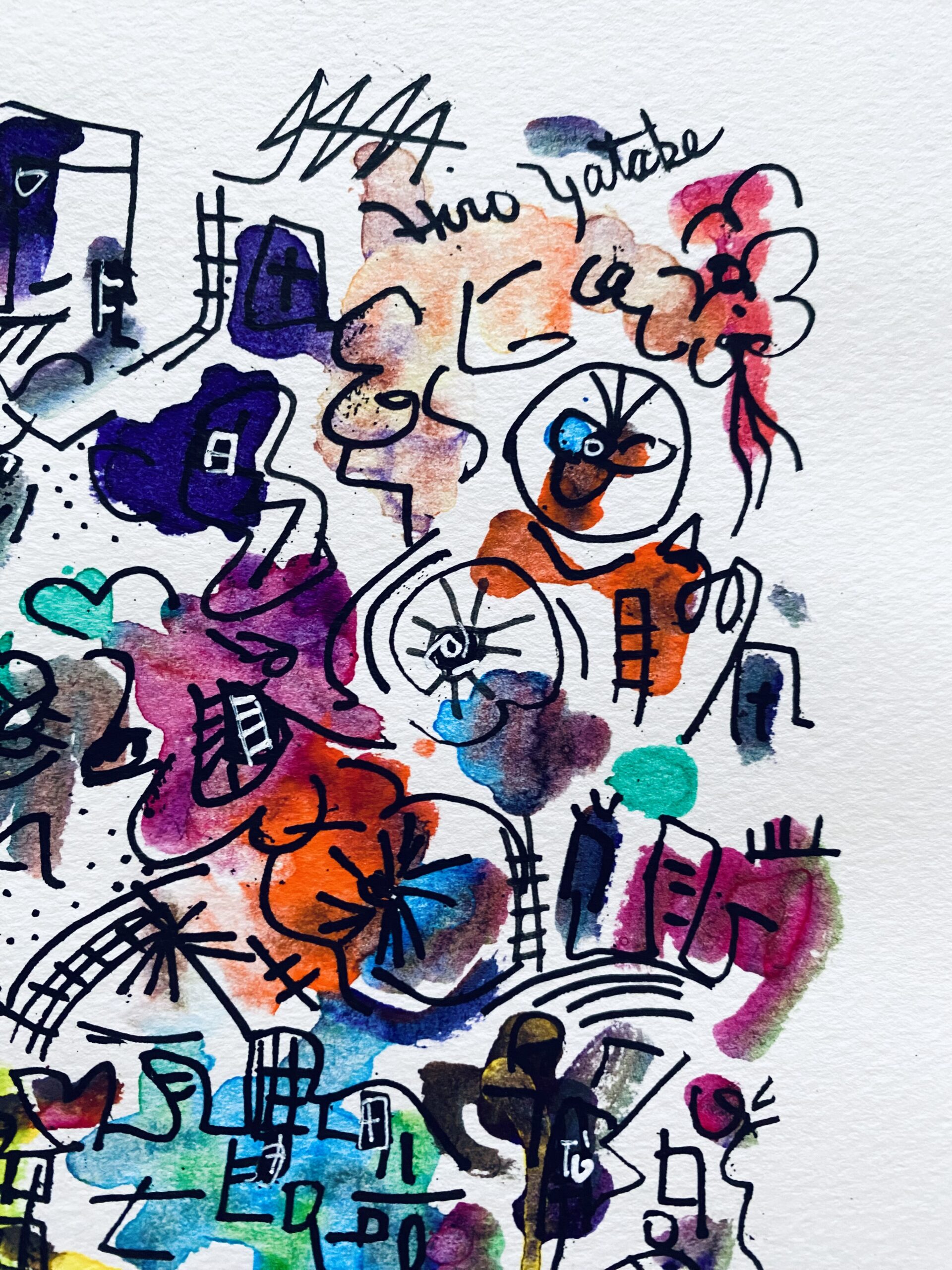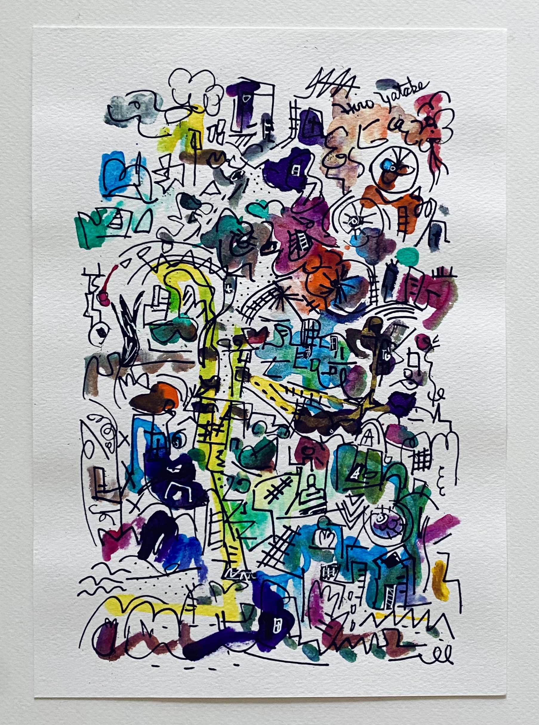 2008年 浮かんだイメージを付箋にボールペンでスケッチ。2012年になりそれをまとめたものを知人に見せたところサイズや画材をかえて絵画として発表することを勧められ、2013年、公募展にA4サイズのカードボードにペン・パステルで描いた作品を出品。その後アクリル絵具での創作をスタート。