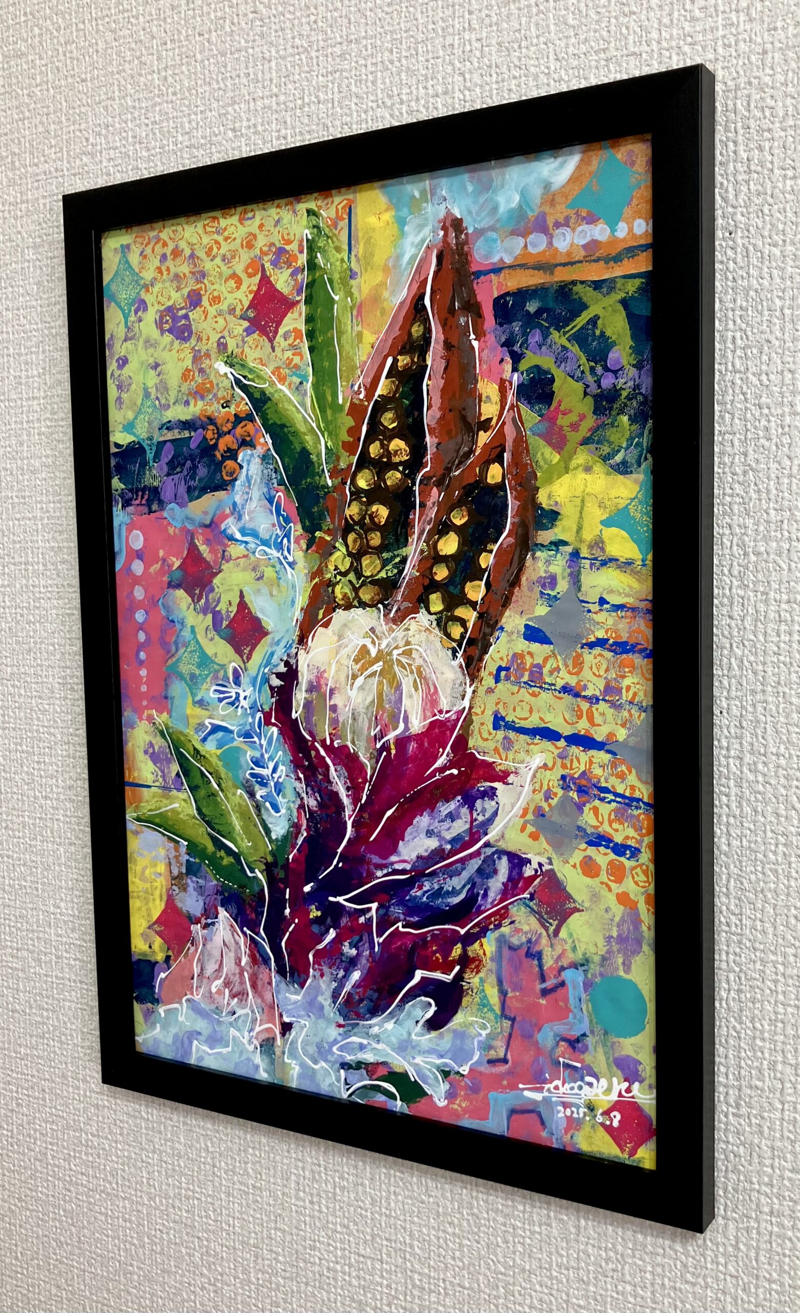 明るく弾ける色彩と筆致によるこの花が生活を鮮やかに彩る存在となれば幸いです。