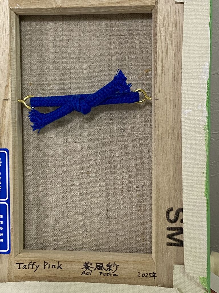 裏に紐を通してあるのでそのまますぐに架けて飾って頂けます
