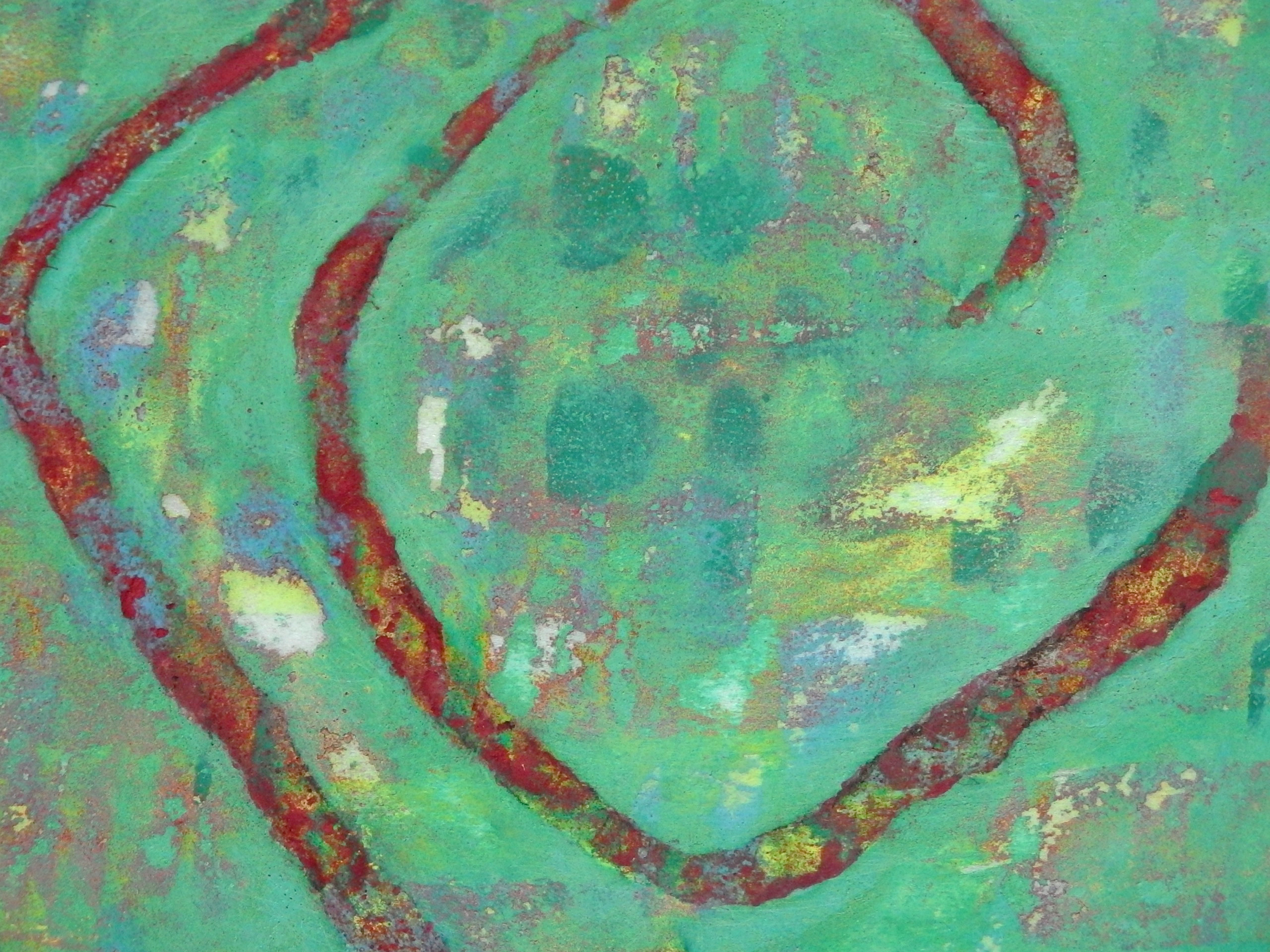 スチレンペーパーという光沢のある真っ白な素材に、岩絵の具自体の美しさが際立ちます。この組み合わせを発見し、気に入って使い続けています。