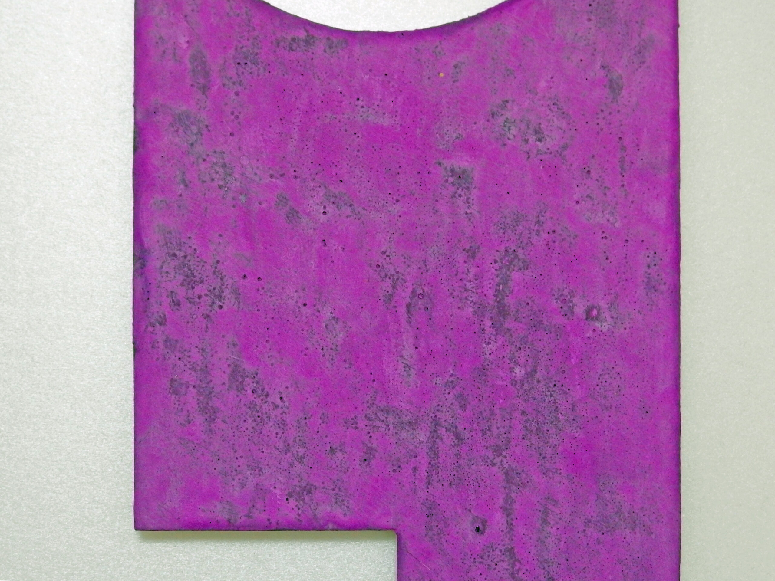 天然素材の和紙に膠を使うのが「日本画」の常識ですが、あえて人工素材を使っています。