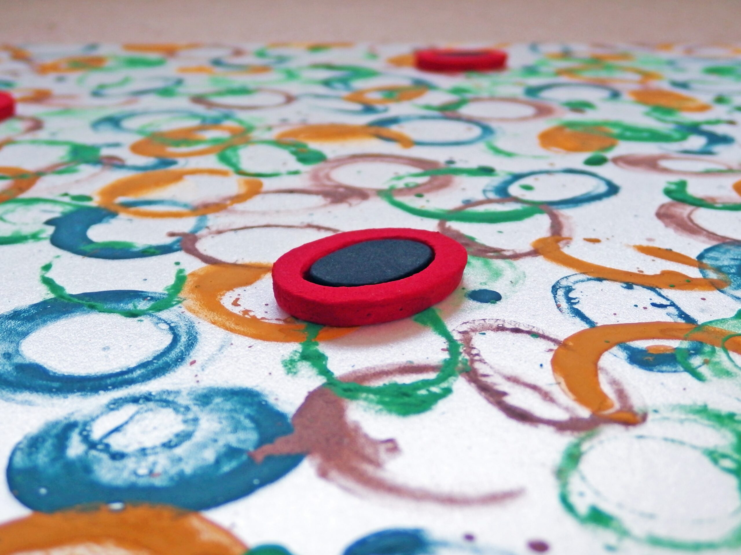 スチレンペーパーという光沢のある真っ白な素材に、岩絵の具自体の美しさが際立ちます。この組み合わせを発見し、気に入って使い続けています。