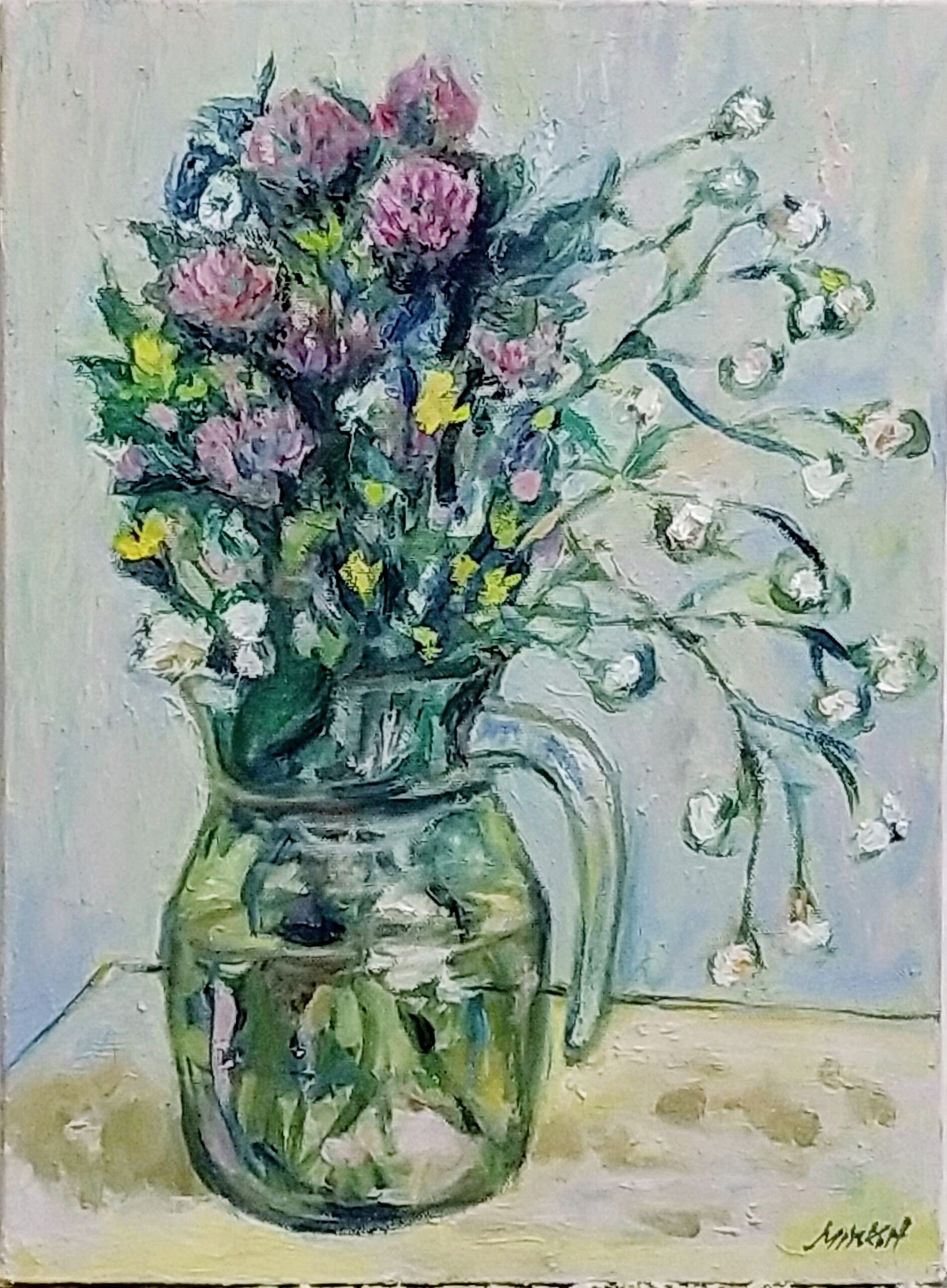 花瓶にさして描いてみました。爽やかな夏の香りがする作品となりました。
